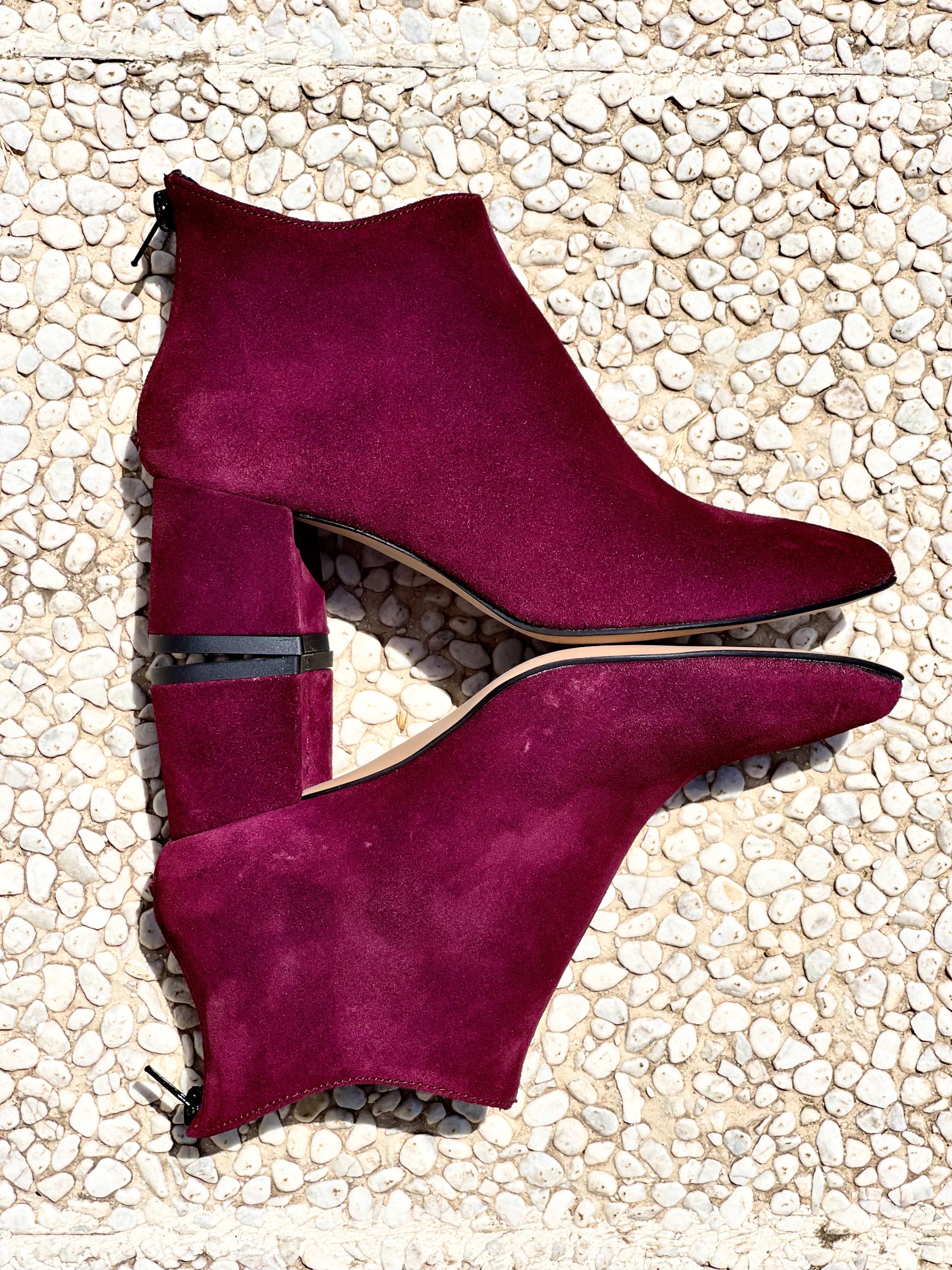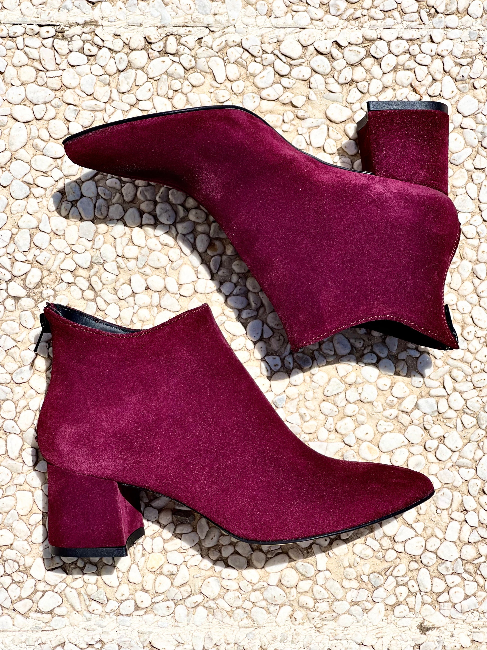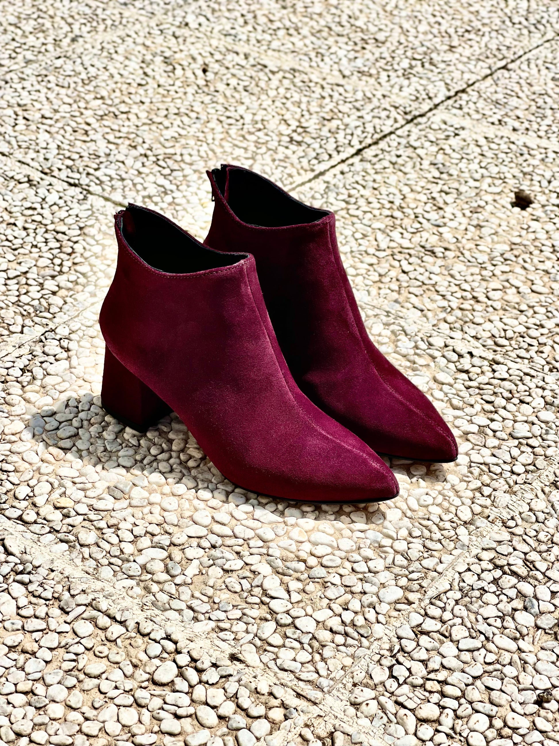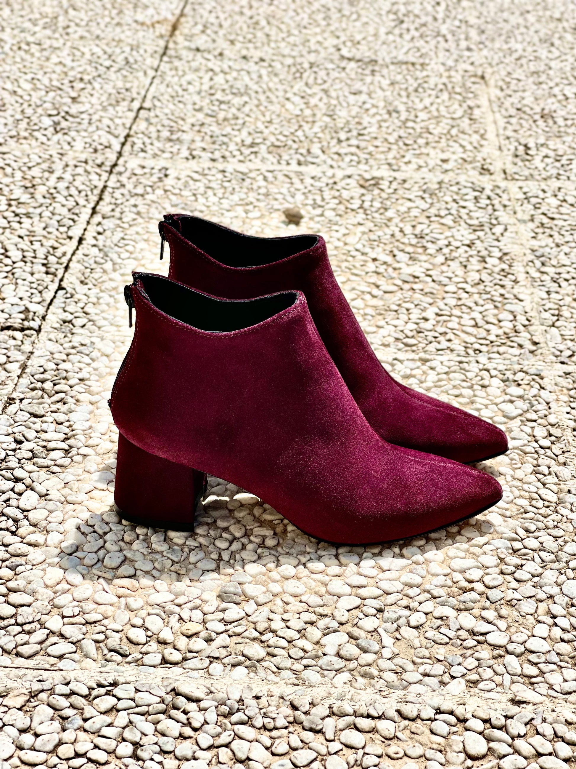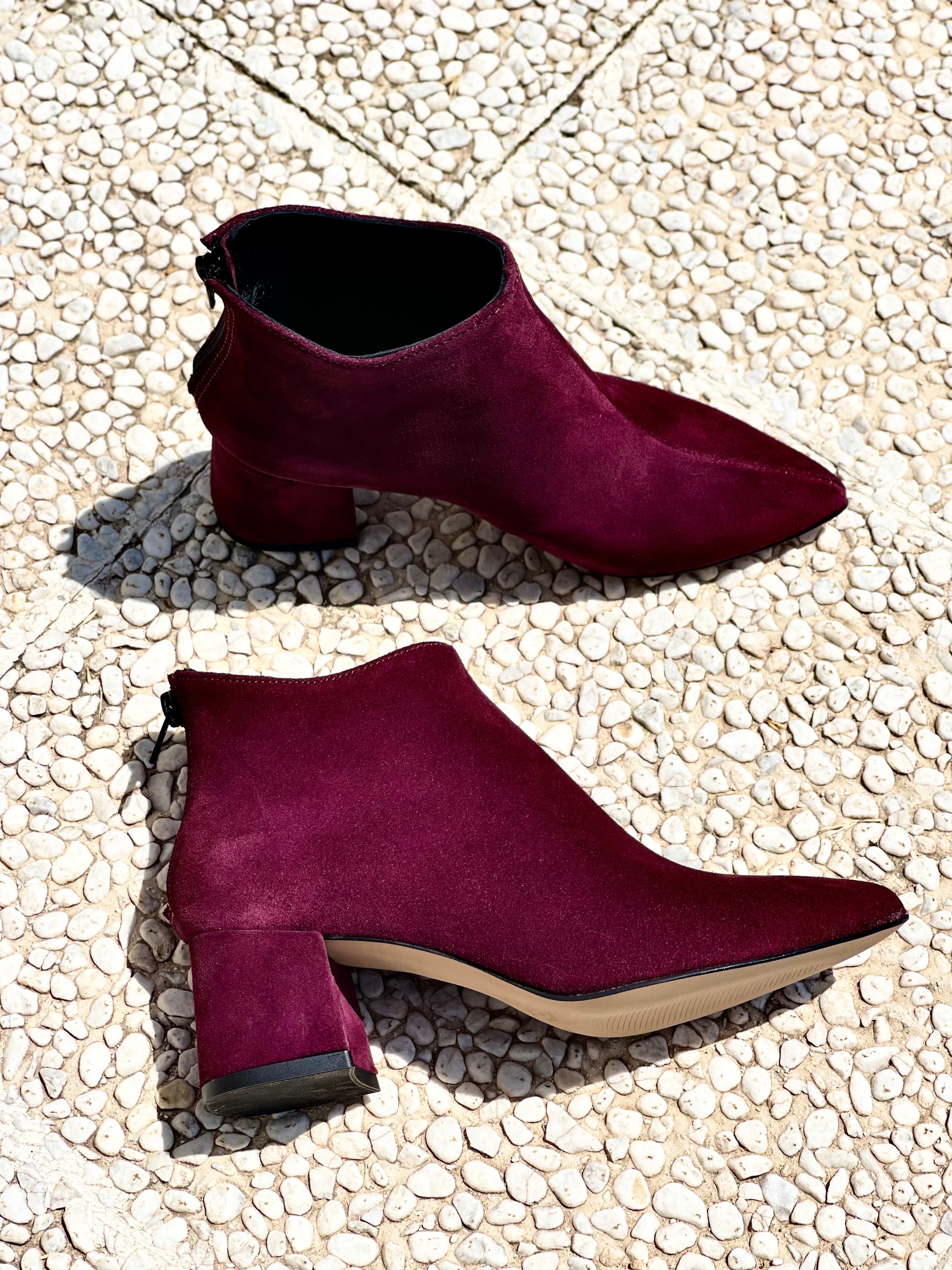 Μποτάκι με στρογγυλή μύτη από καμηλό, φερμουάρ στο πίσω μέρος και φαρδύ τακούνι 5 εκ.