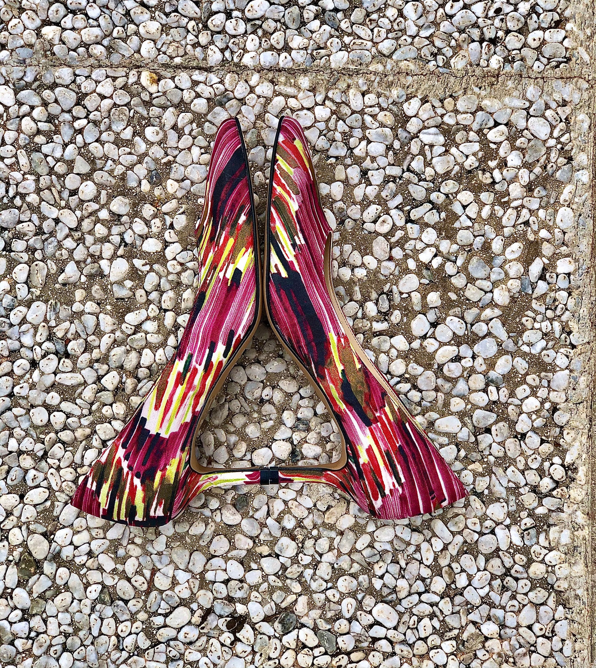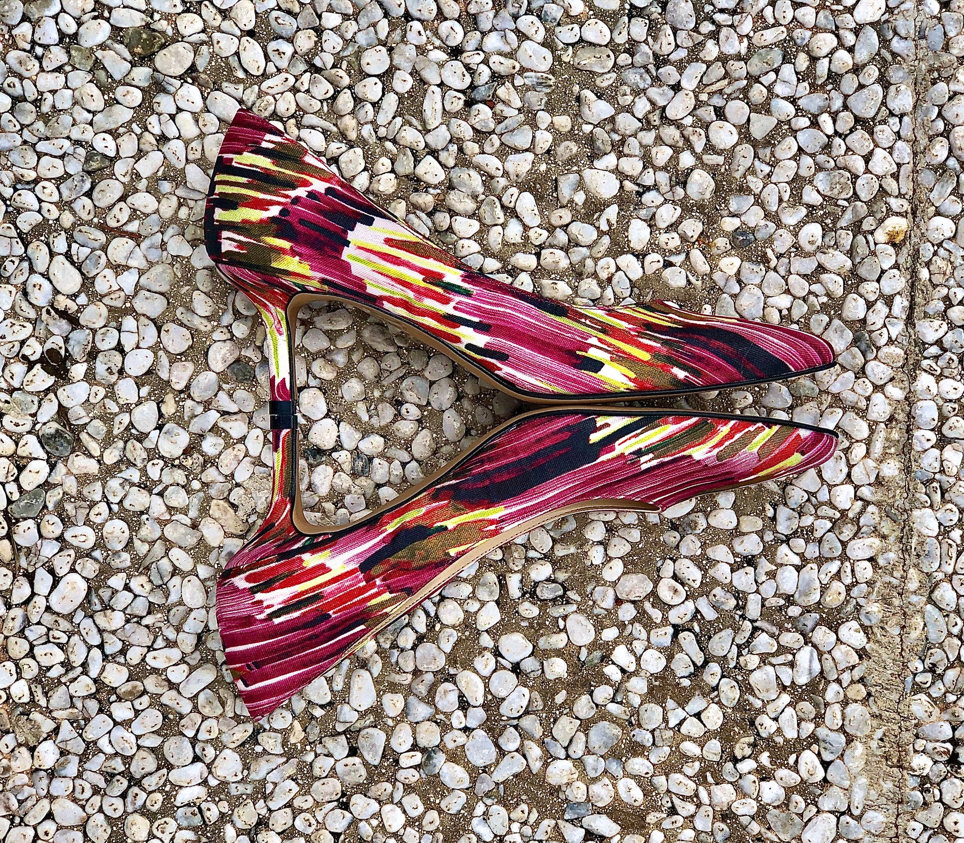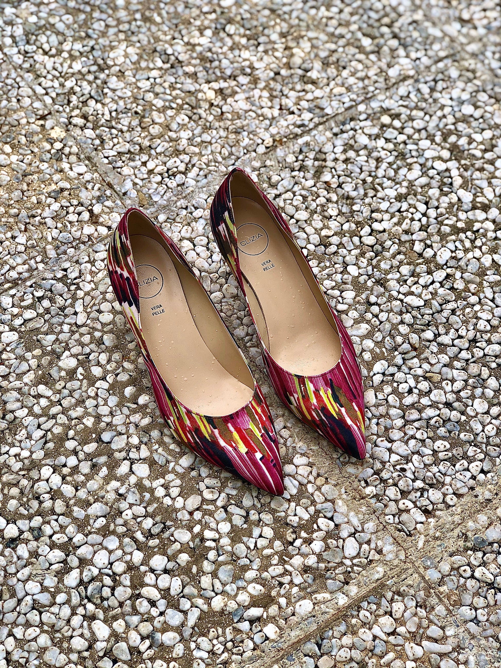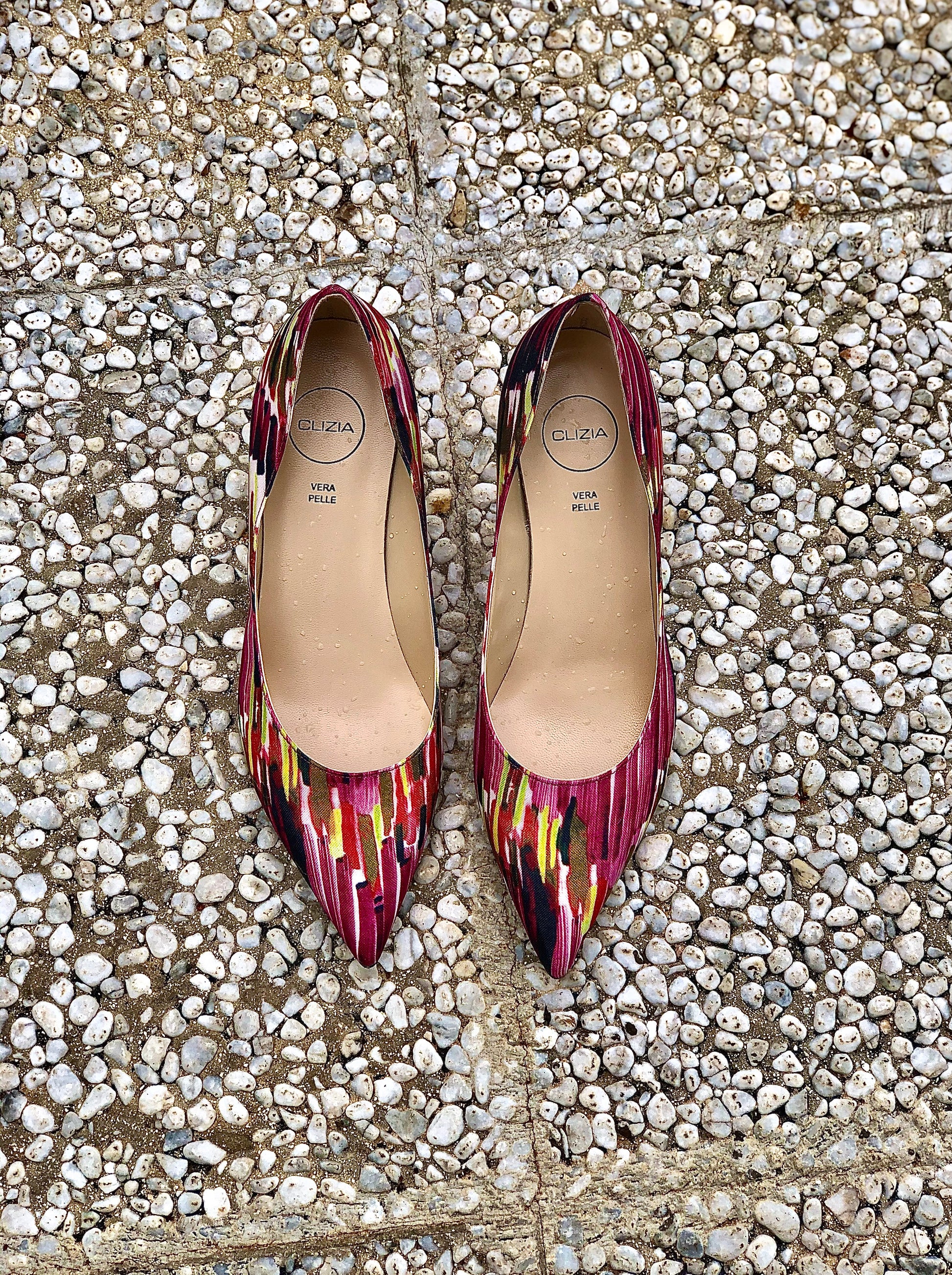Πολύχρωμα γόβα με μυτερή μύτη και τακούνι 6 εκ.
