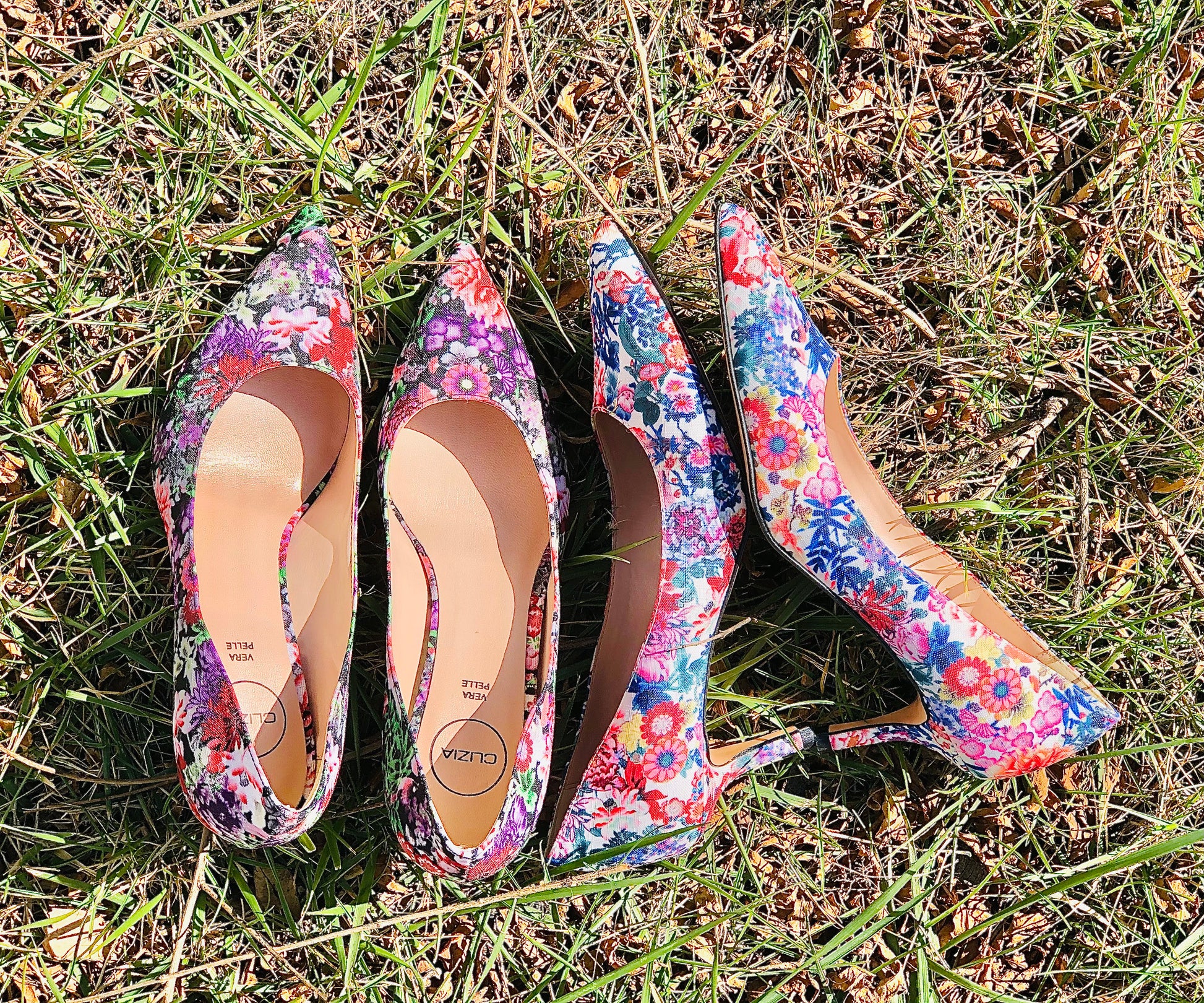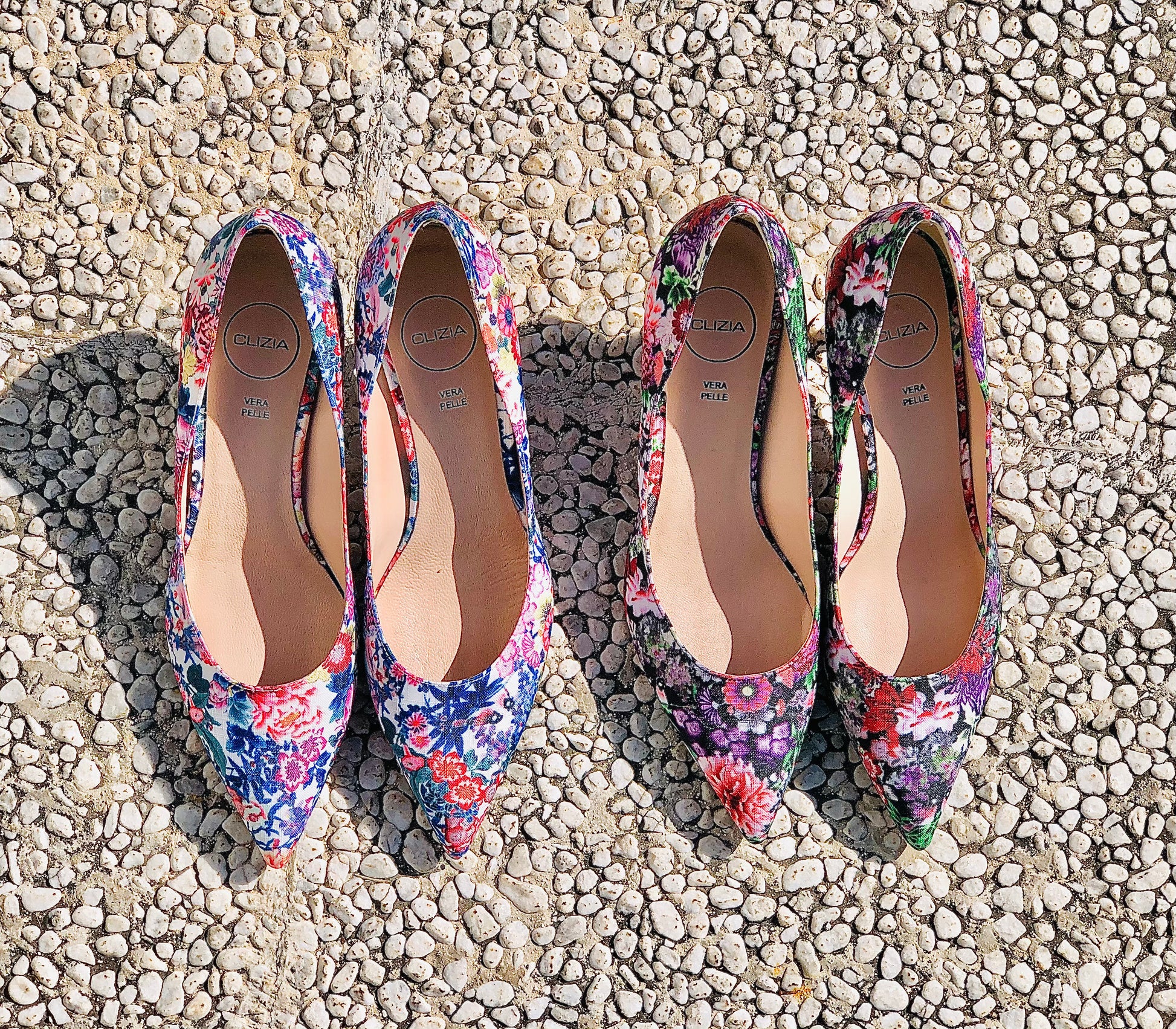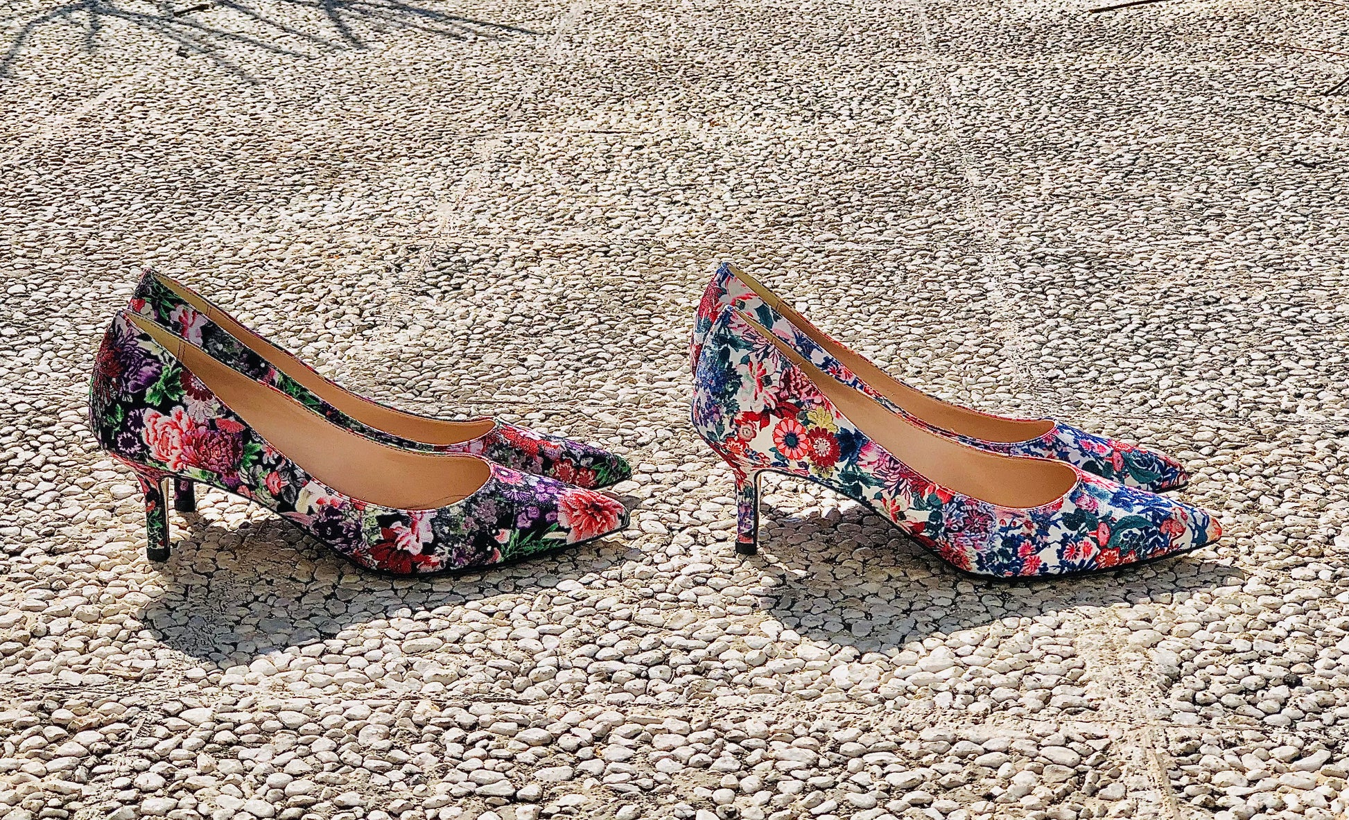 Γυναικεία γόβα με λουλούδια και λεπτή μύτη, τακούνι 6 εκ.