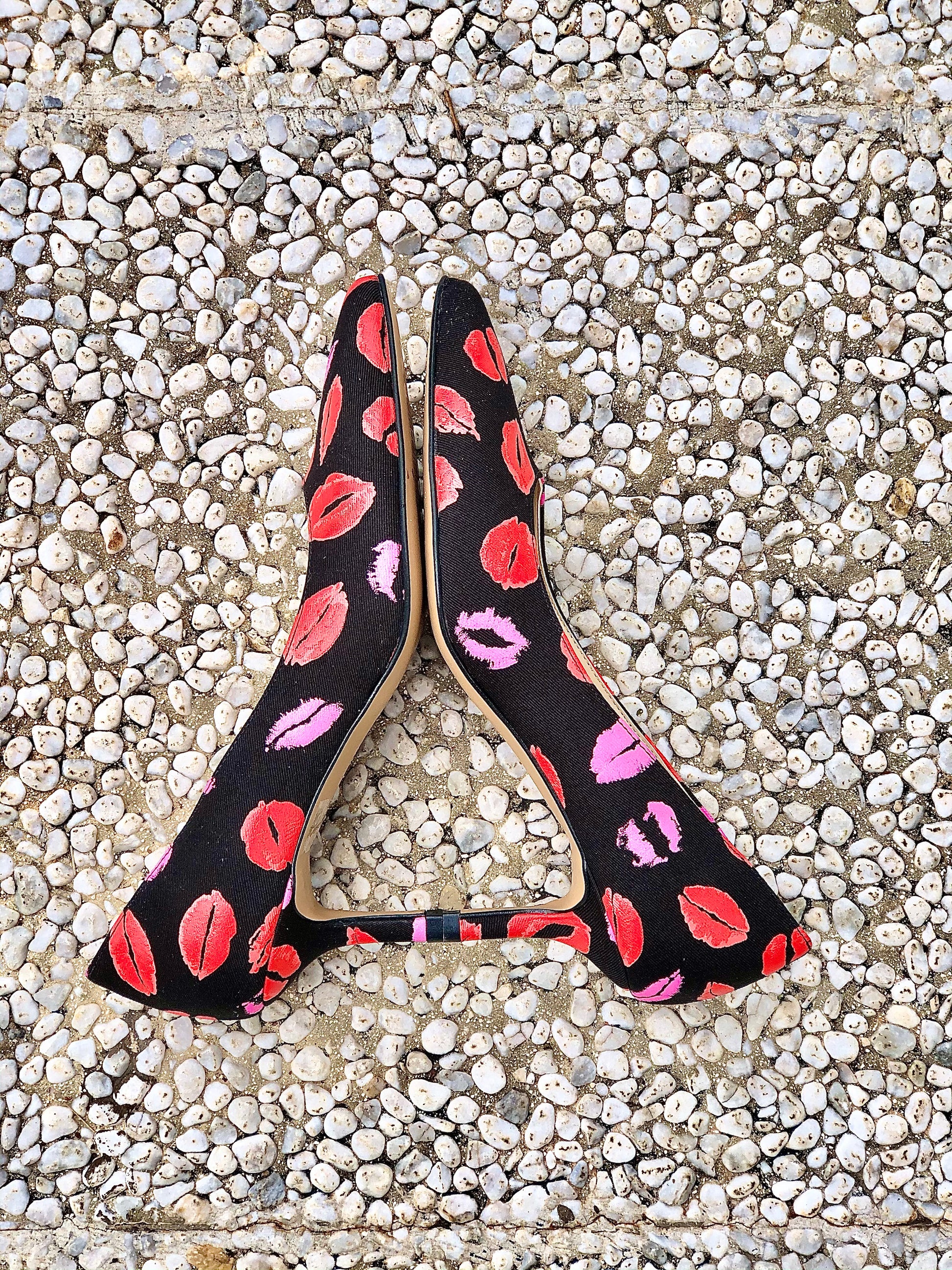 Ανοιχτά γόβα με μυτερή μύτη από ύφασμα baci και τακούνι 6 cm.