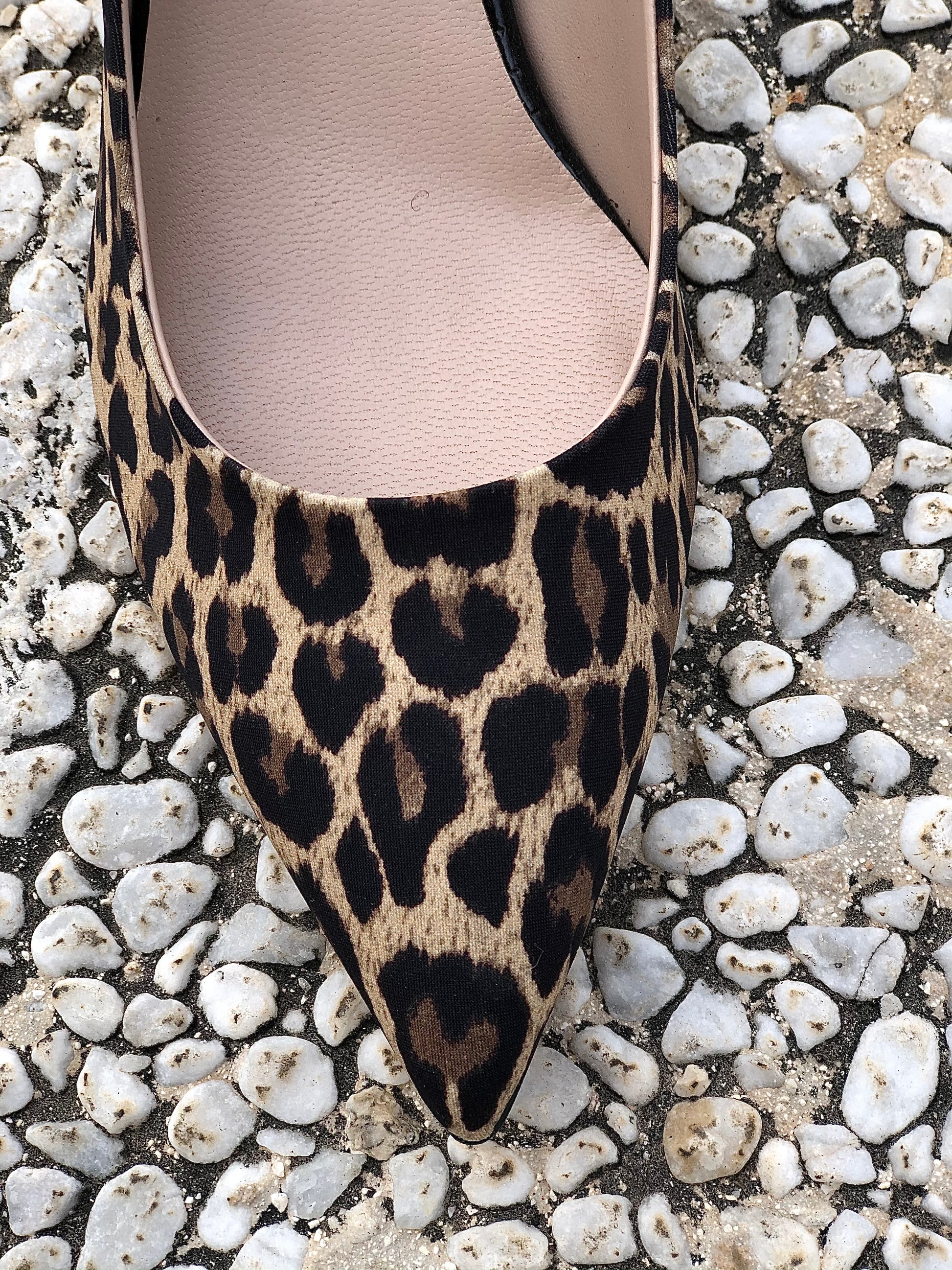Γόβες με ανοιχτή μύτη από ύφασμα με λεοπάρ μοτίβο και τακούνι 6 εκ.