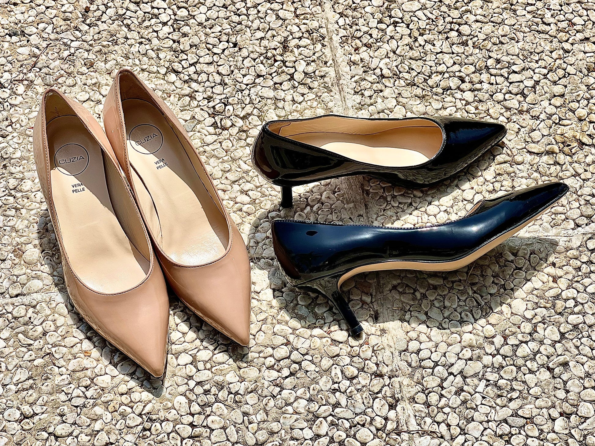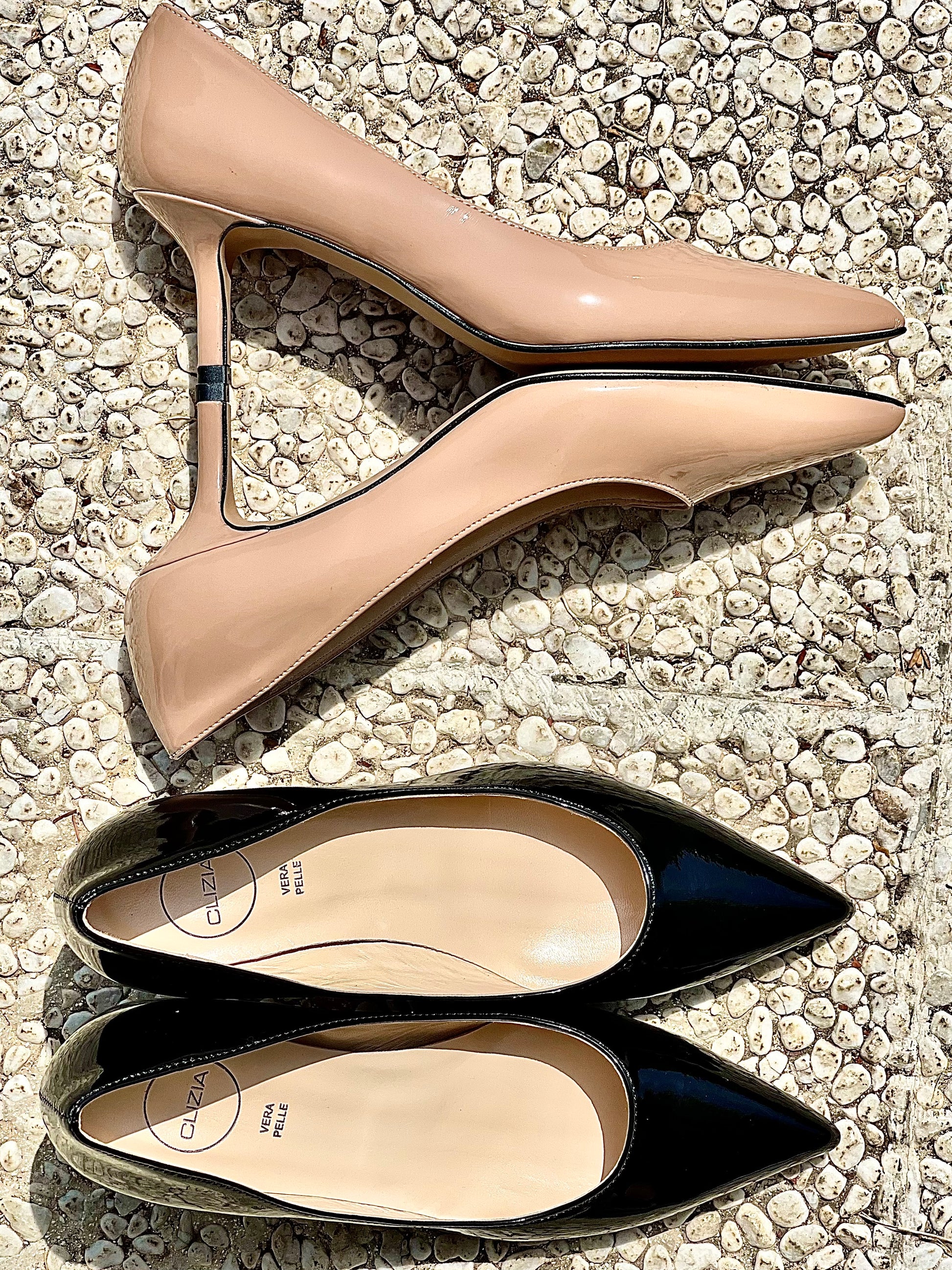 Γόβες με μυτερή μύτη από βερνίκι, τακούνι 6 εκ.