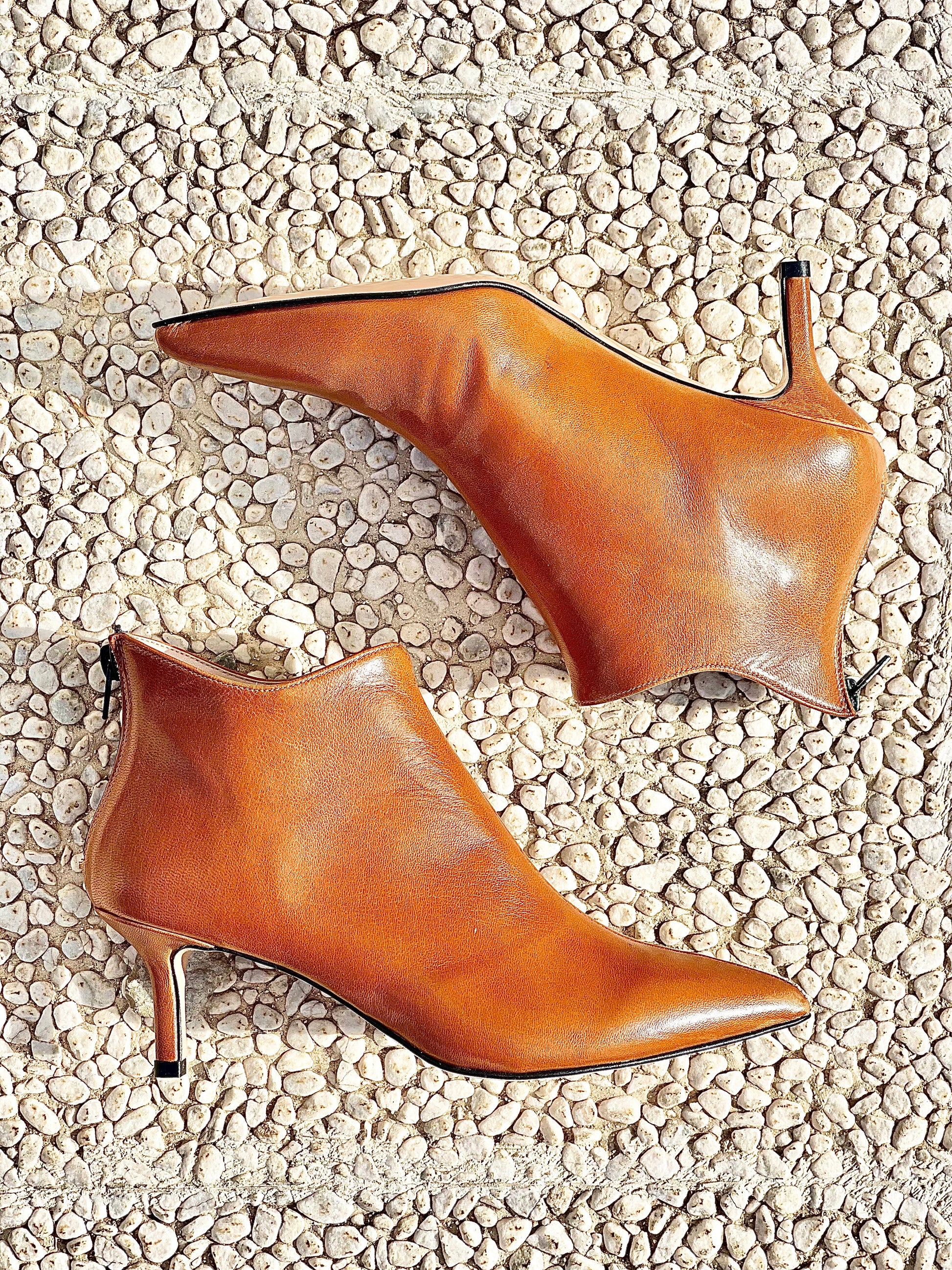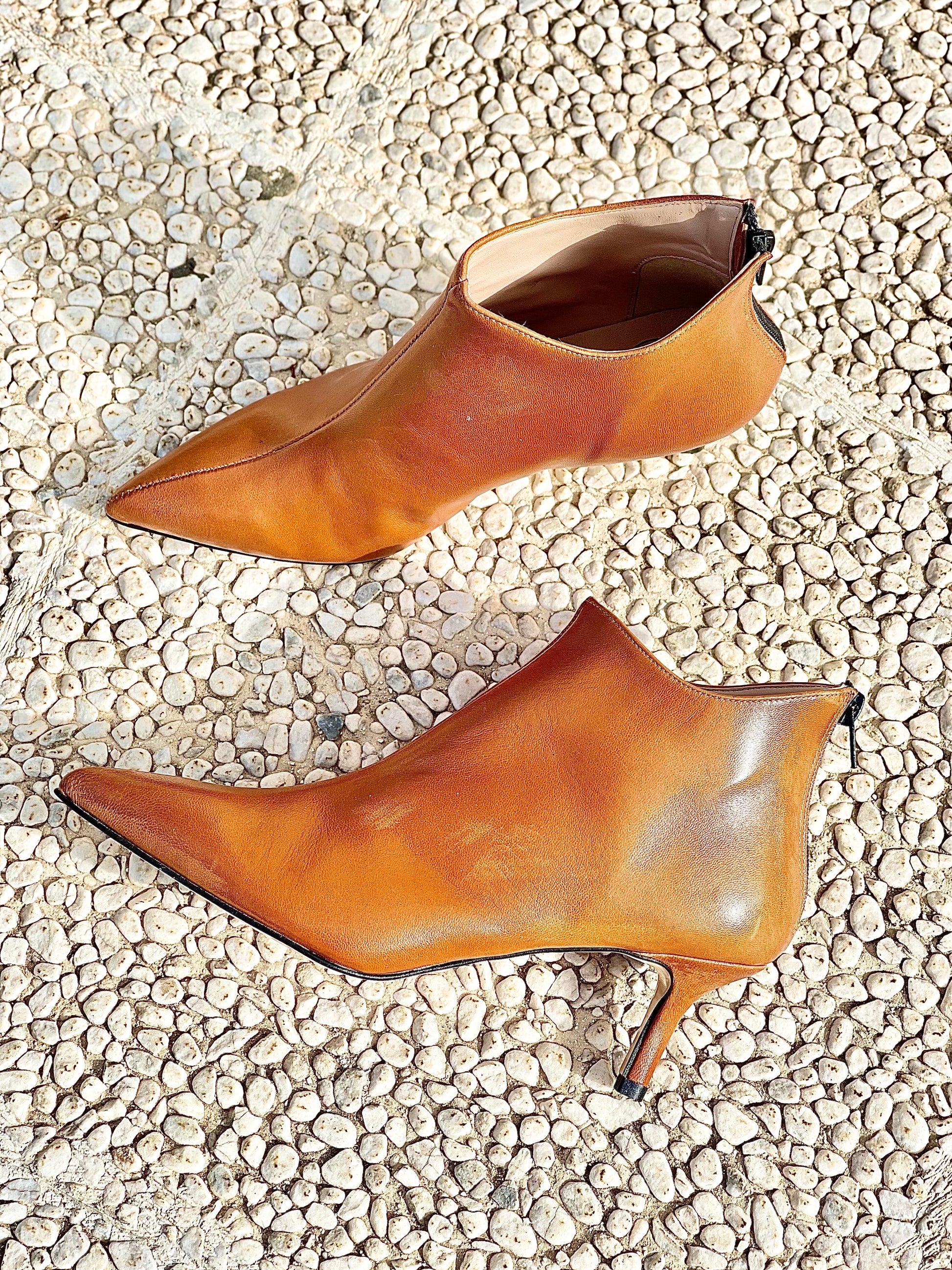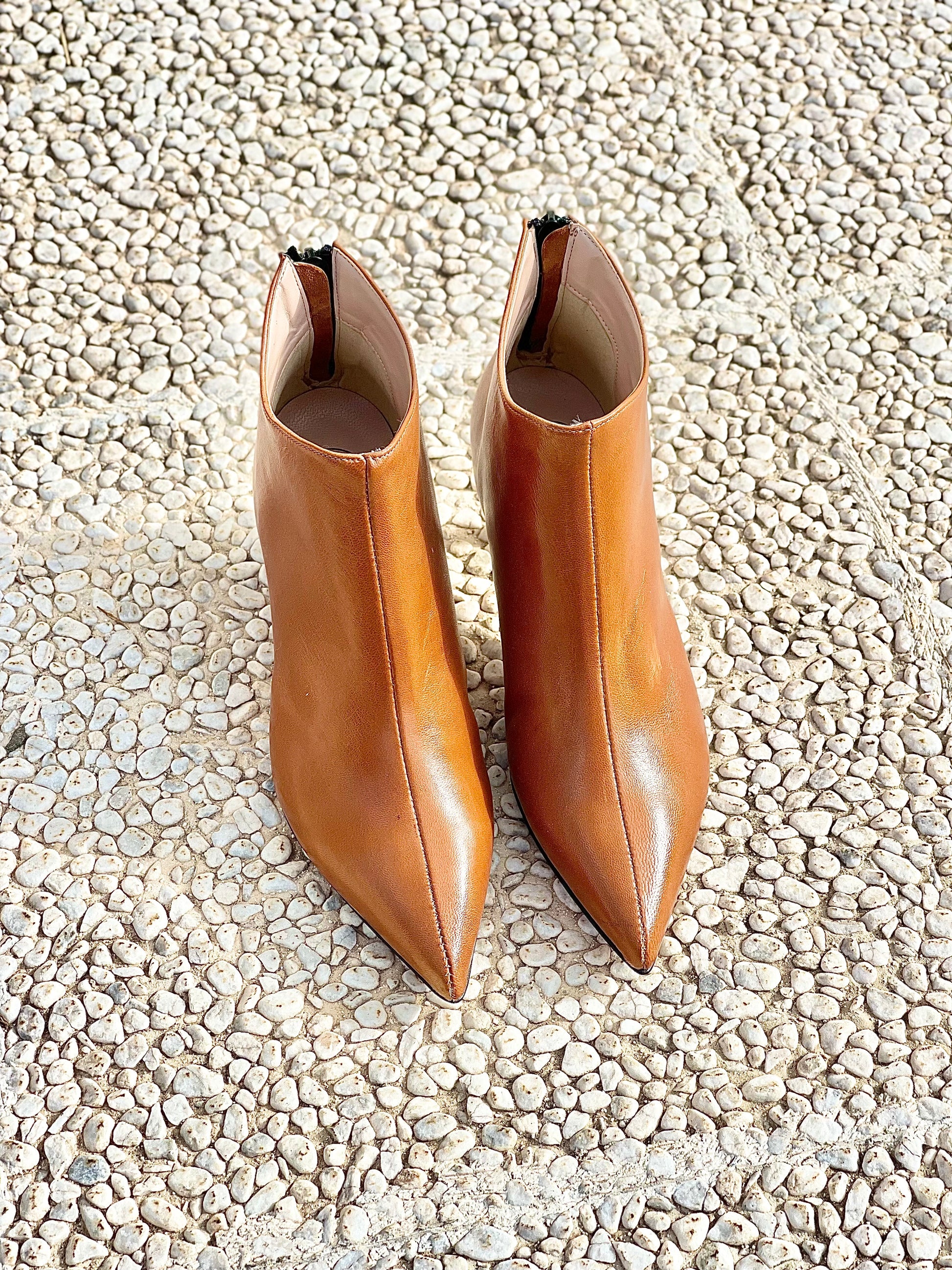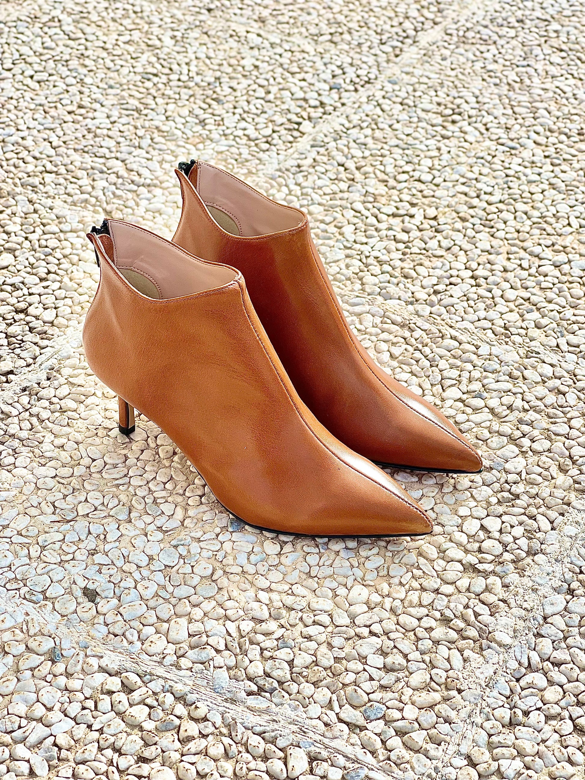 Μποτάκια με μυτερή μύτη, τακούνι 6 εκ. και φερμουάρ στο πίσω μέρος.