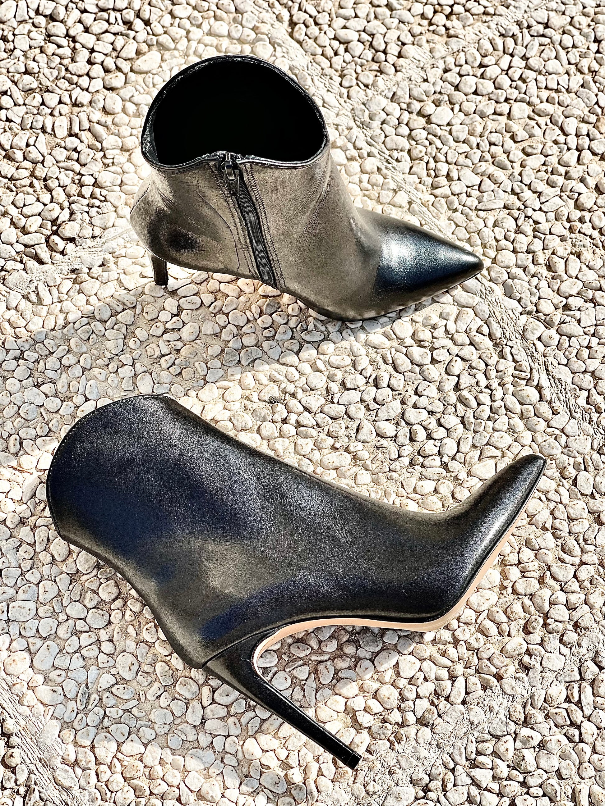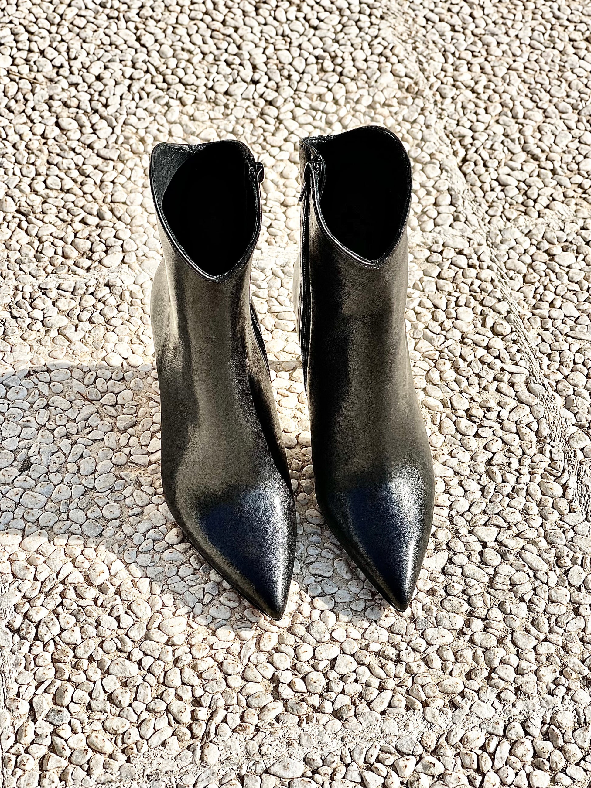 Κομψό μποτάκι σε στυλ Τέξας με λεπτή μύτη και ψηλό τακούνι.