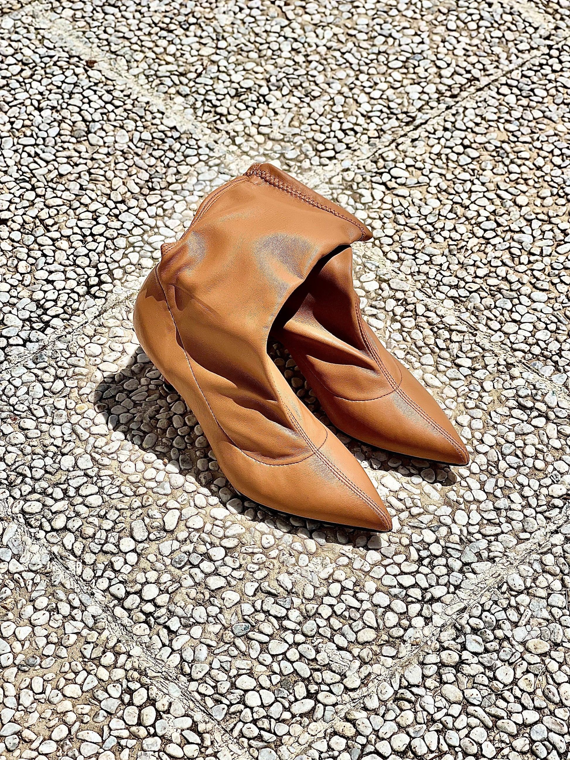 Ελαστική μπότα με στρογγυλή μύτη και τακούνι 6 cm.