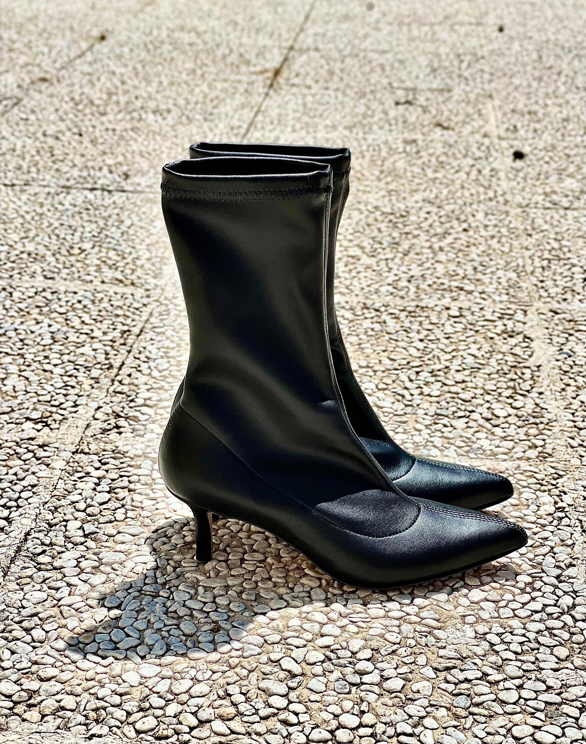 Ελαστική μπότα με στρογγυλή μύτη και τακούνι 6 cm.