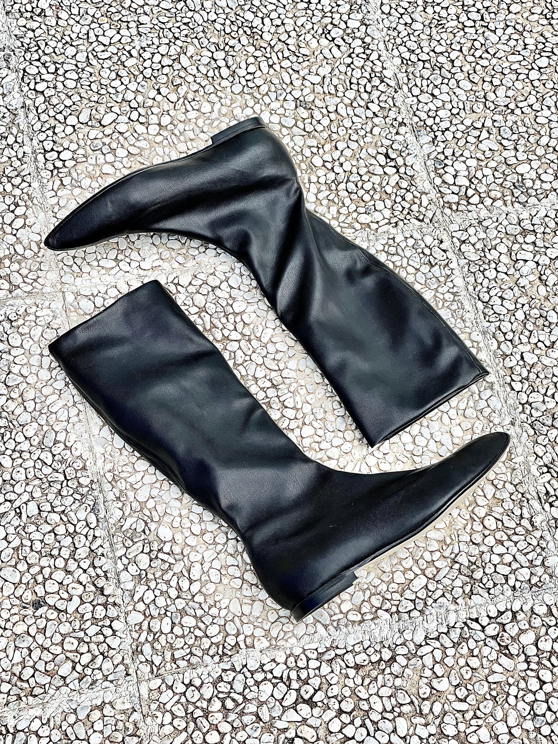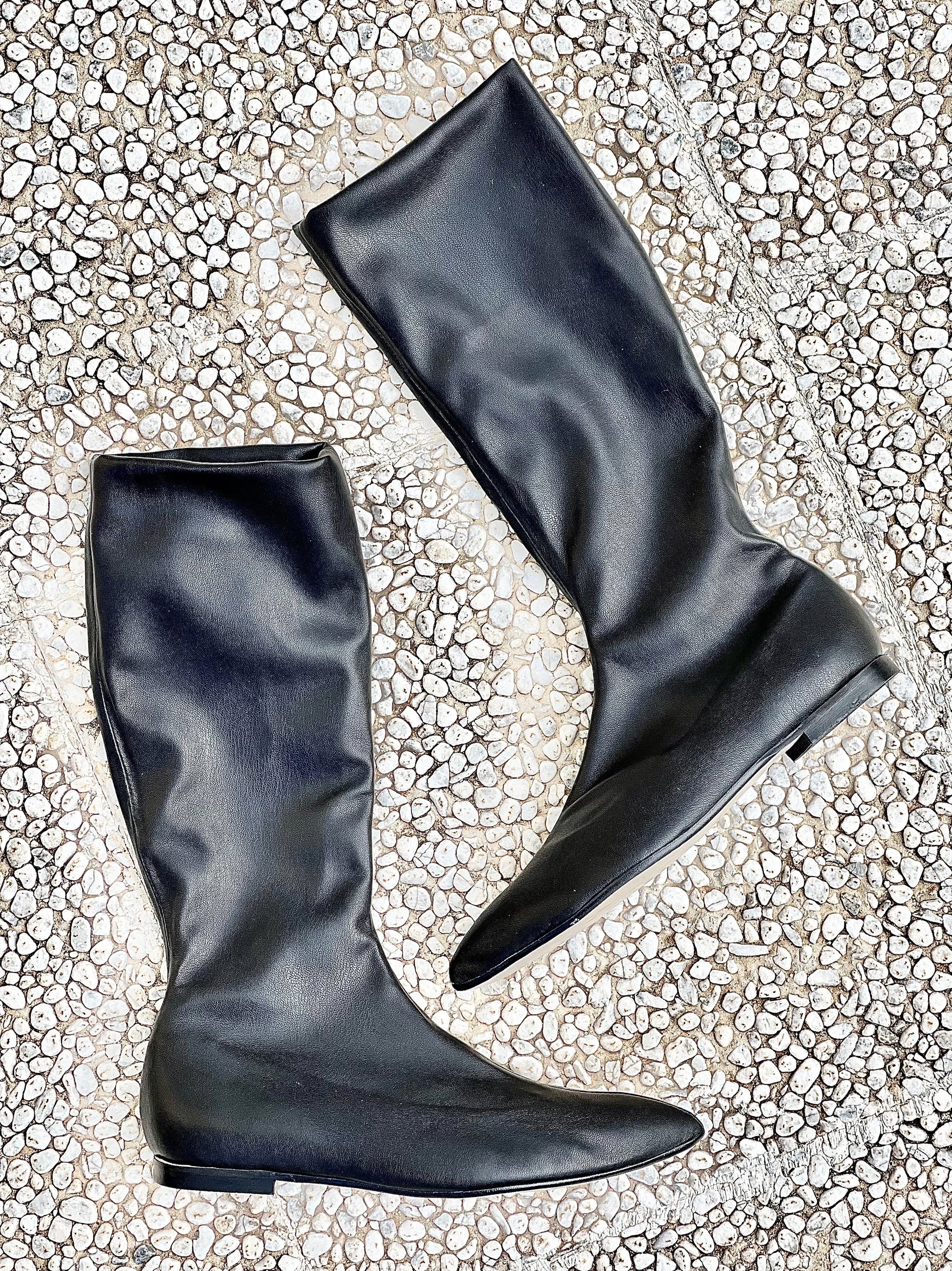 Ελαστικά χαμηλά δερμάτινα μποτάκια με στρογγυλή μύτη και τακούνι 1 εκ.