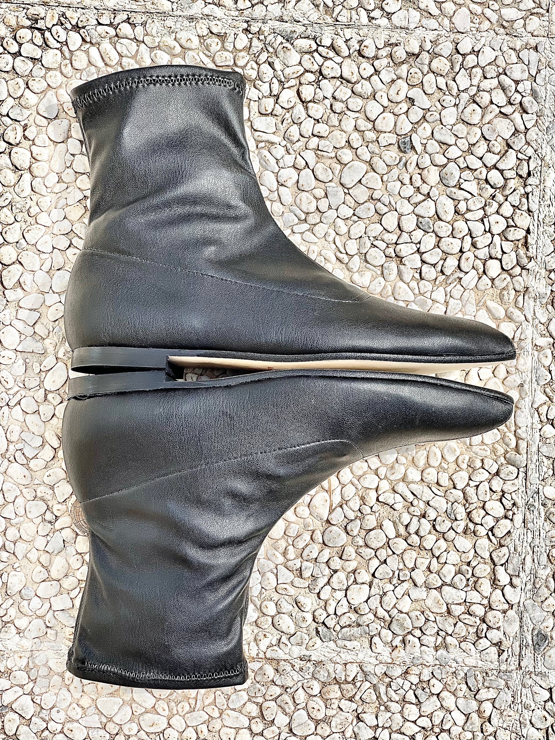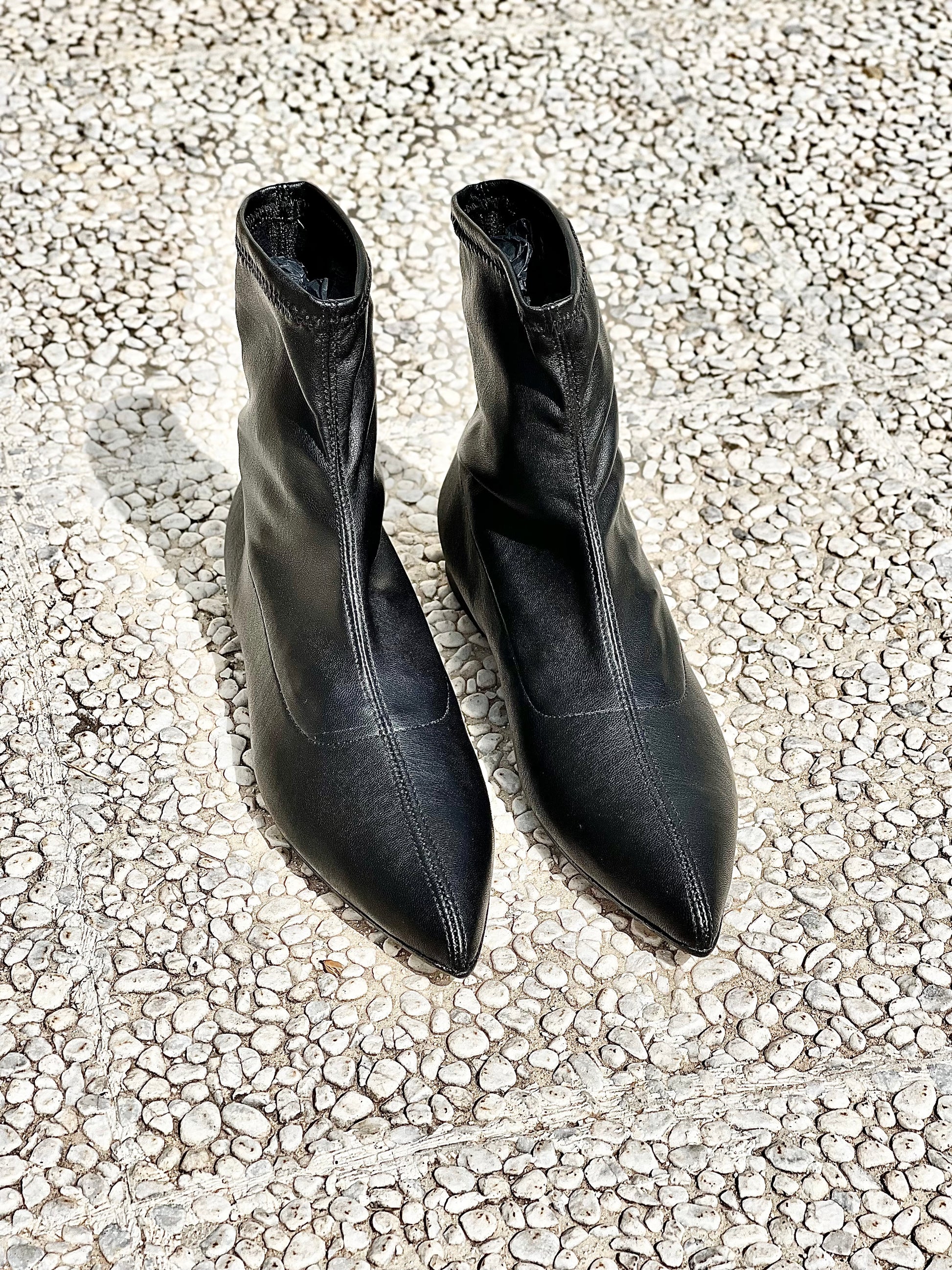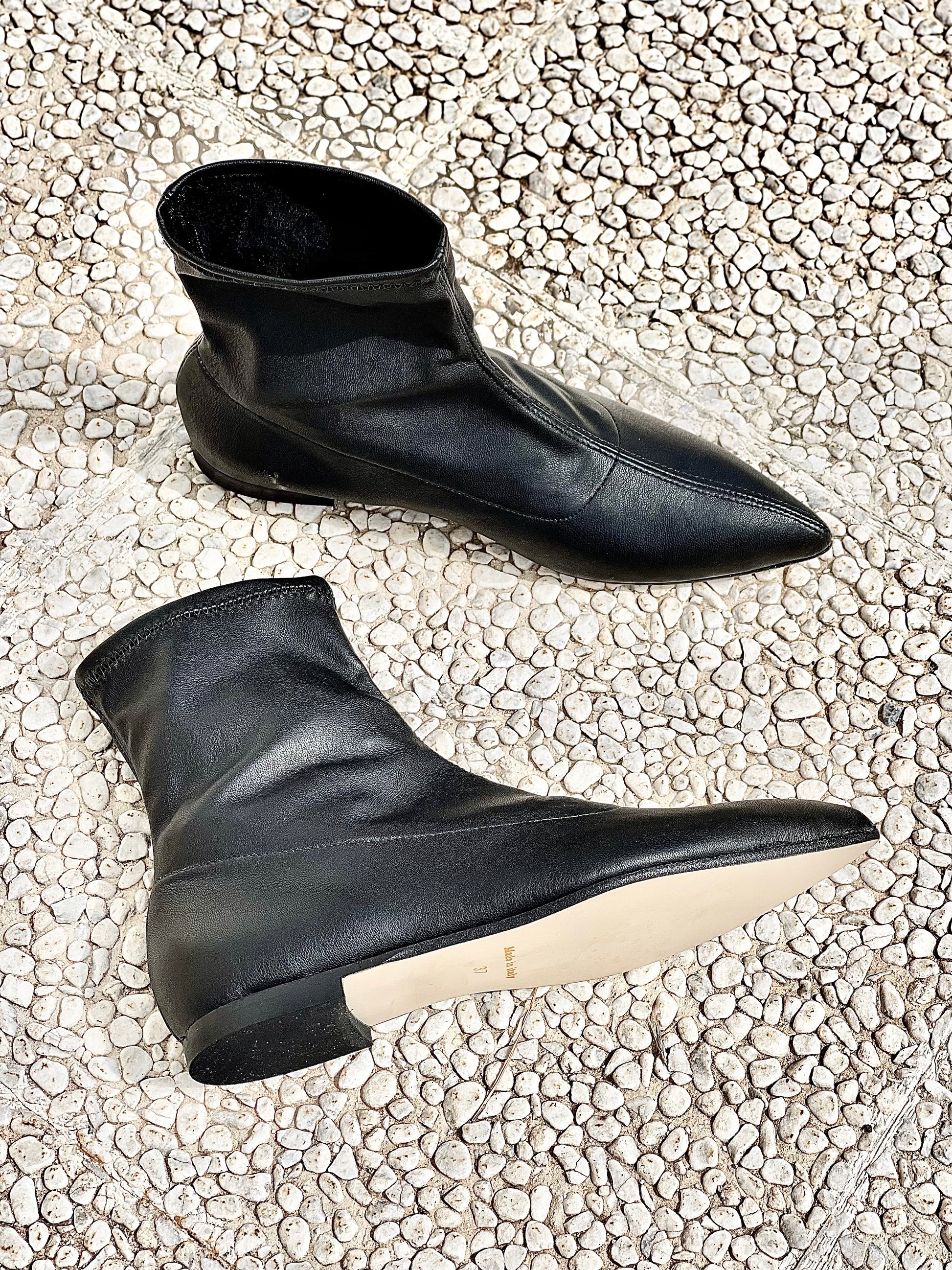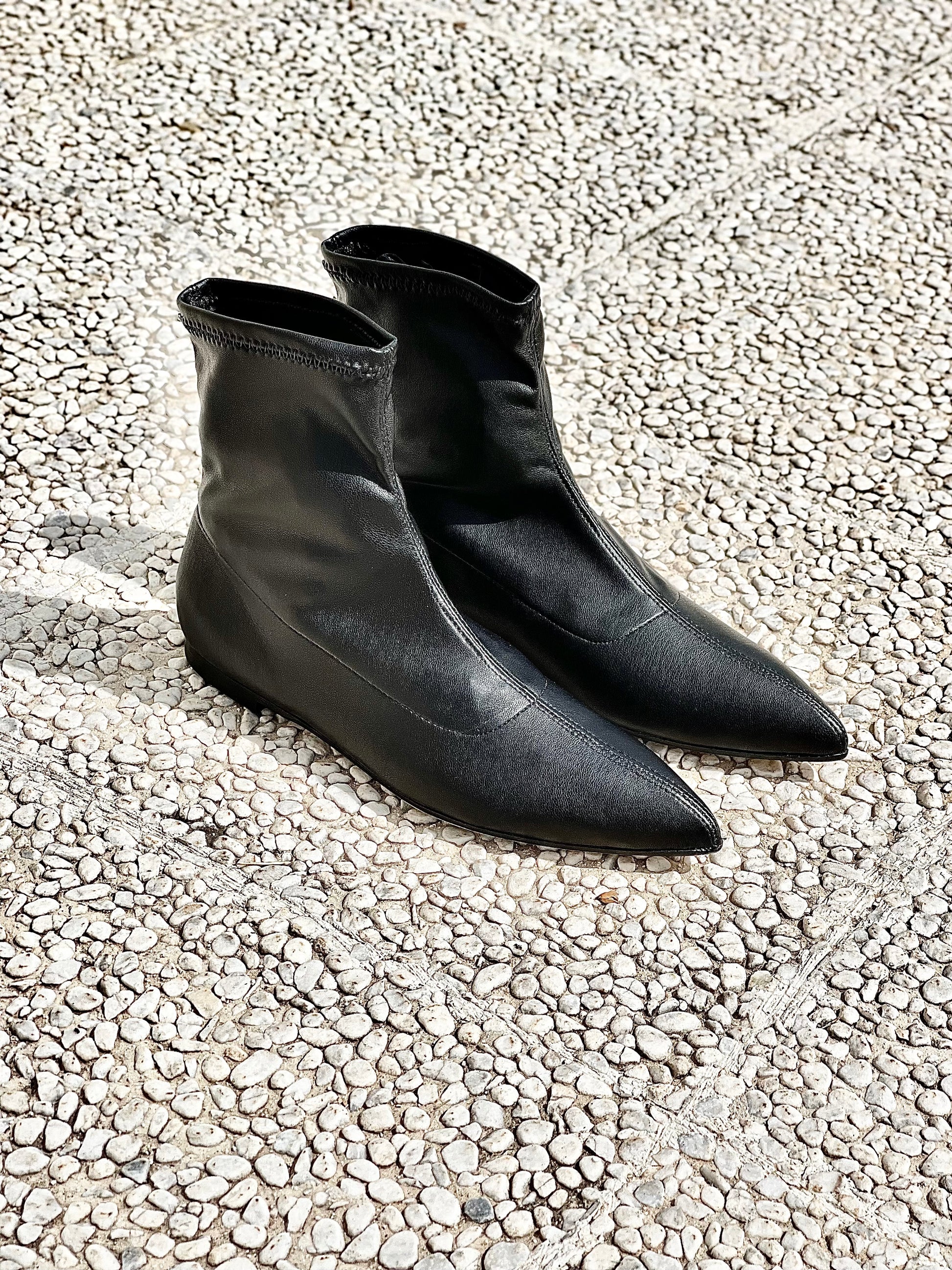 Μποτάκι με στρογγυλή μύτη από ελαστικό δέρμα, τακούνι 1 εκ.