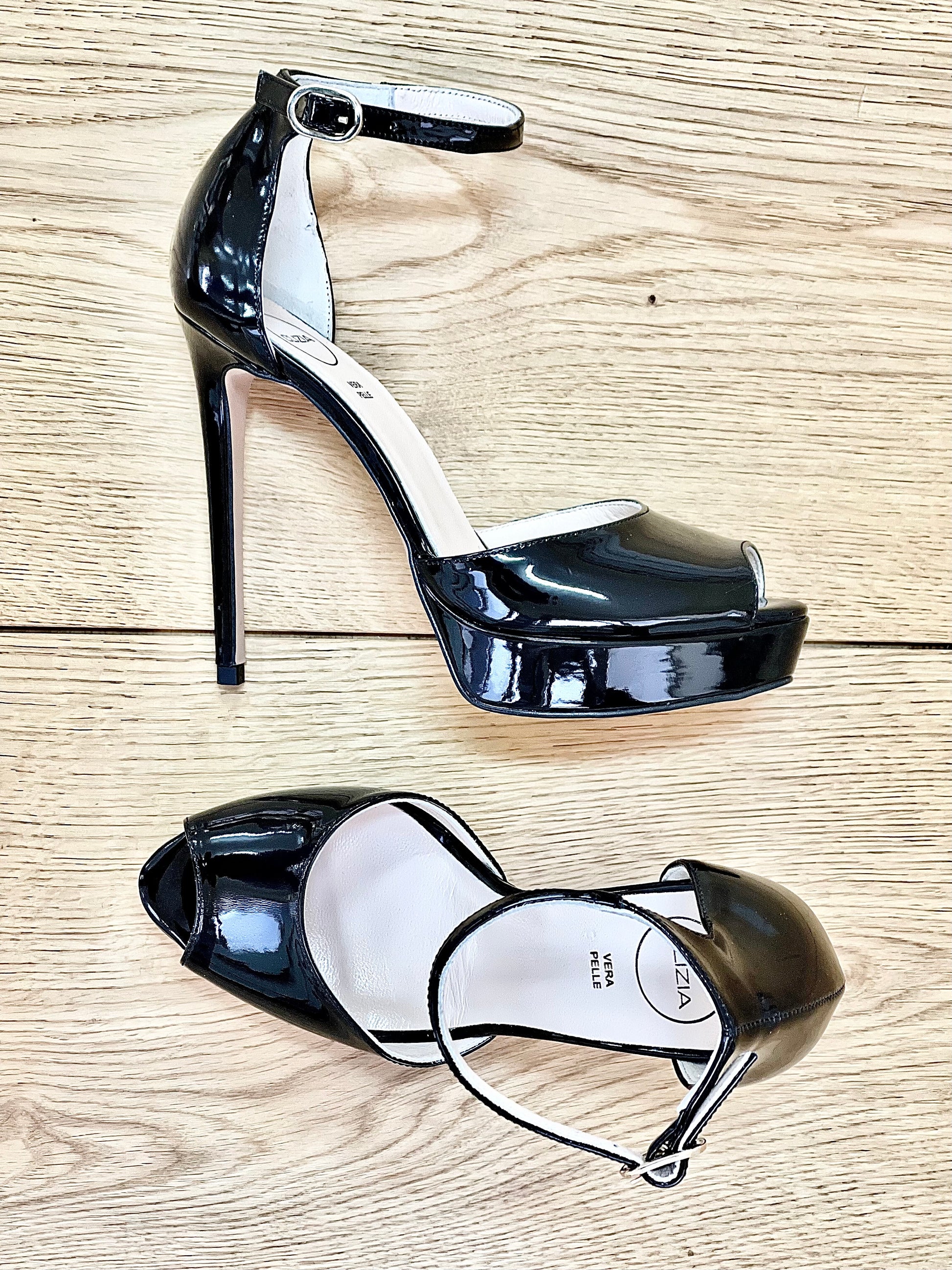 Σανδάλια με μύτη και τακούνι από βερνίκι, τακούνι ύψους 12 εκ. και πλατφόρμα 2 εκ.