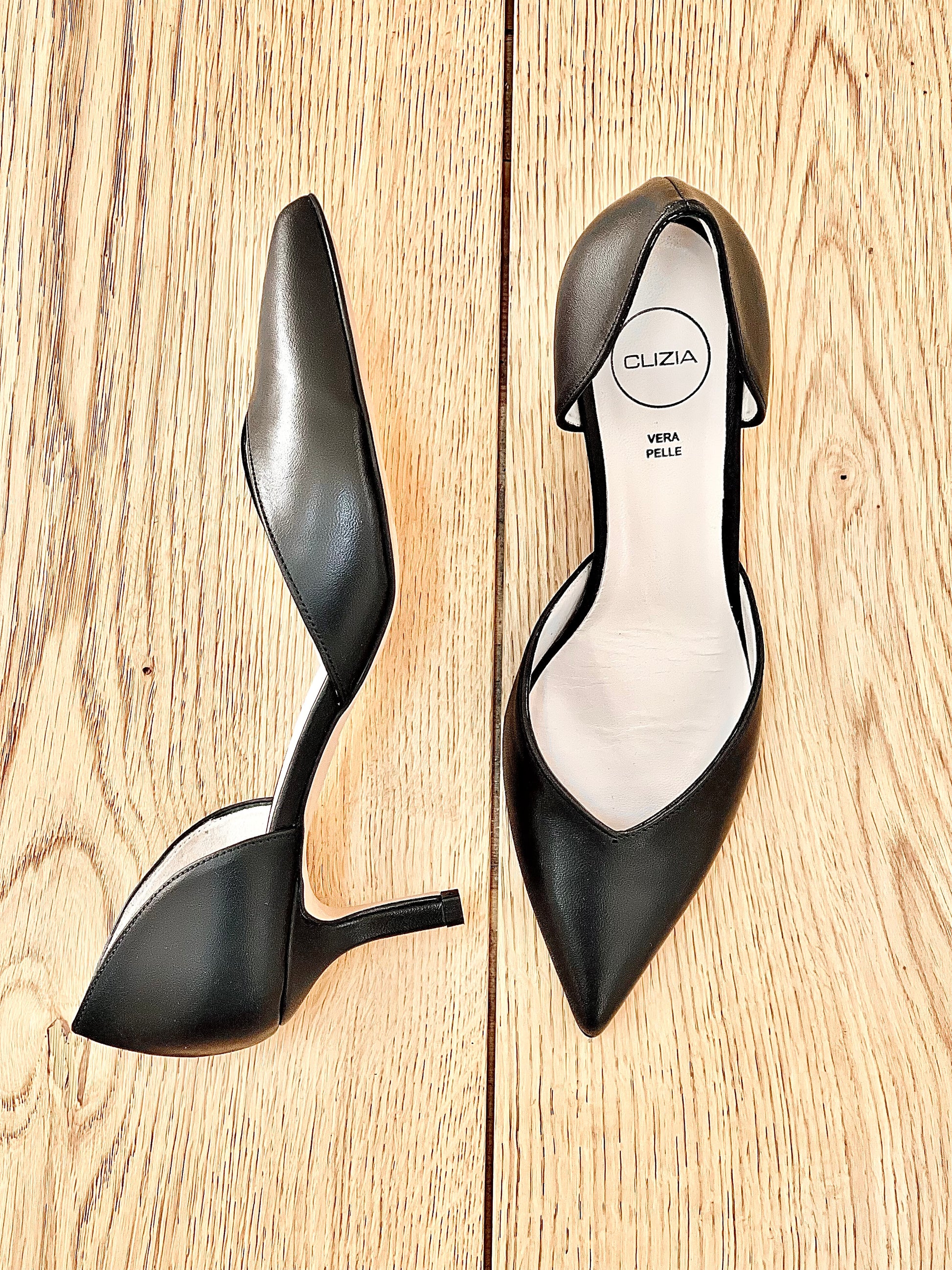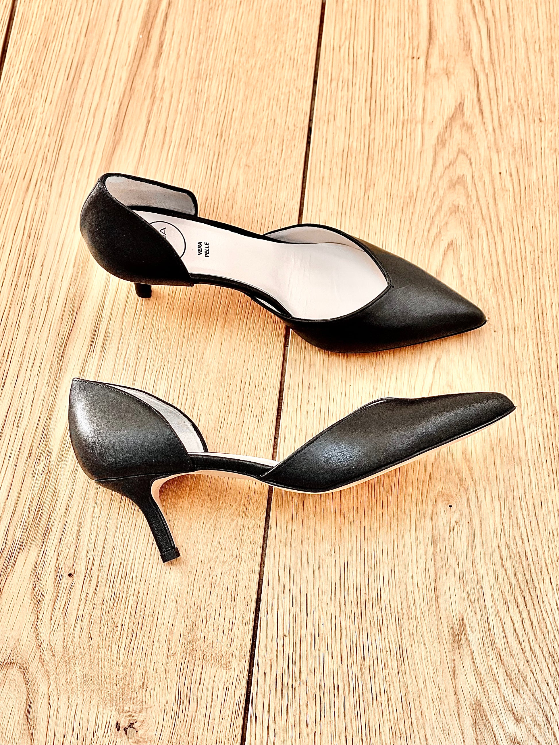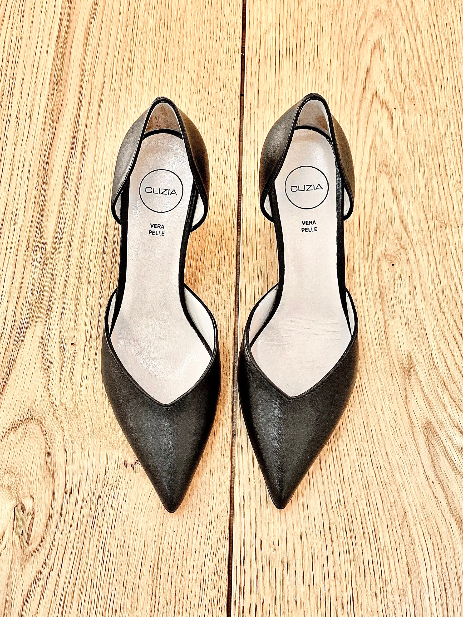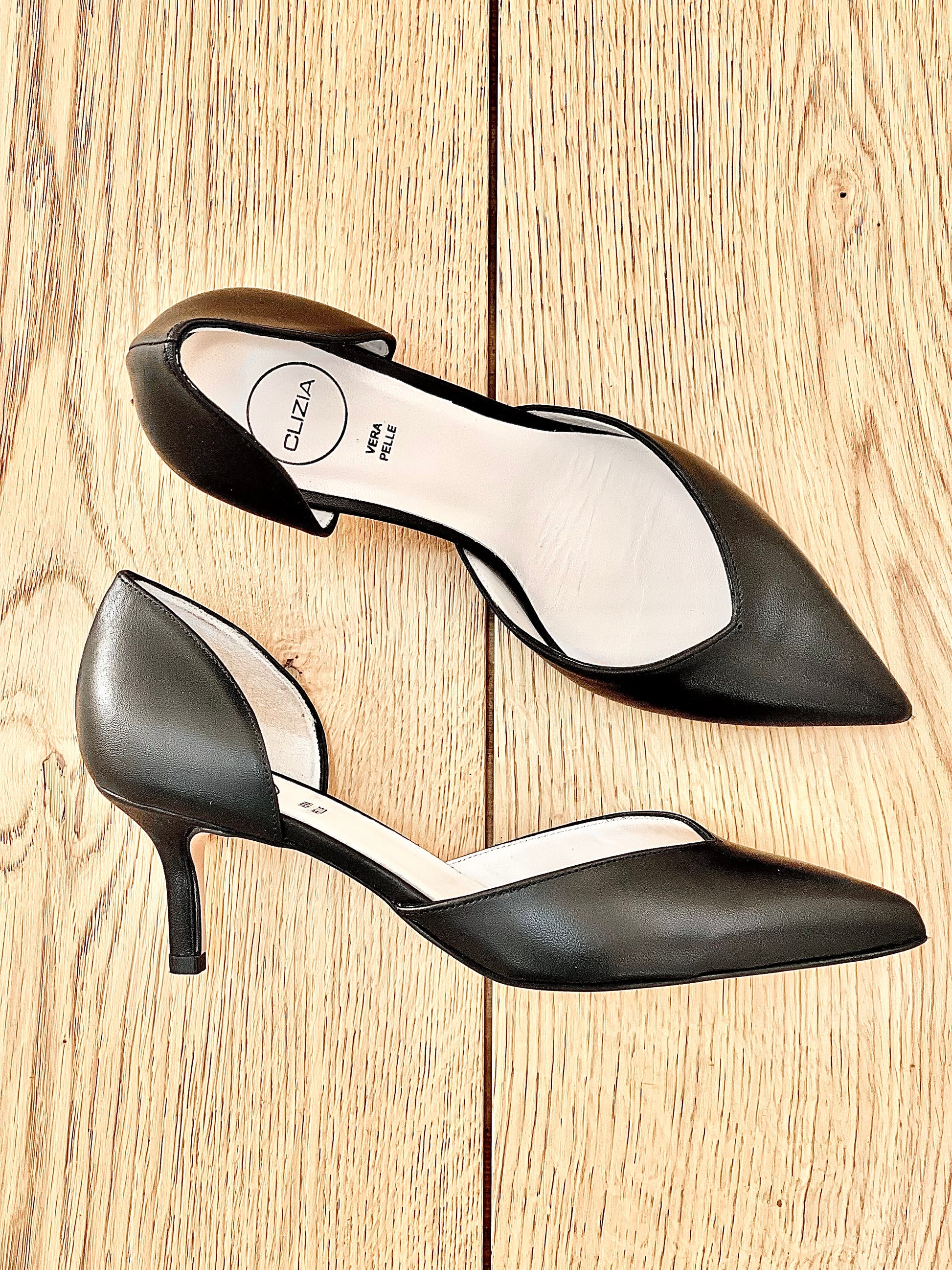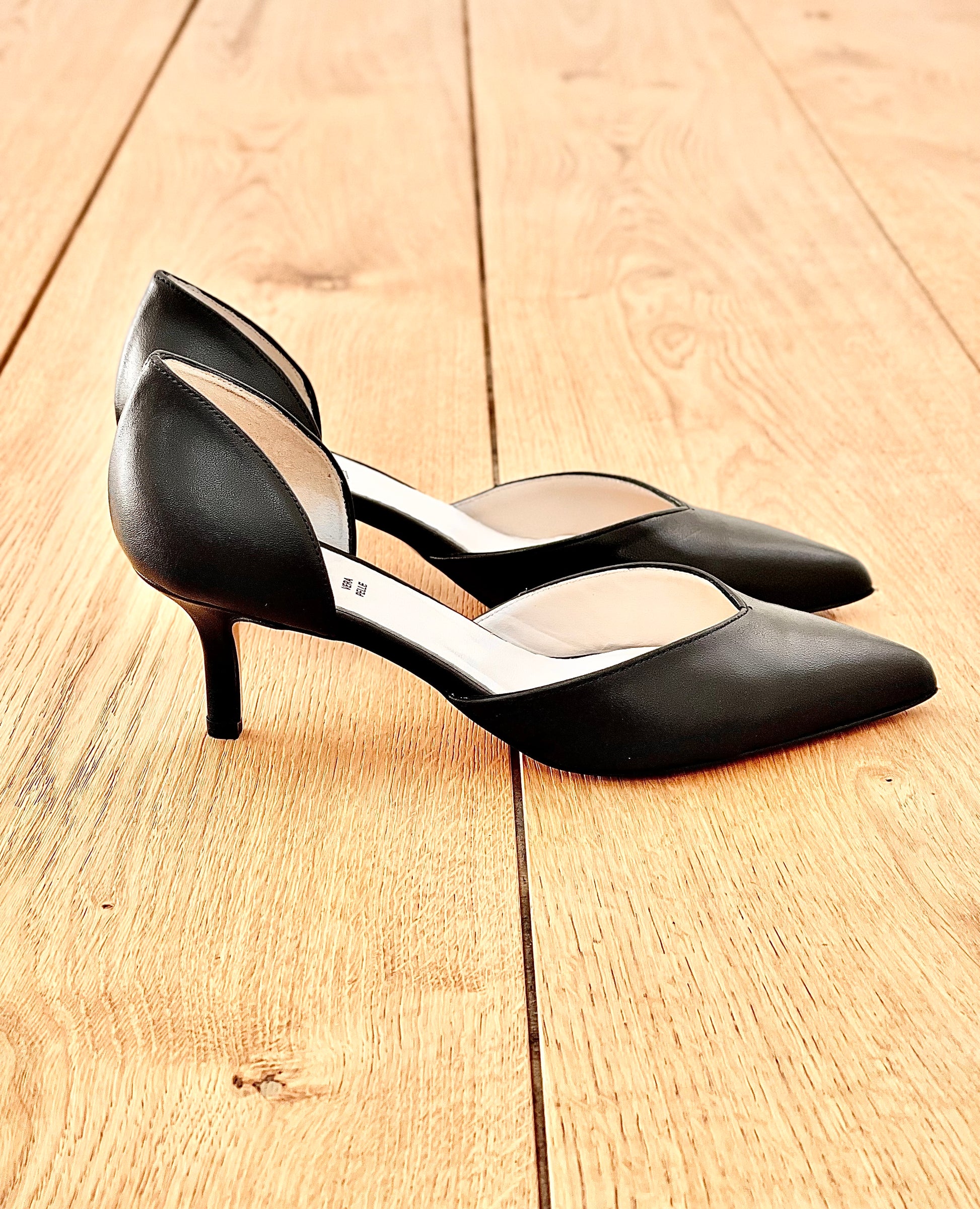 Γόβες με μυτερή μύτη και χαμηλό τακούνι, V λαιμόκοψη από δέρμα, τακούνι 6 εκ.