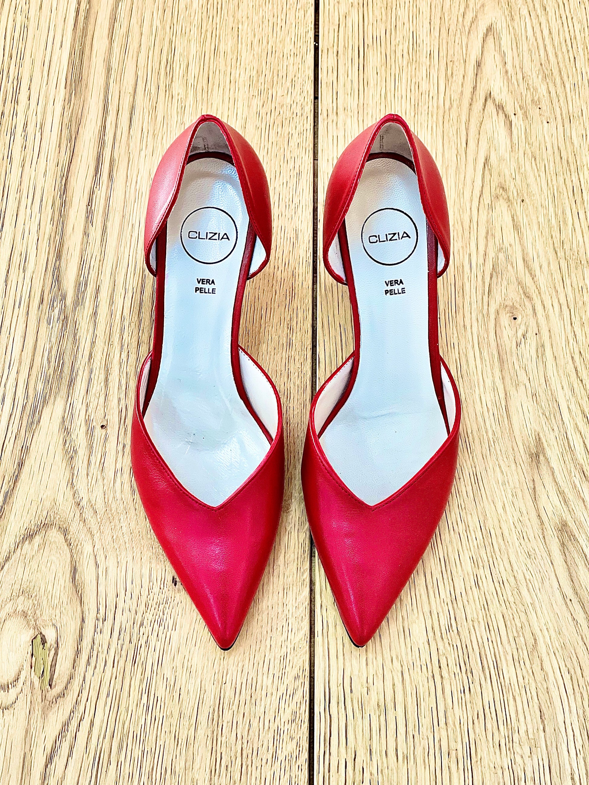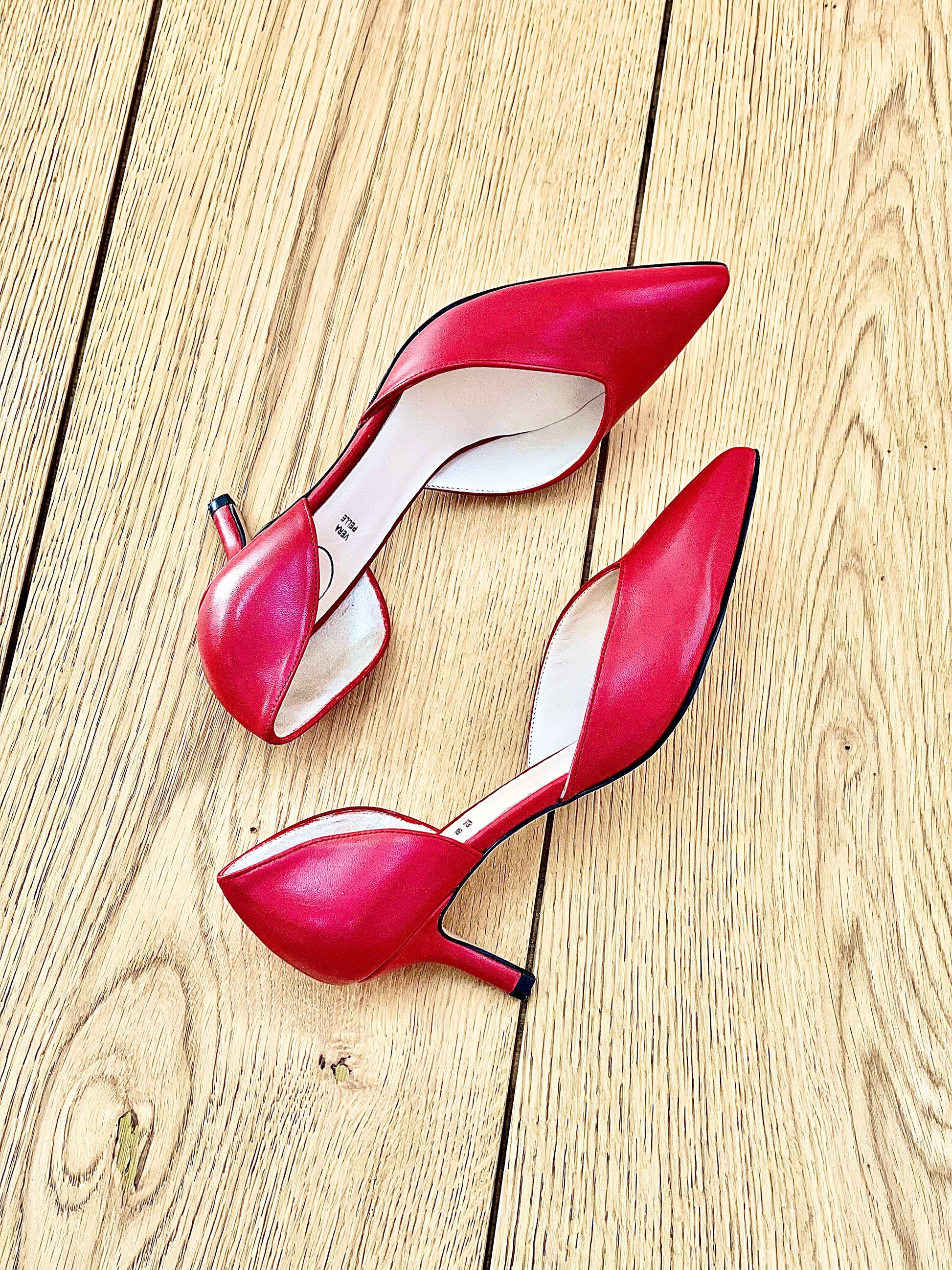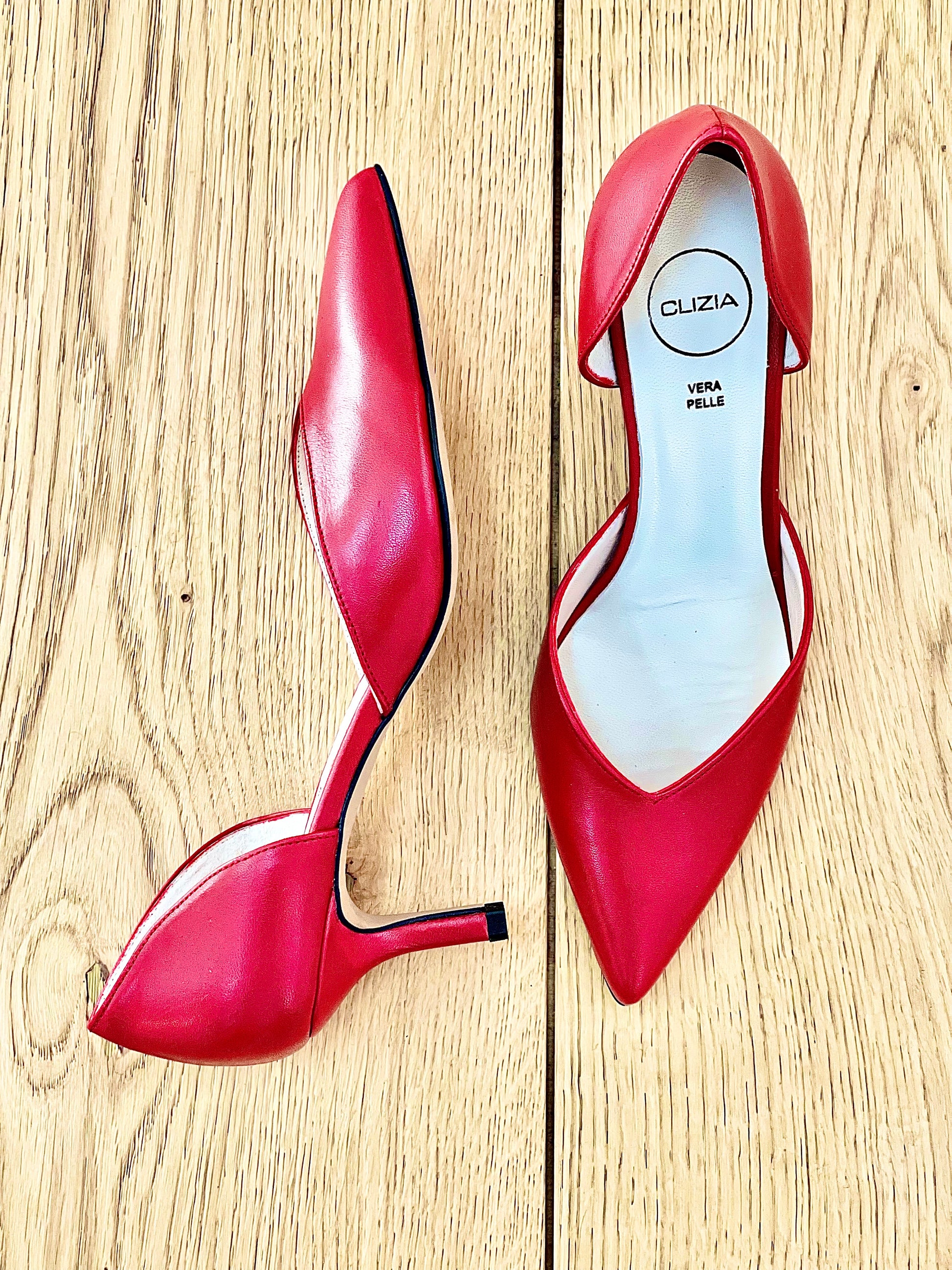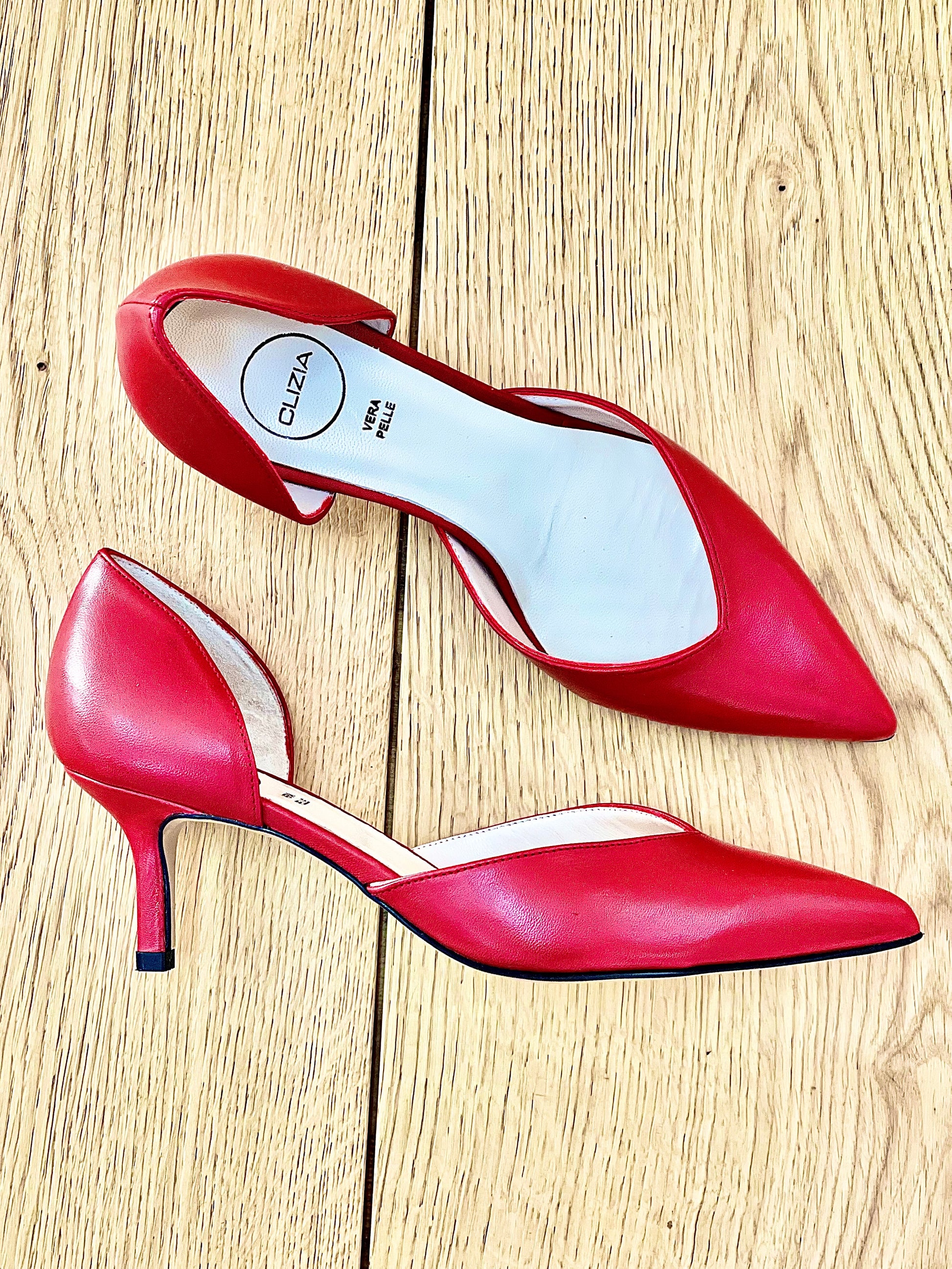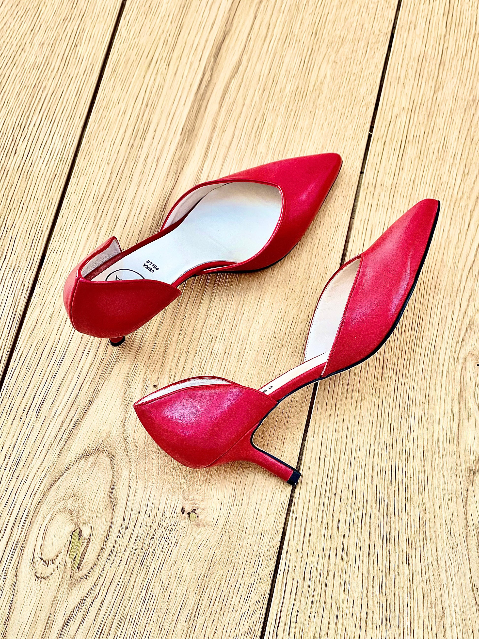 Γόβες με μυτερή μύτη και χαμηλό τακούνι, V λαιμόκοψη από δέρμα, τακούνι 6 εκ.