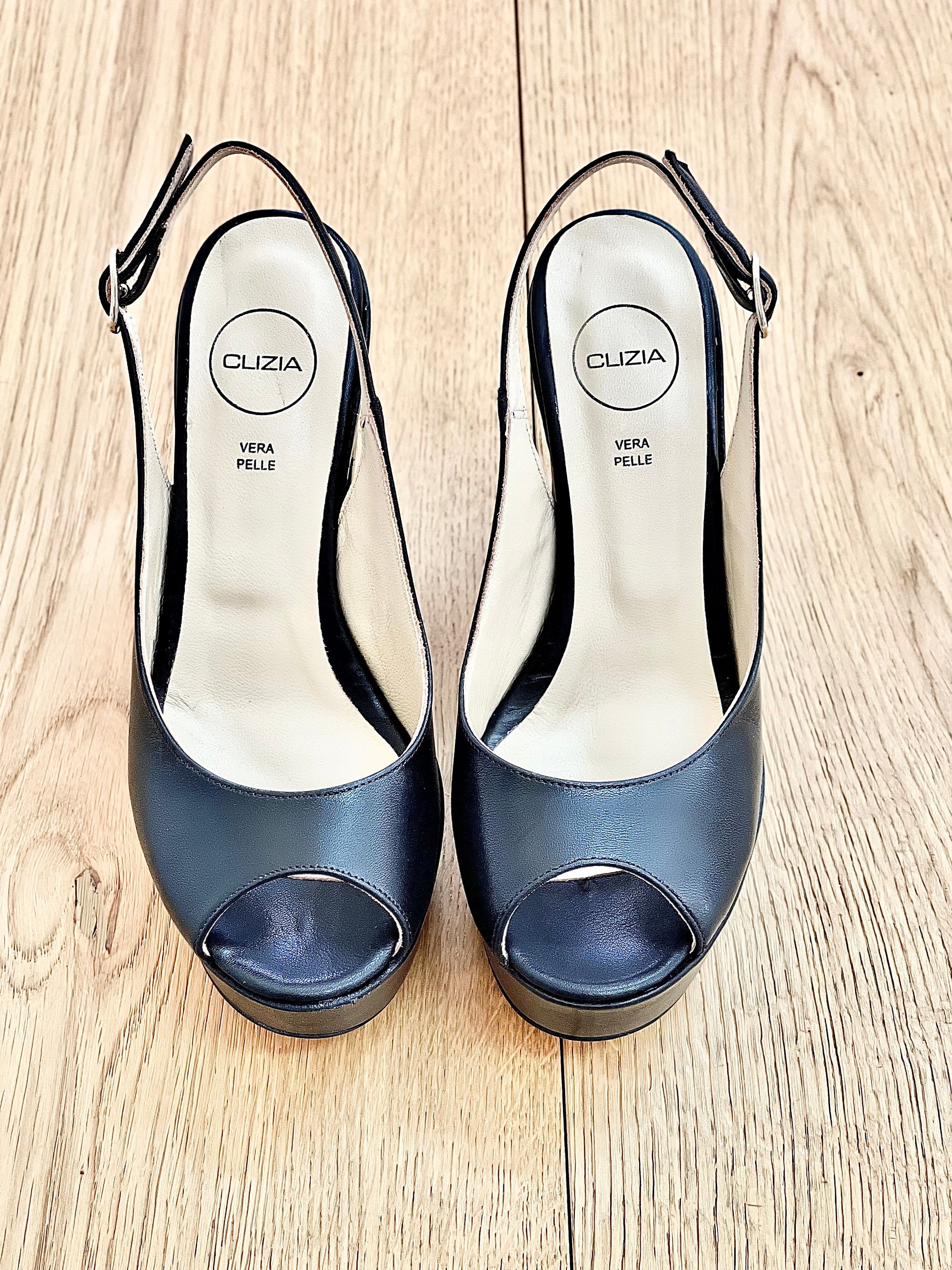 Ανοιχτά δερμάτινα πέδιλα με τακούνι 11,5 εκ. και πλατφόρμα 4 εκ.