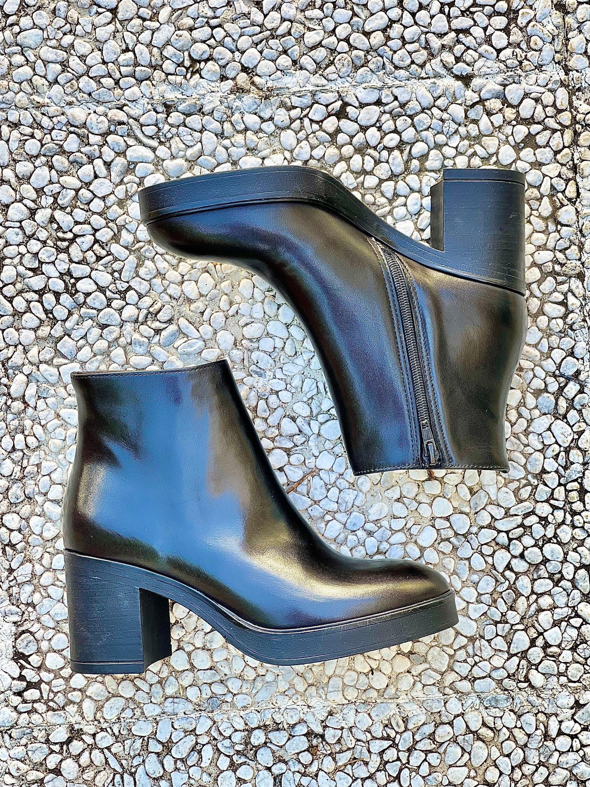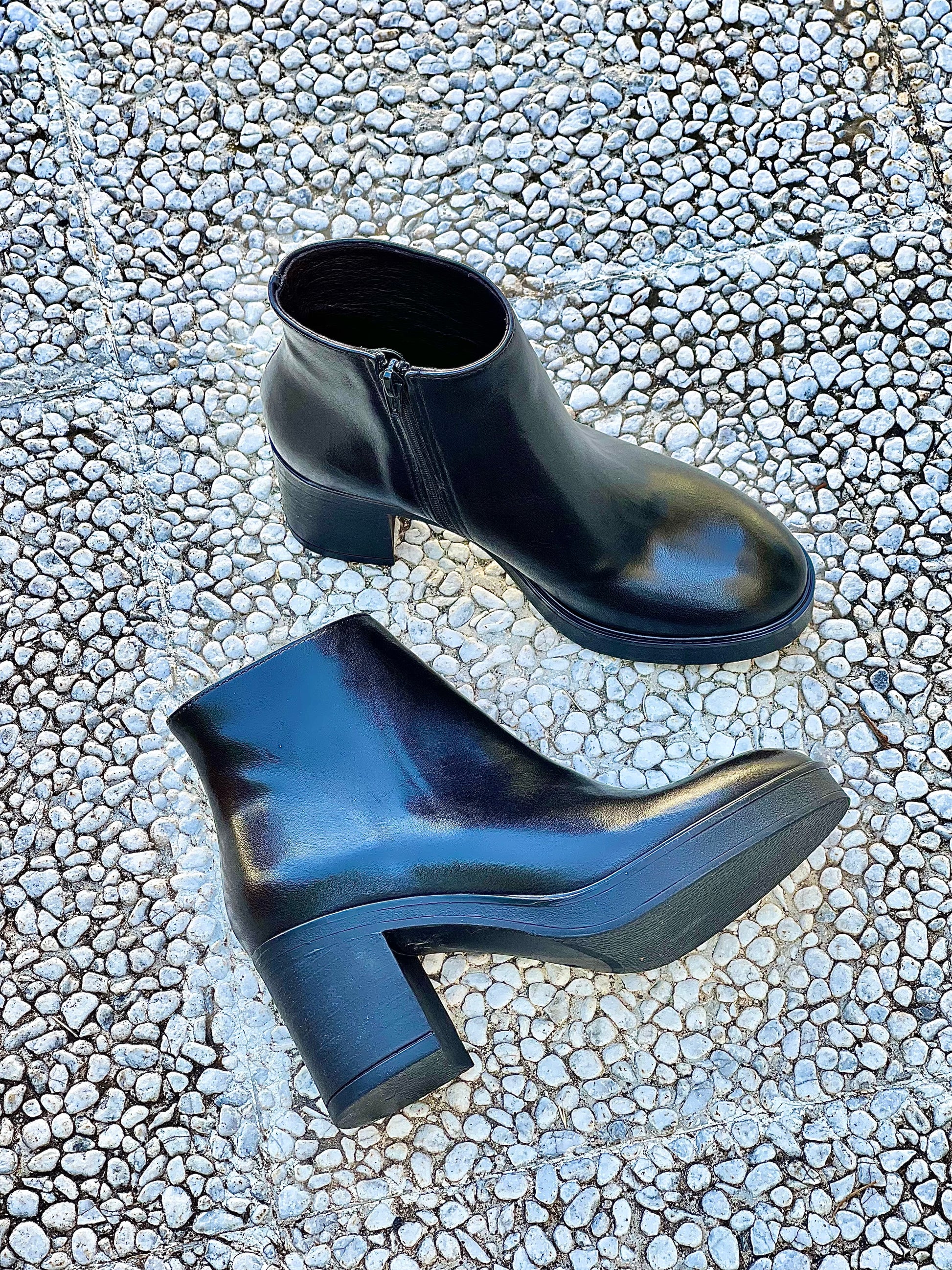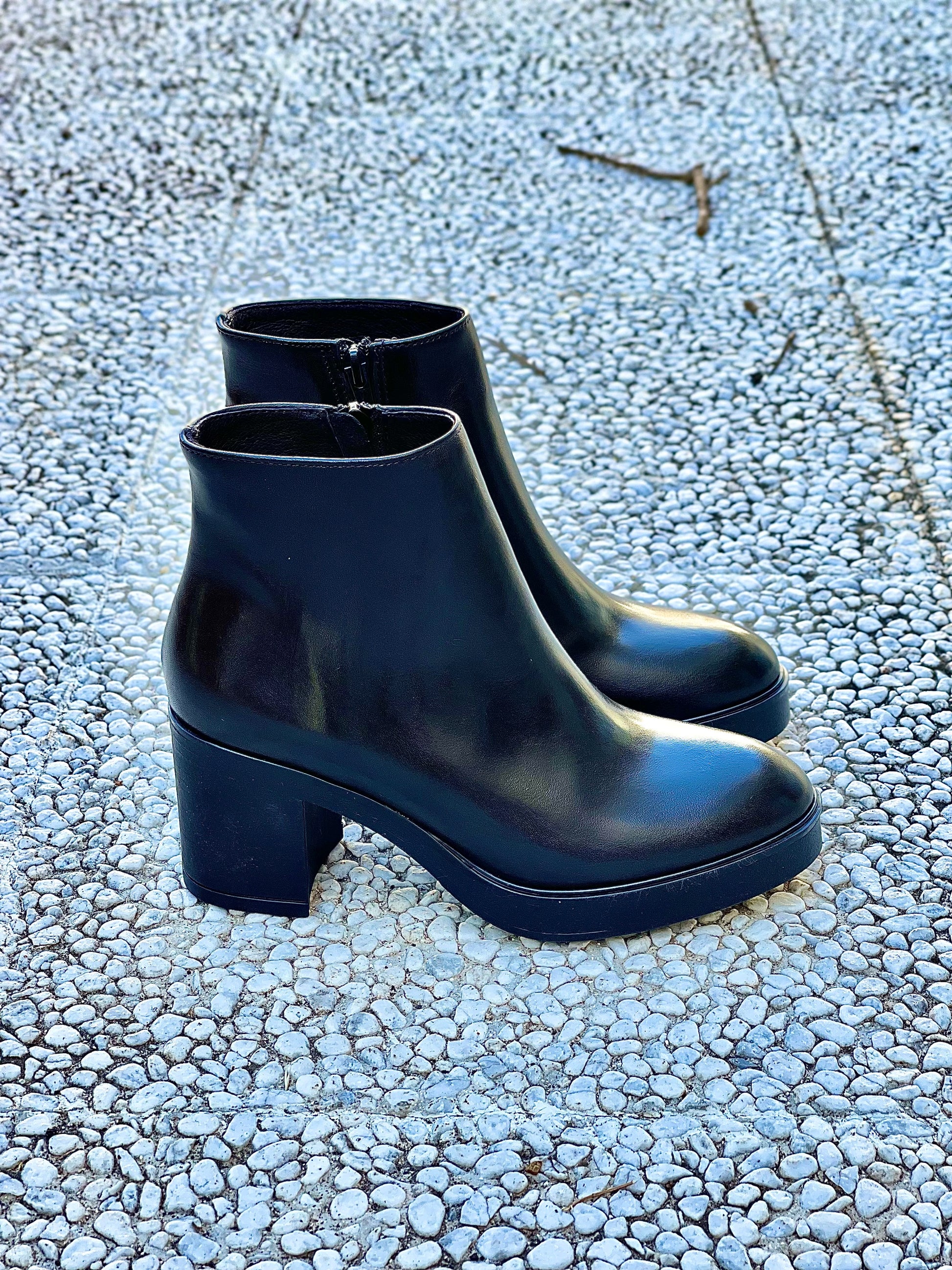 Μποτάκι από δέρμα με τακούνι 7 εκ. και πλατφόρμα 2 εκ.