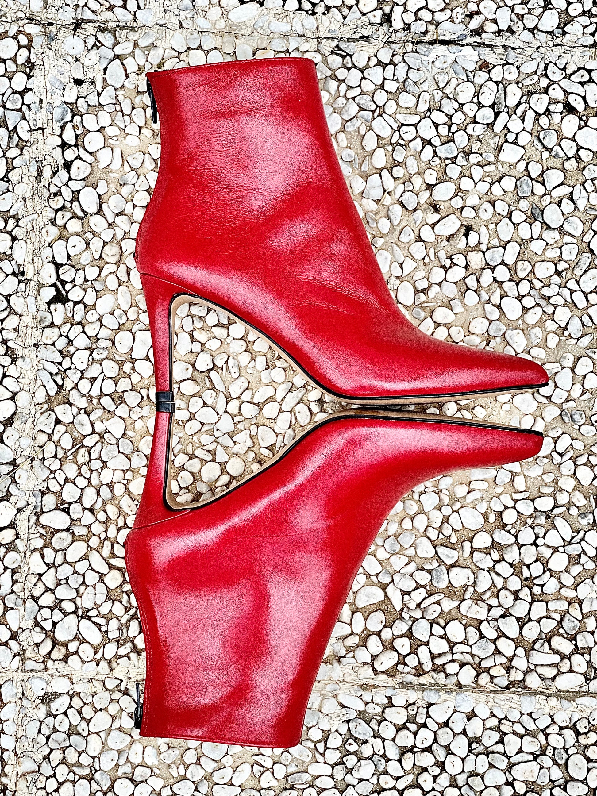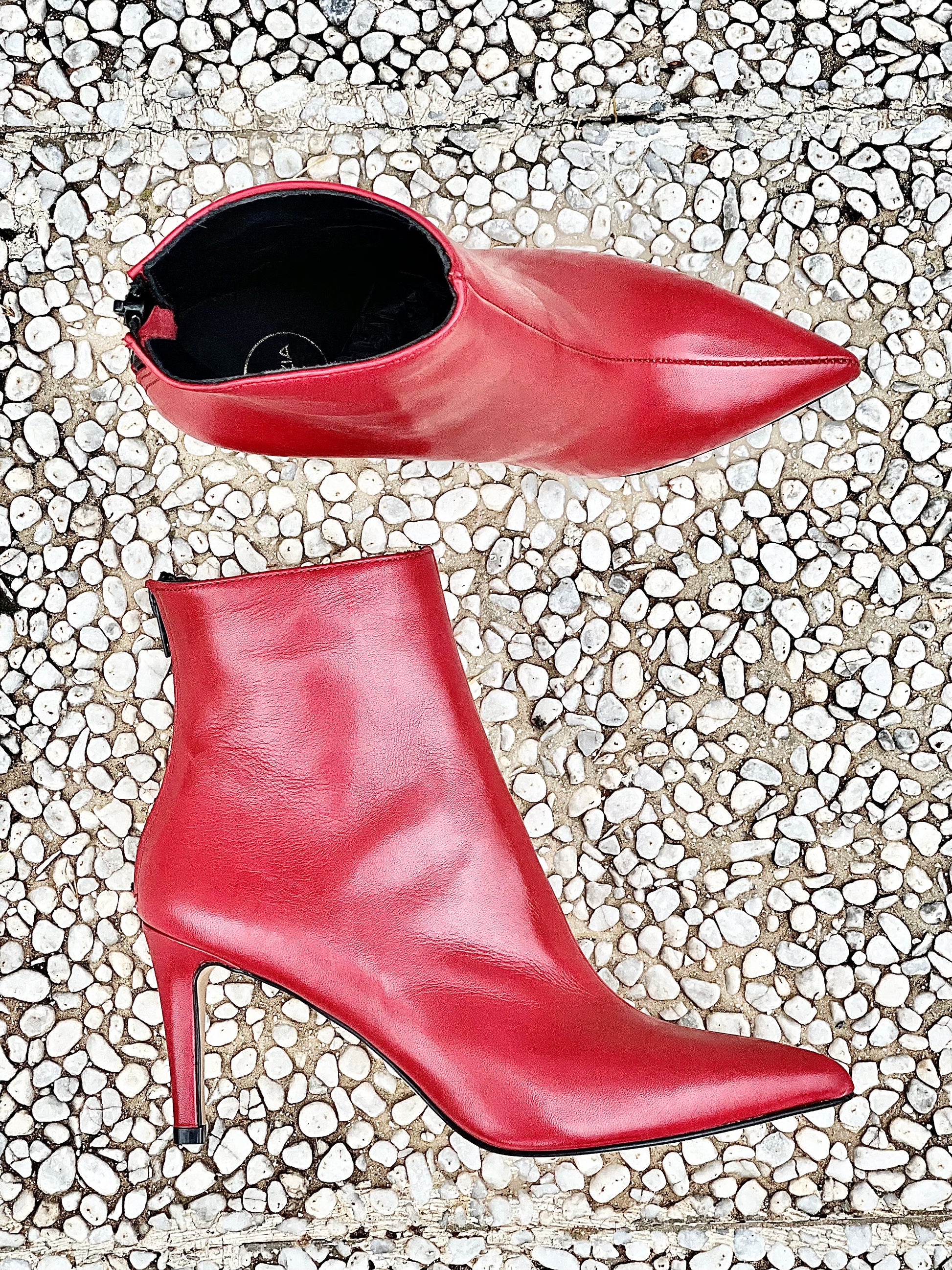 Μποτάκι με μυτερή μύτη από δέρμα, τακούνι στιλέτο και φερμουάρ στο πίσω μέρος.
