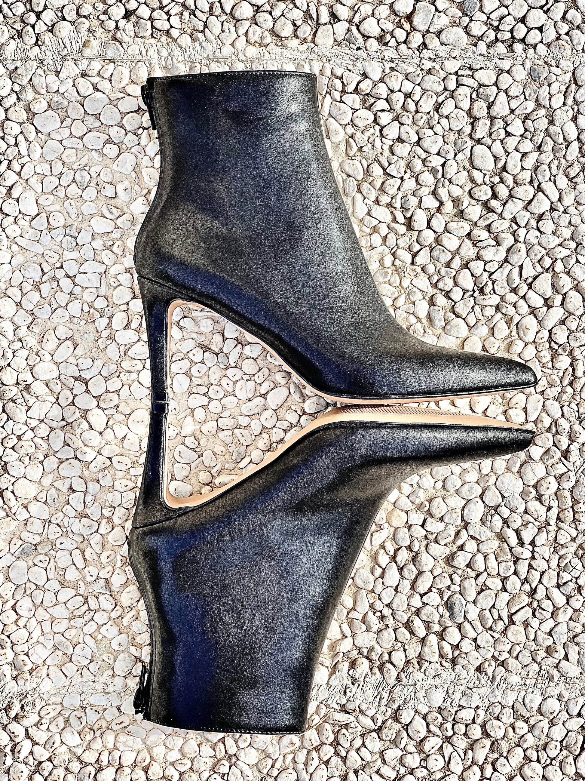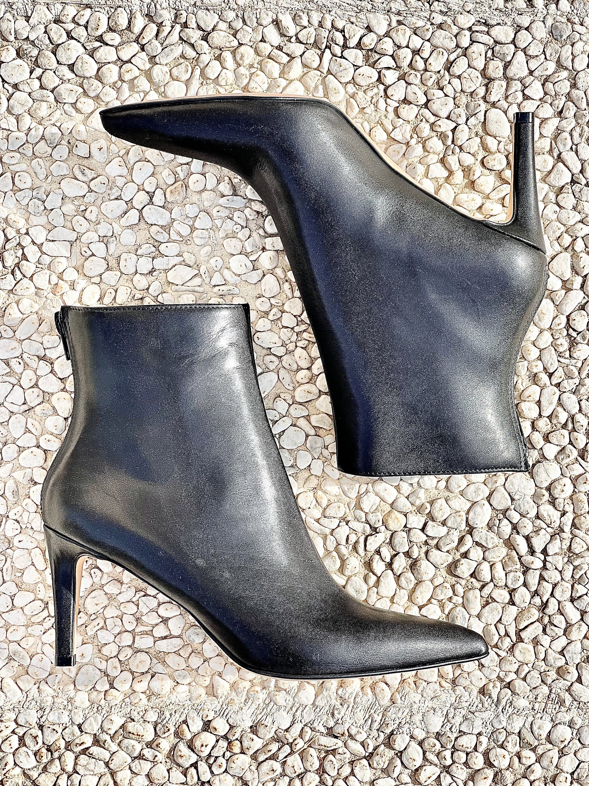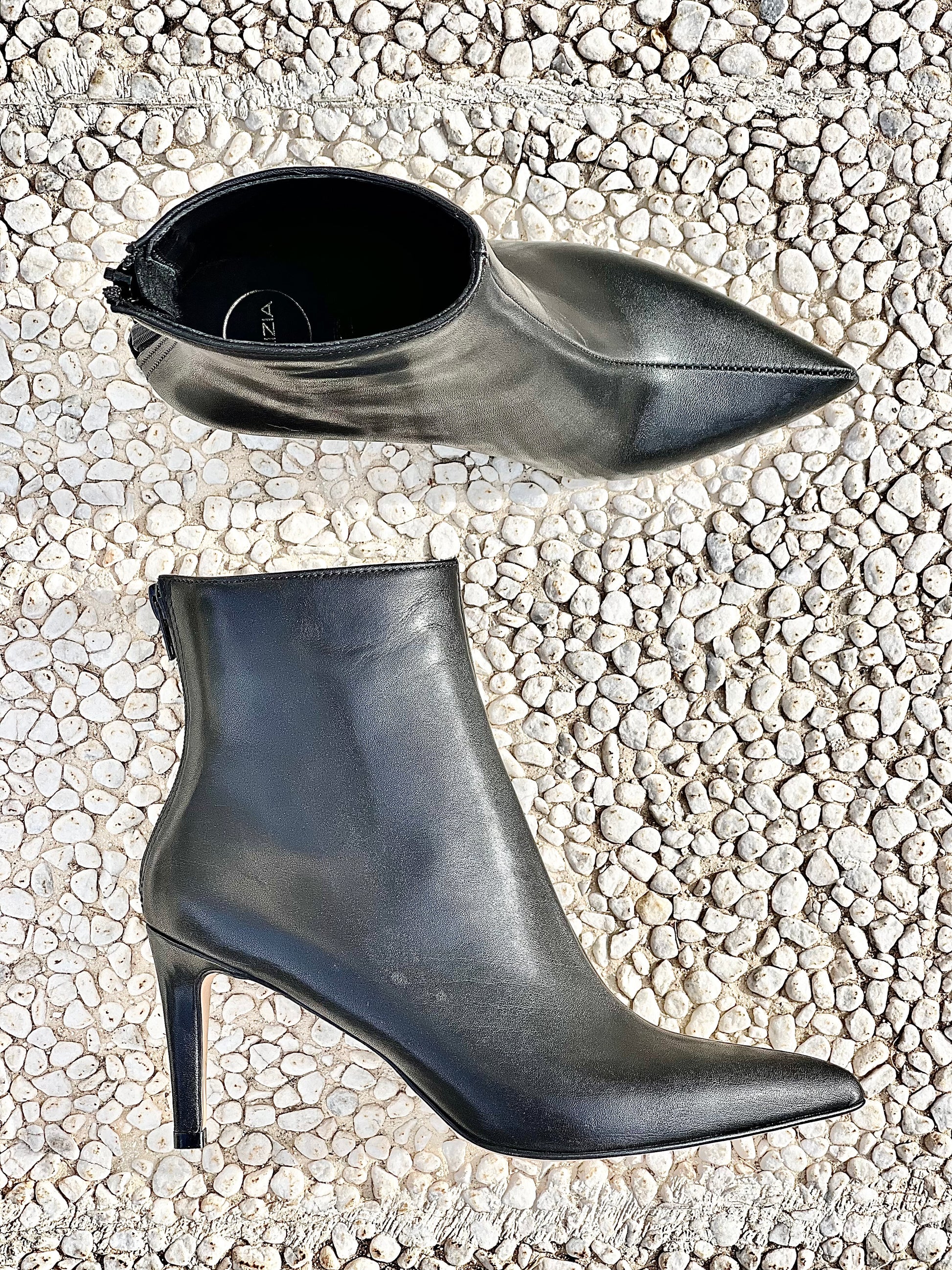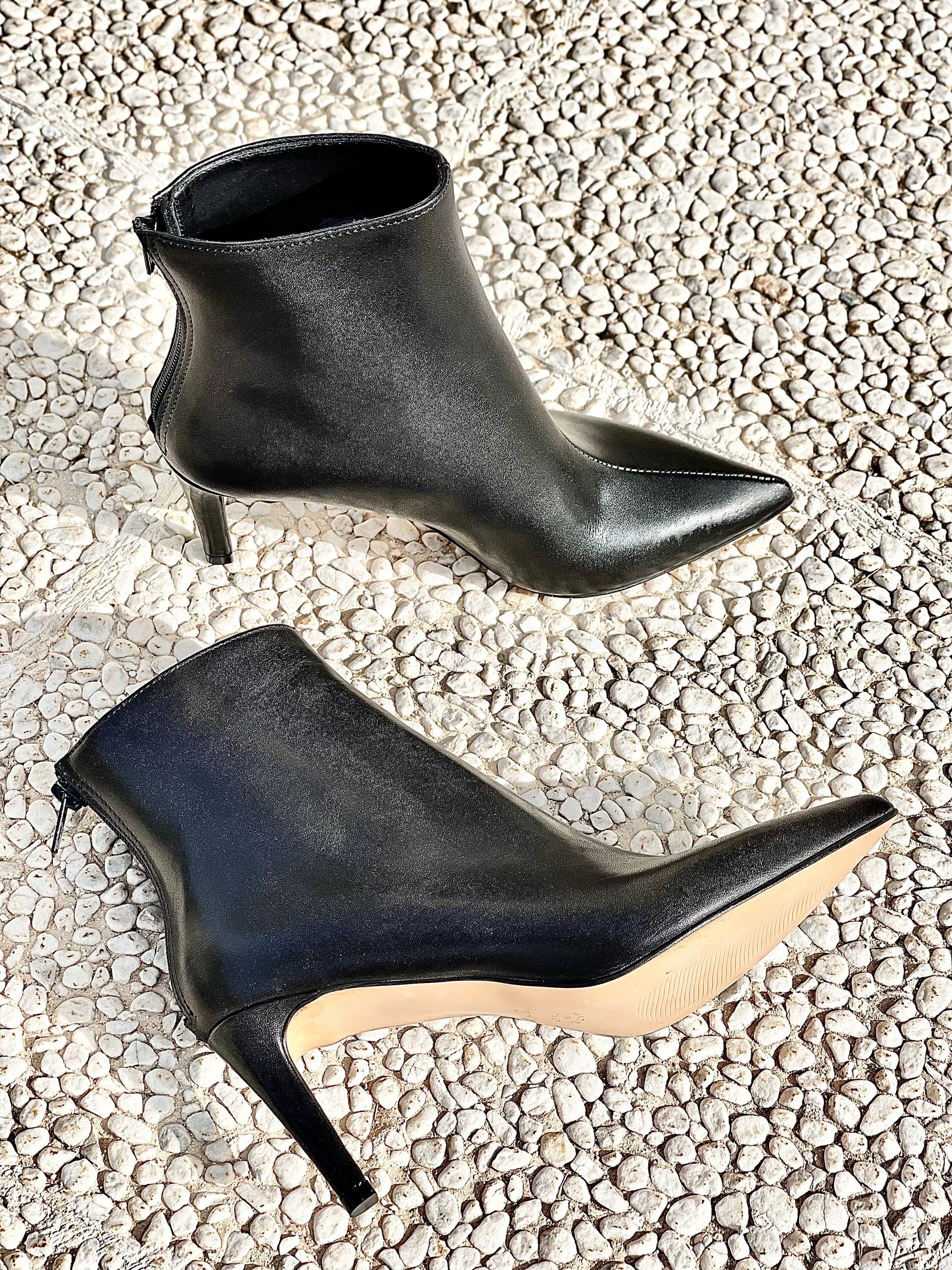 Μποτάκι με μυτερή μύτη από δέρμα, τακούνι στιλέτο και φερμουάρ στο πίσω μέρος.