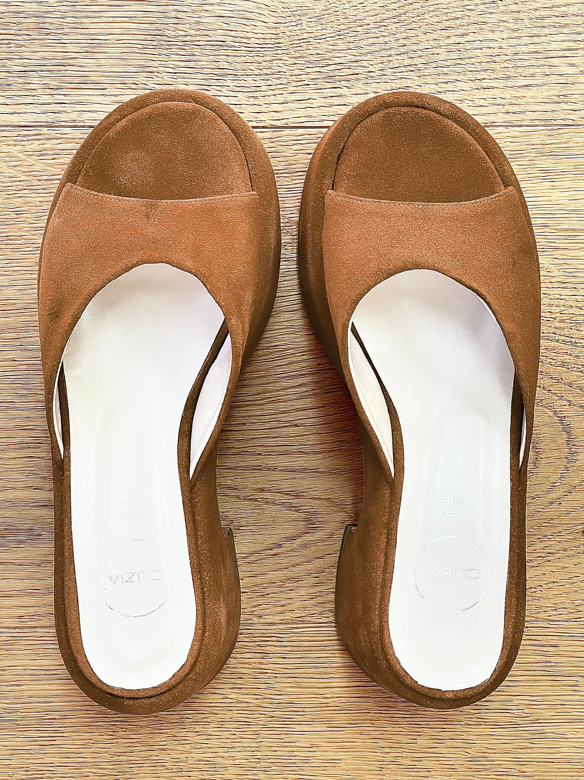 Σανδάλια μούλες με μεσαίο τακούνι και φαρδύ τακούνι.