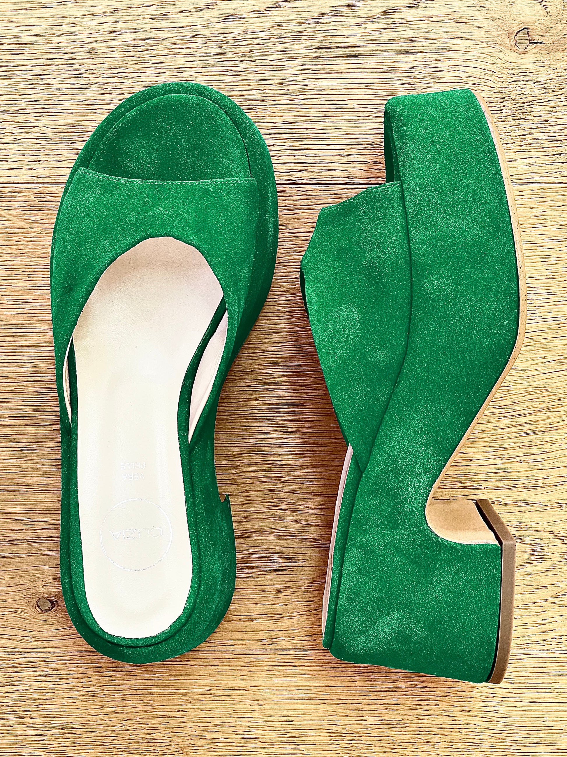 Σανδάλια μούλες με μεσαίο τακούνι και φαρδύ τακούνι.