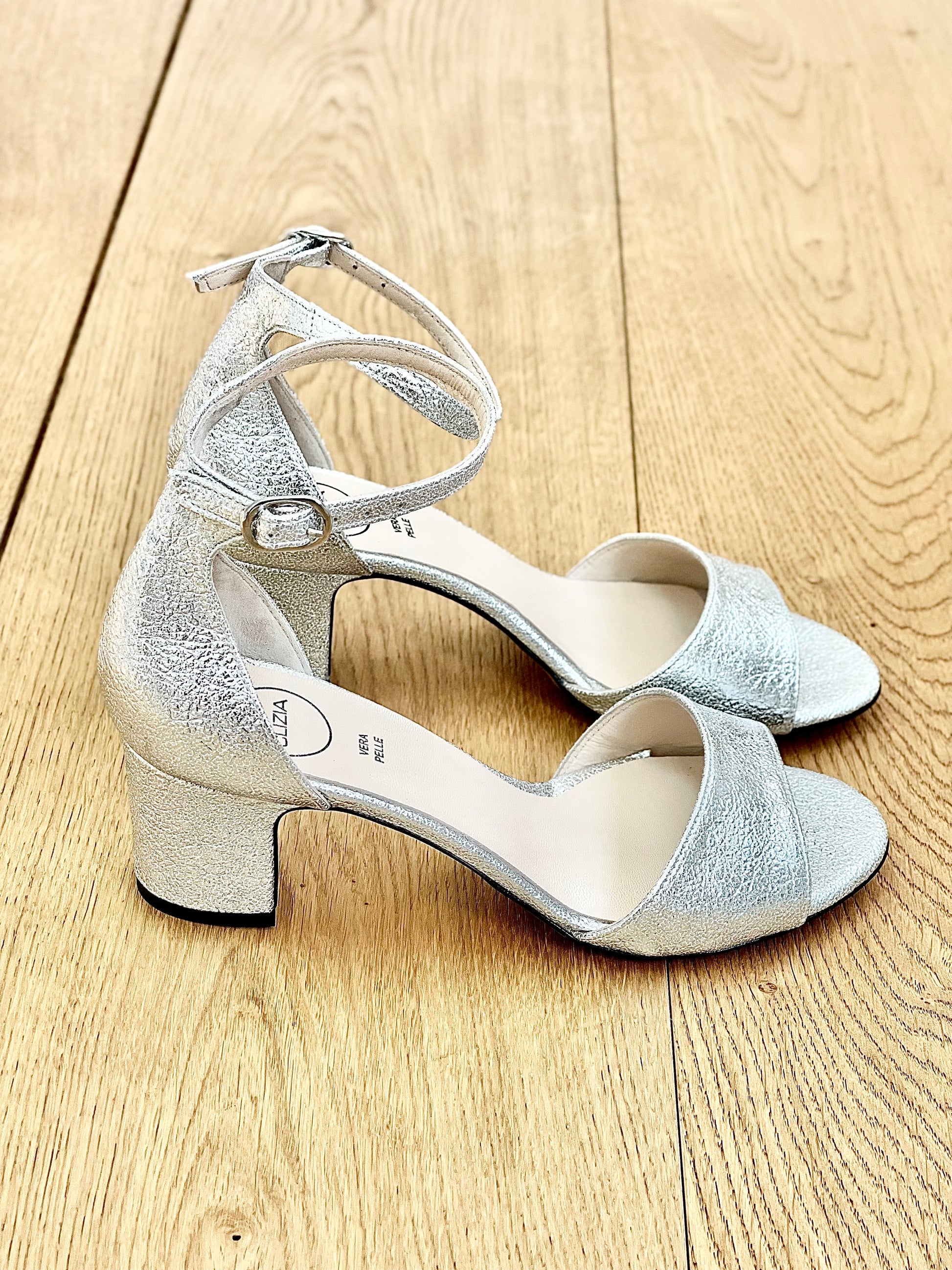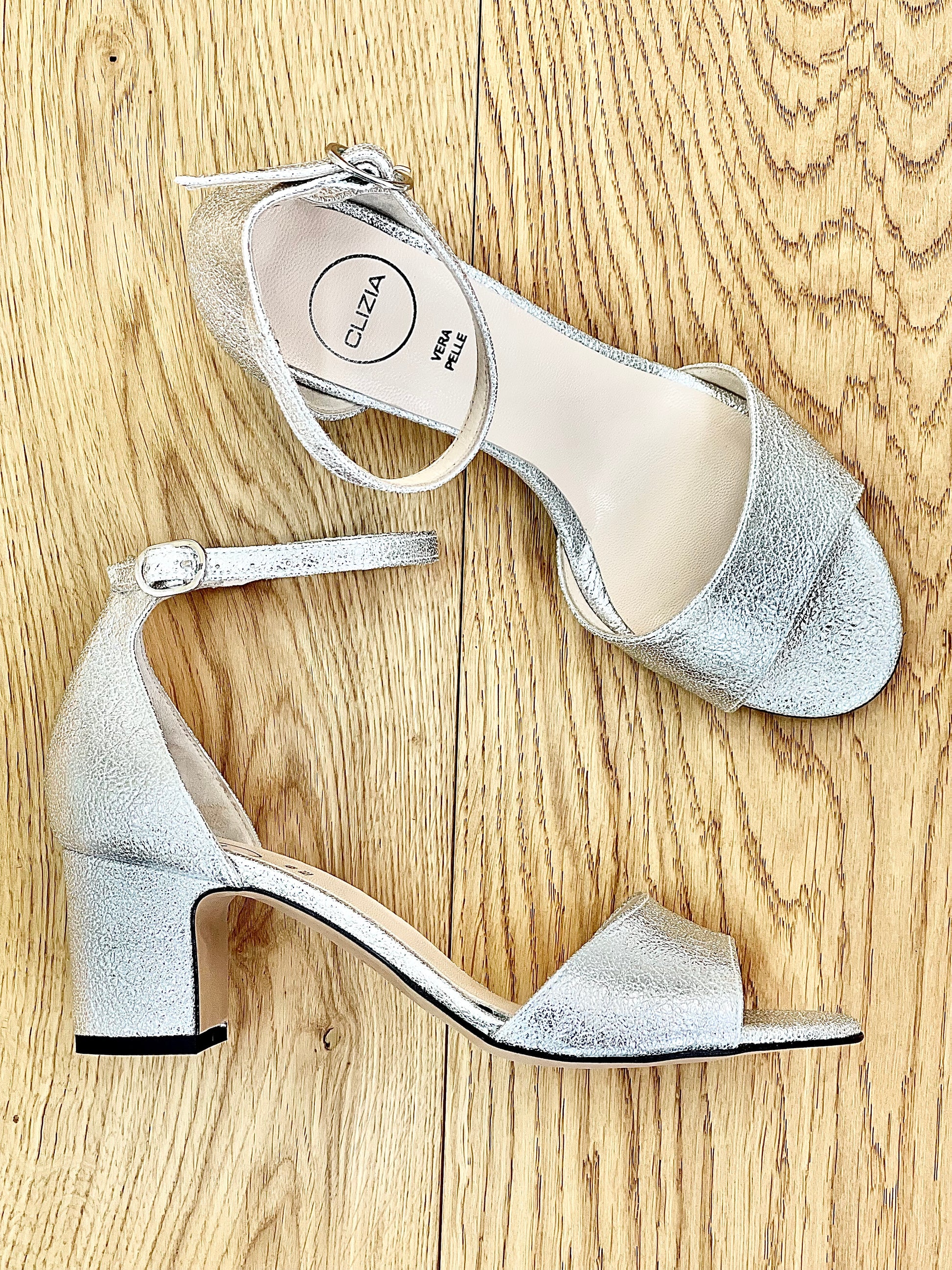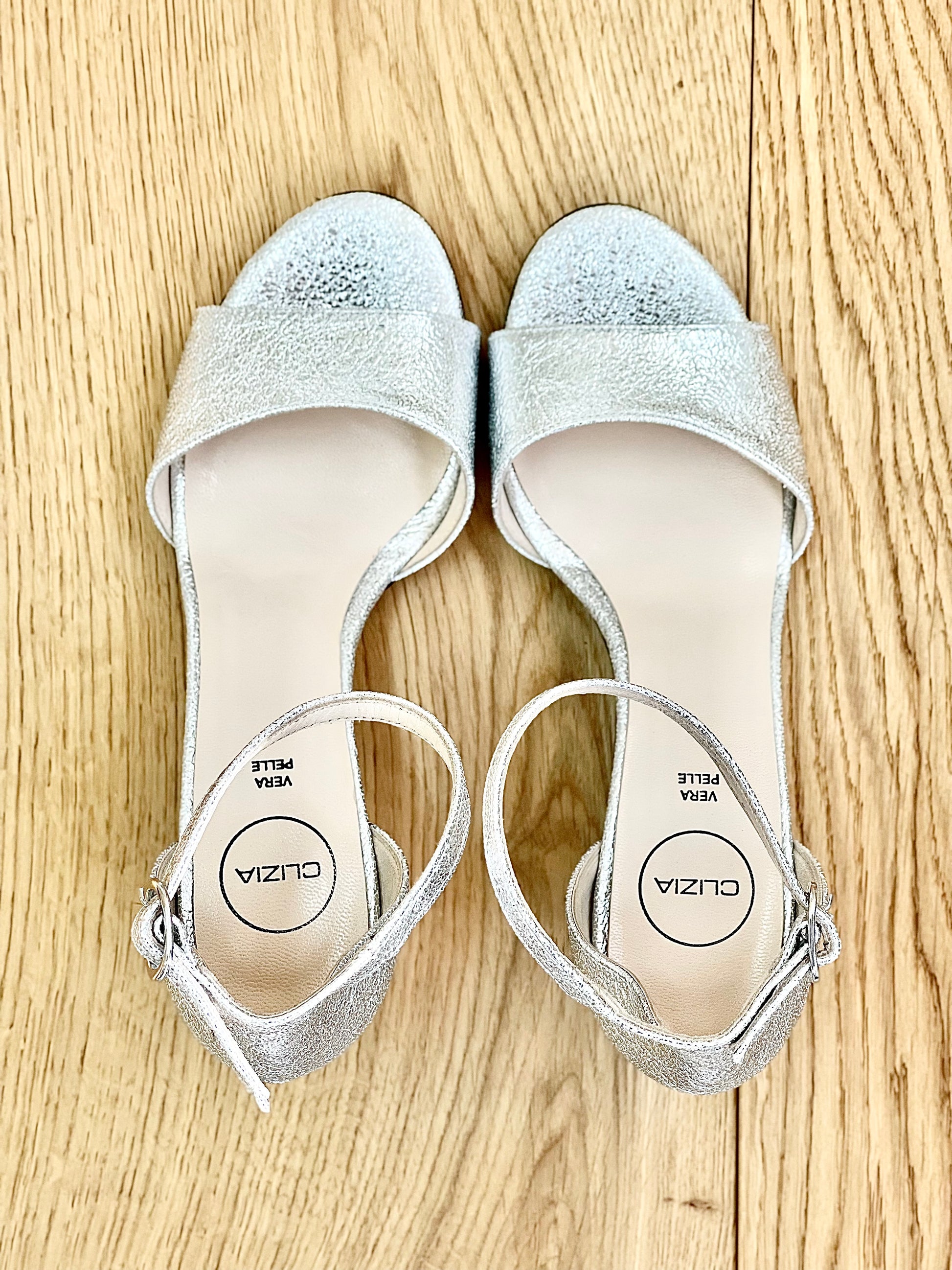 Σανδάλια με λουράκι και φτέρνα από πλαστικό υλικό και φαρδύ τακούνι.