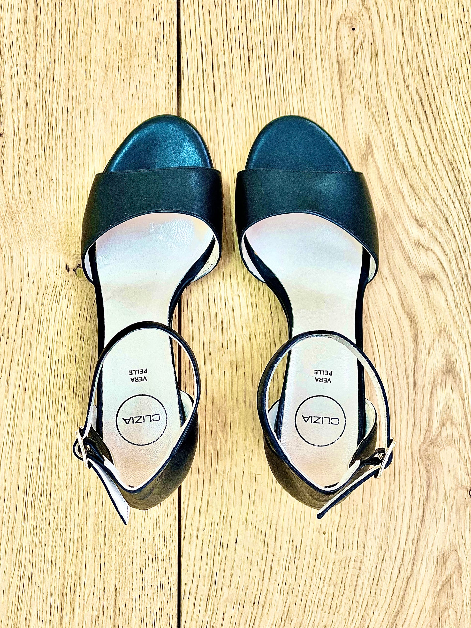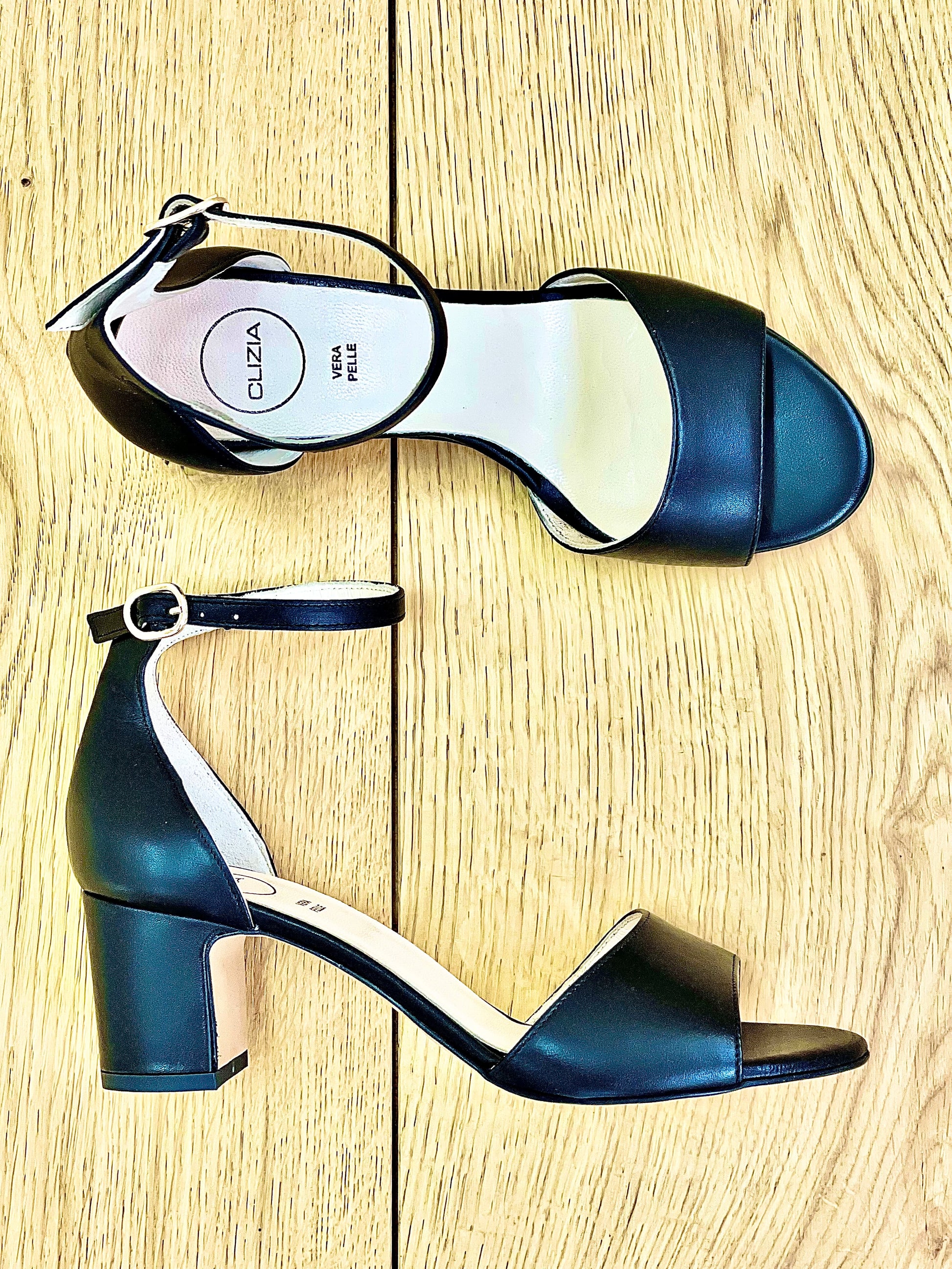 Σανδάλια με λουράκι και τακούνι από δέρμα με φαρδύ τακούνι.