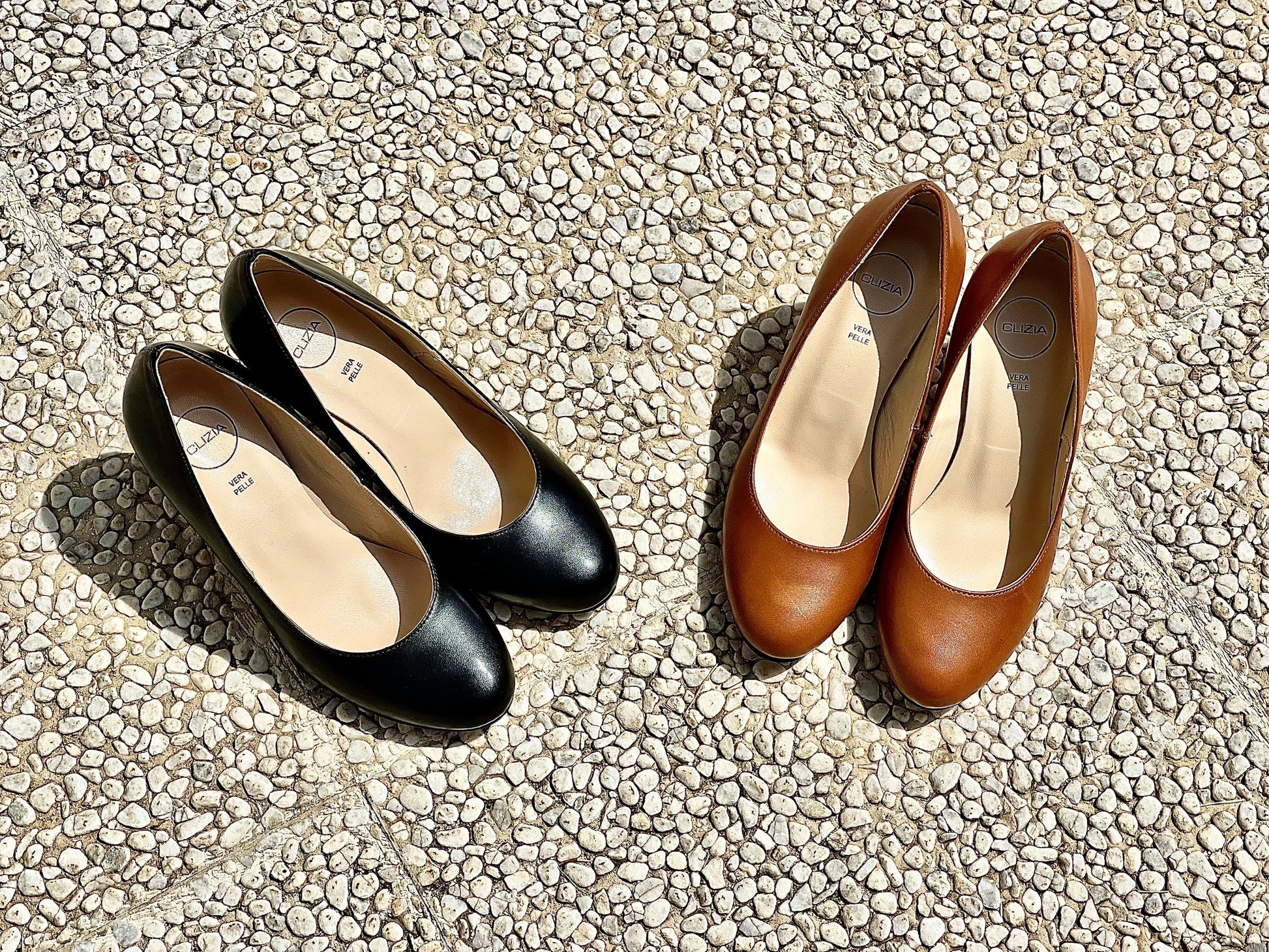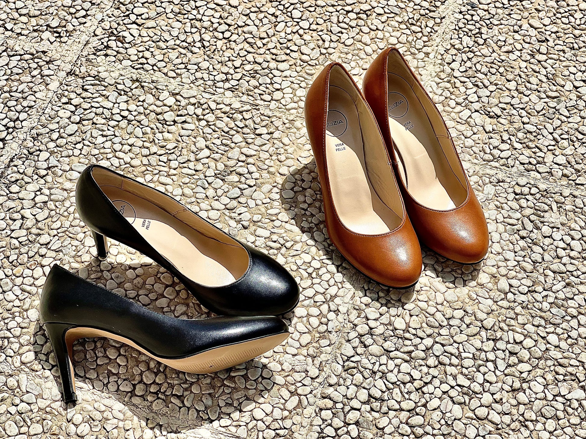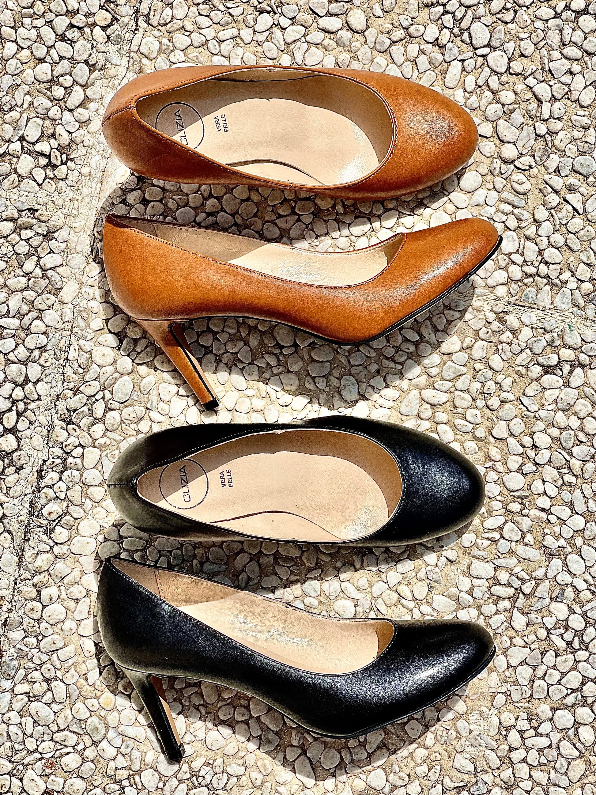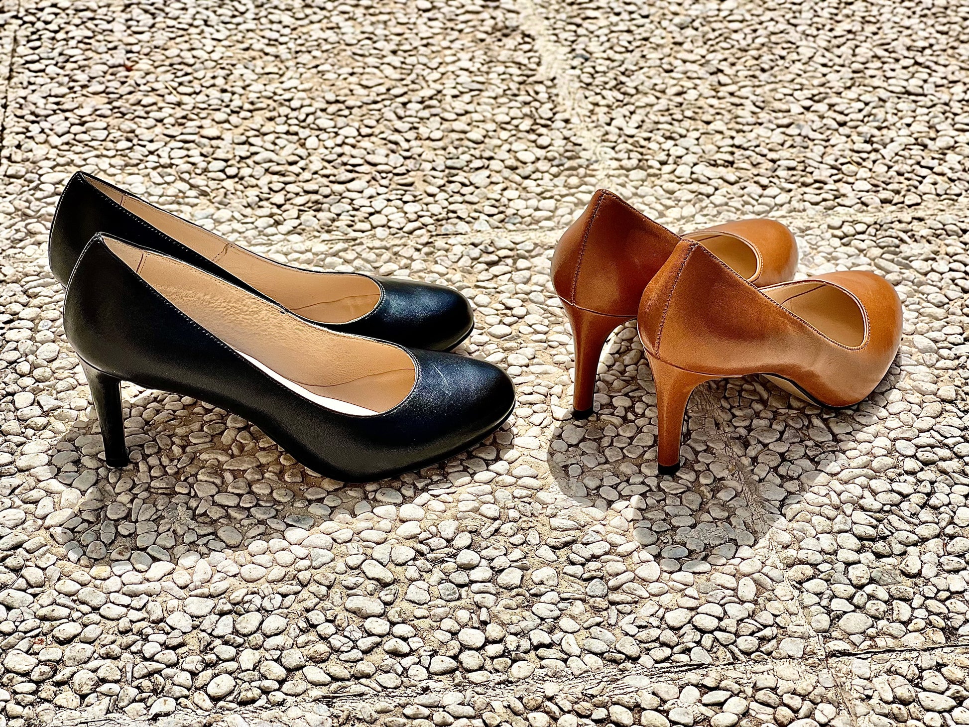 Γόβες με στρογγυλή μύτη από δέρμα, τακούνι 7,5 εκ.