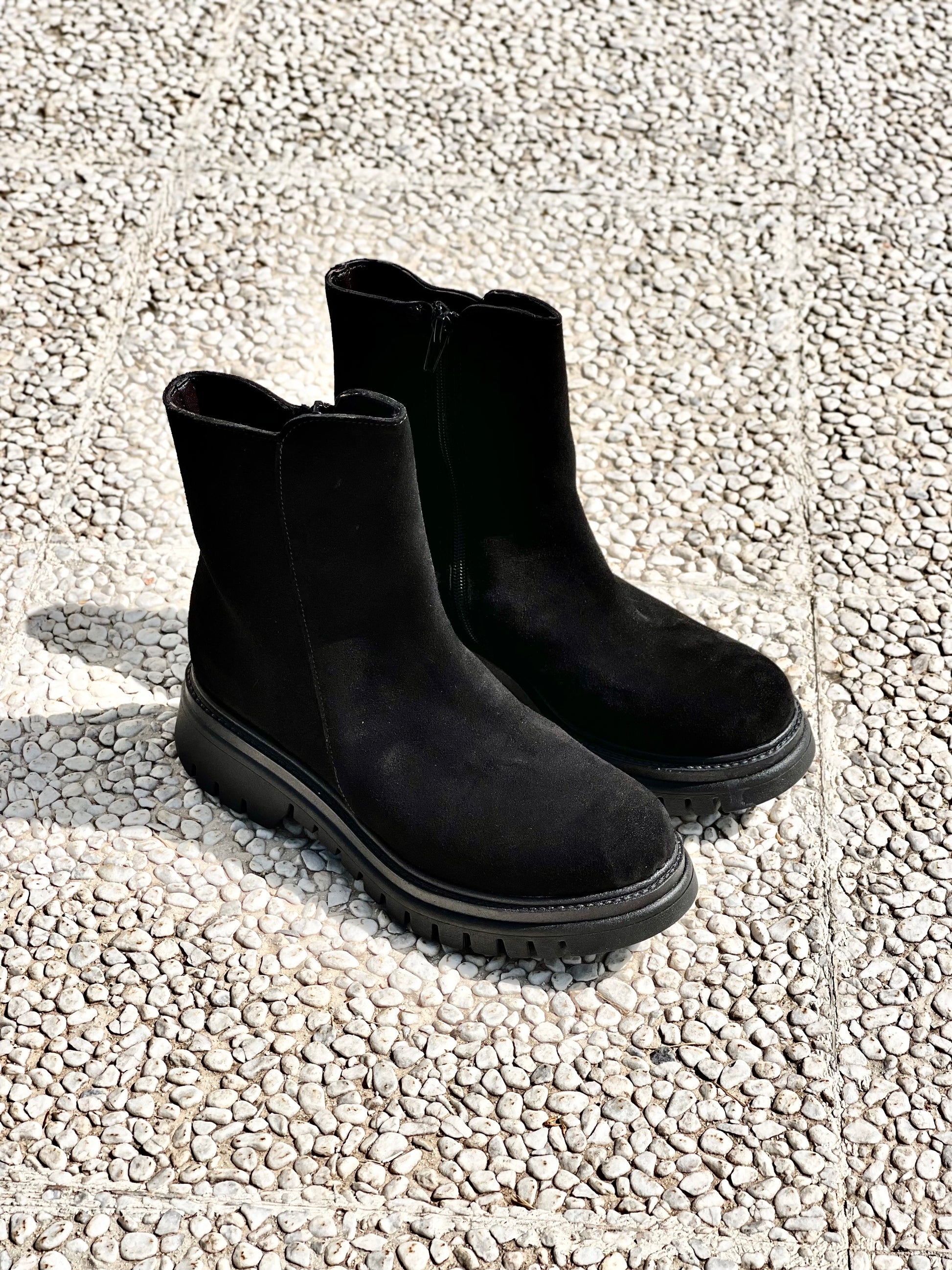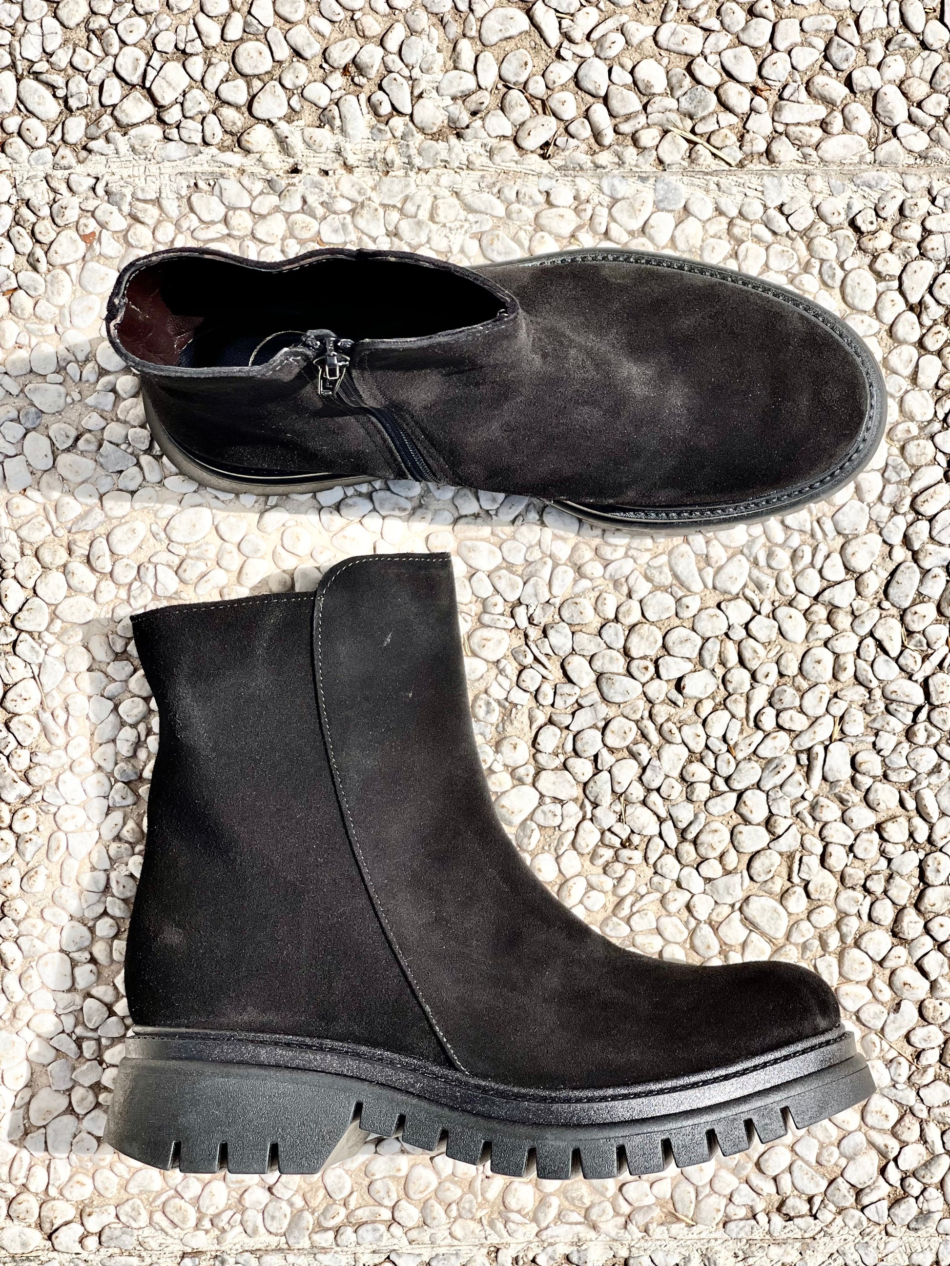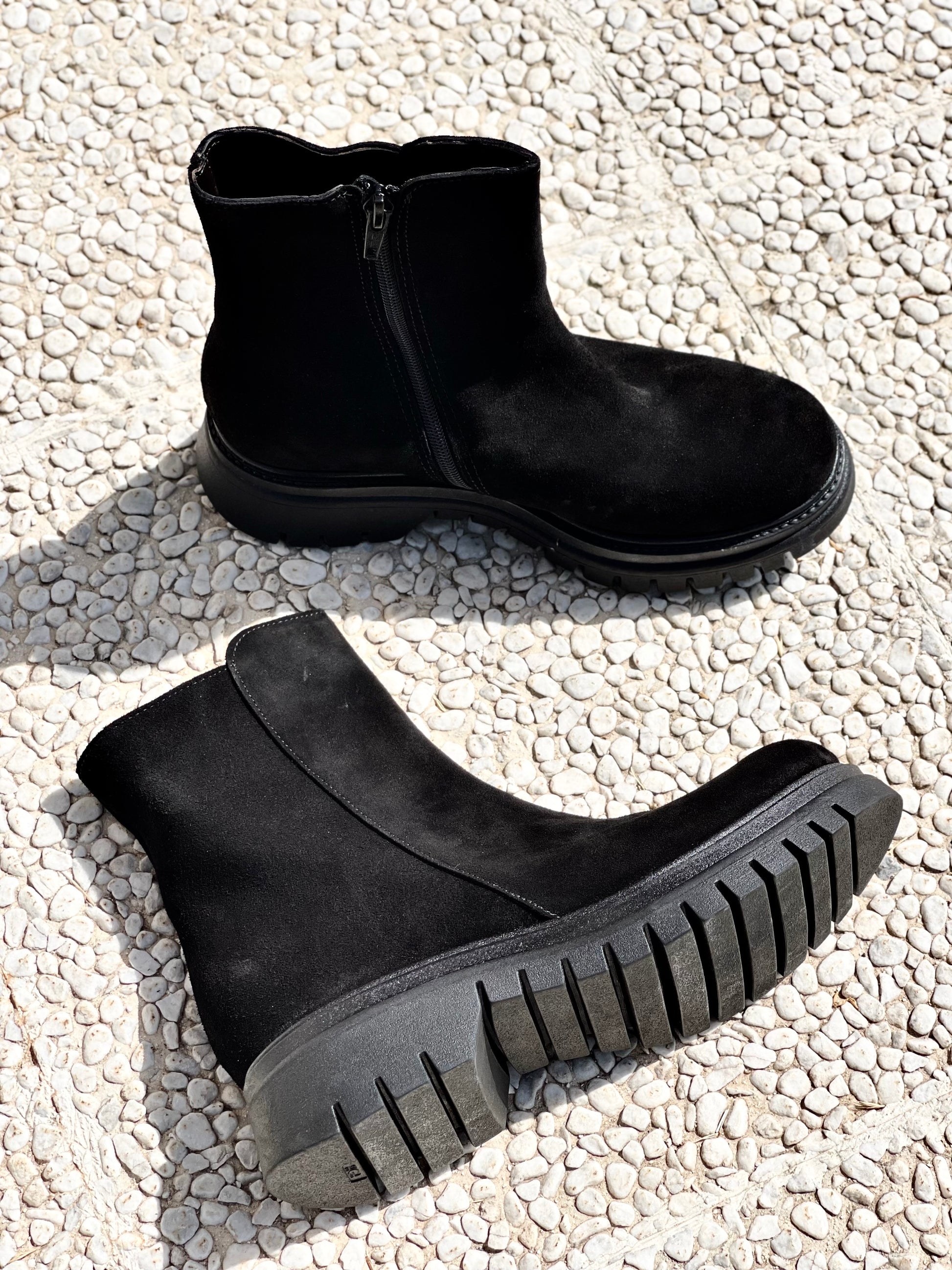 Μποτάκι με εσωτερικό φερμουάρ από σουέτ δέρμα, τακούνι 3 εκ.