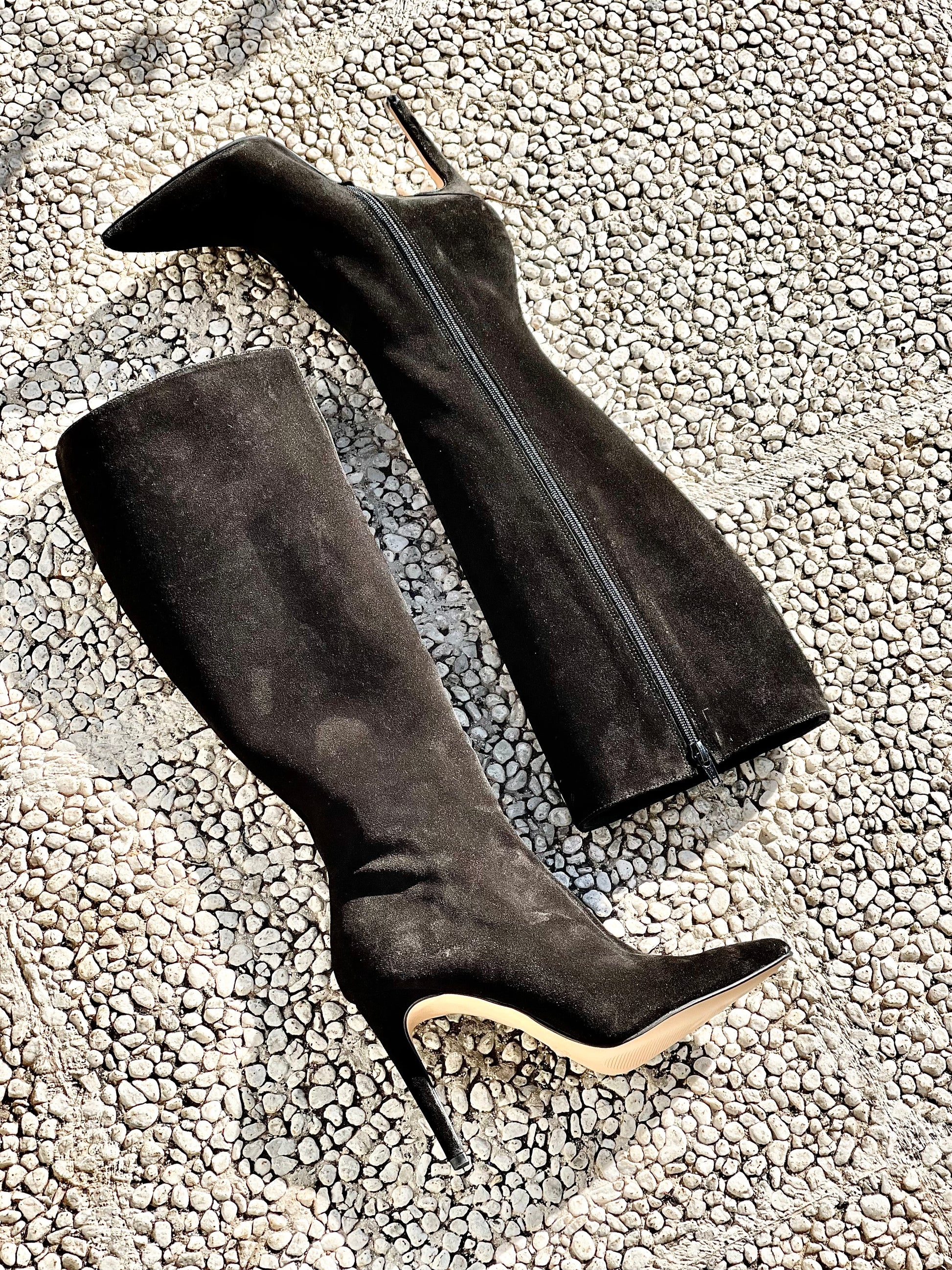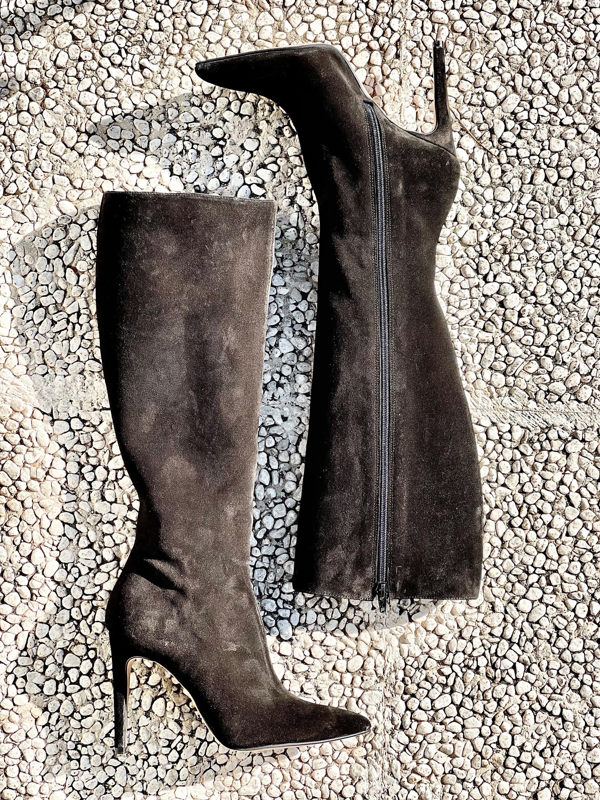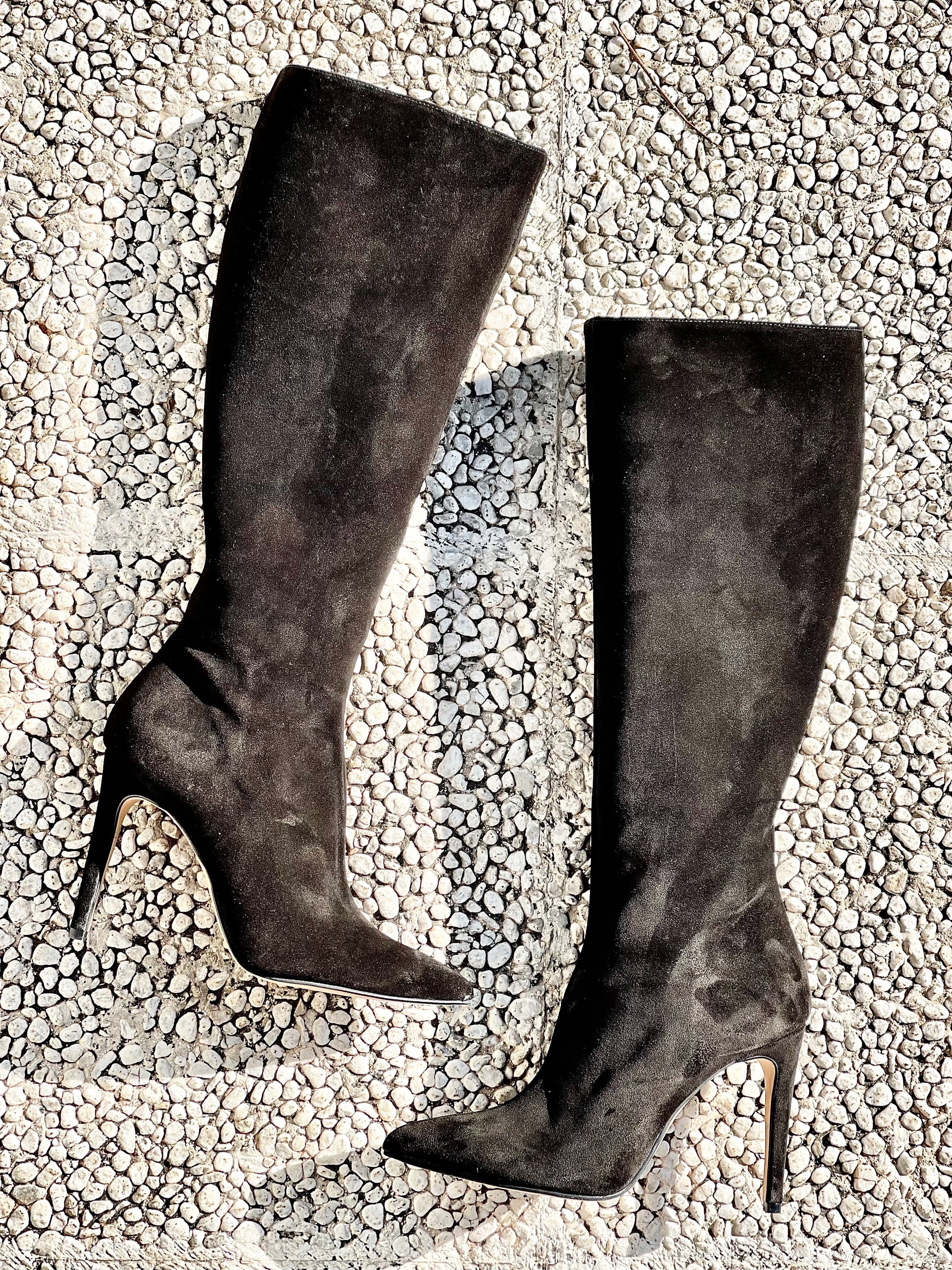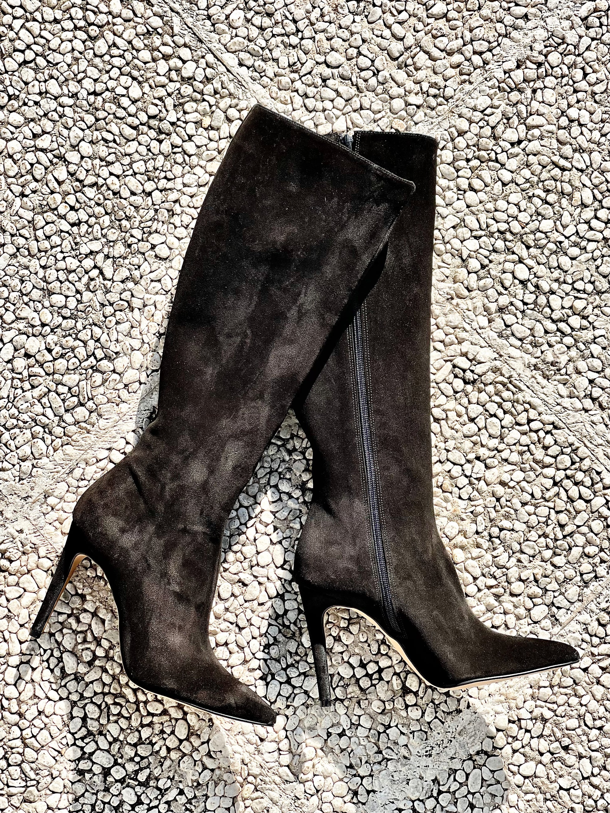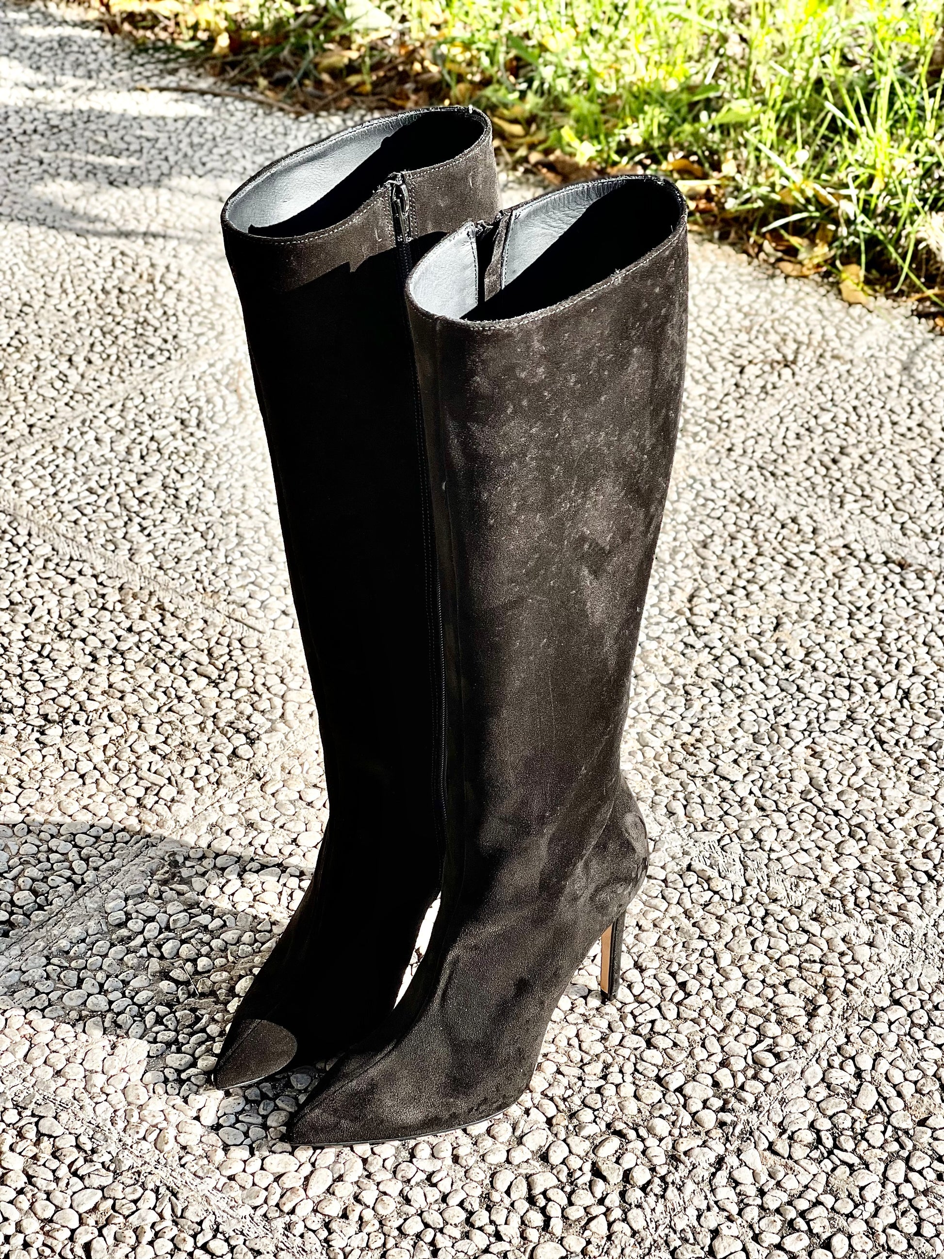 Μπότες με μυτερή μύτη από καμηλό δέρμα και τακούνι 10 εκ.