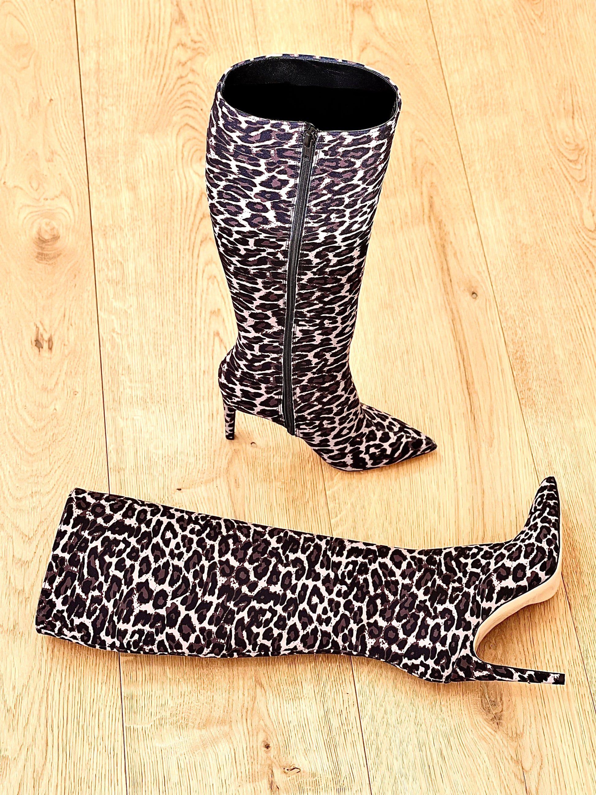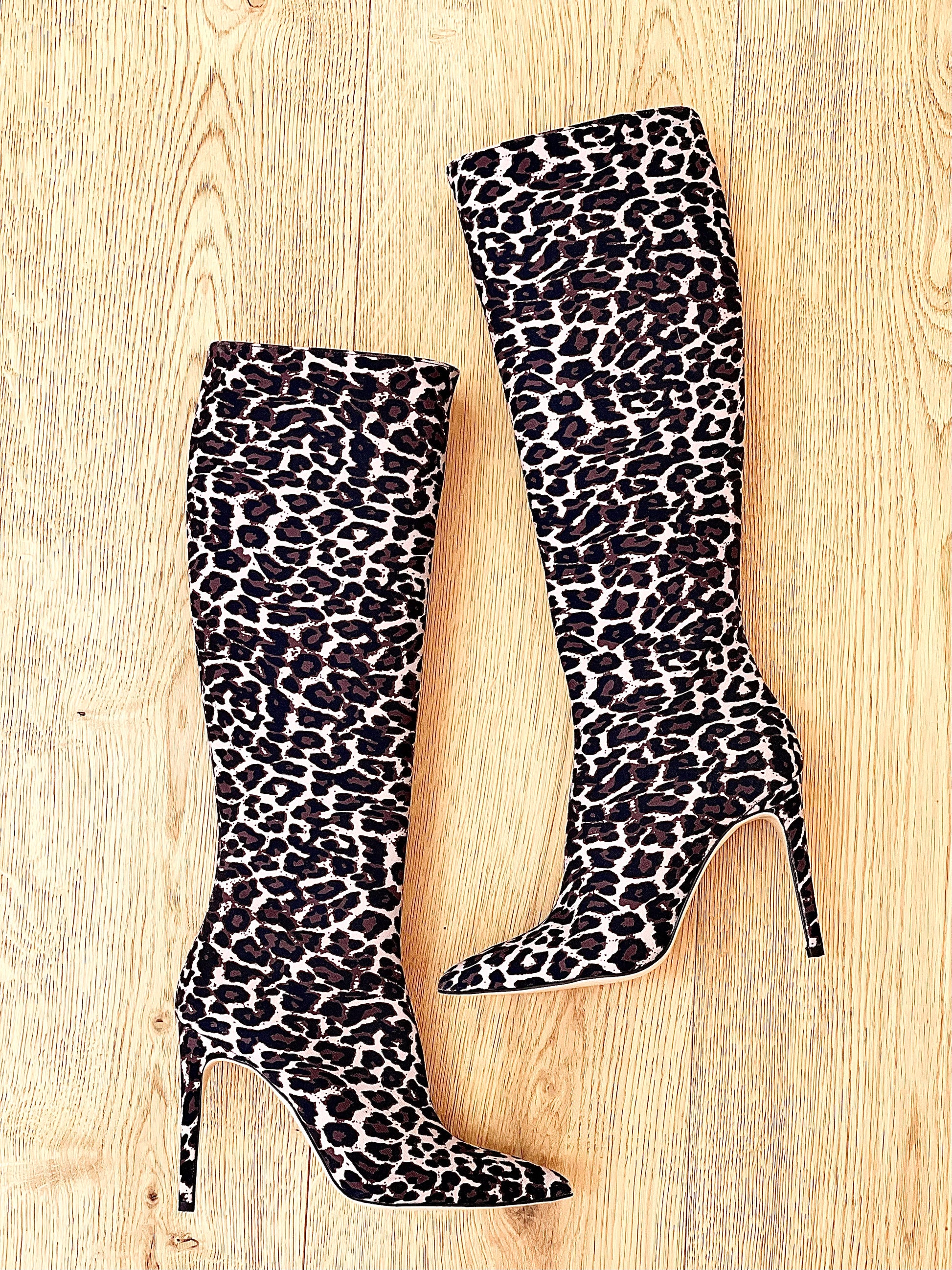 Μπότες με ψηλό τακούνι 10 εκ. και animalier σχέδιο.