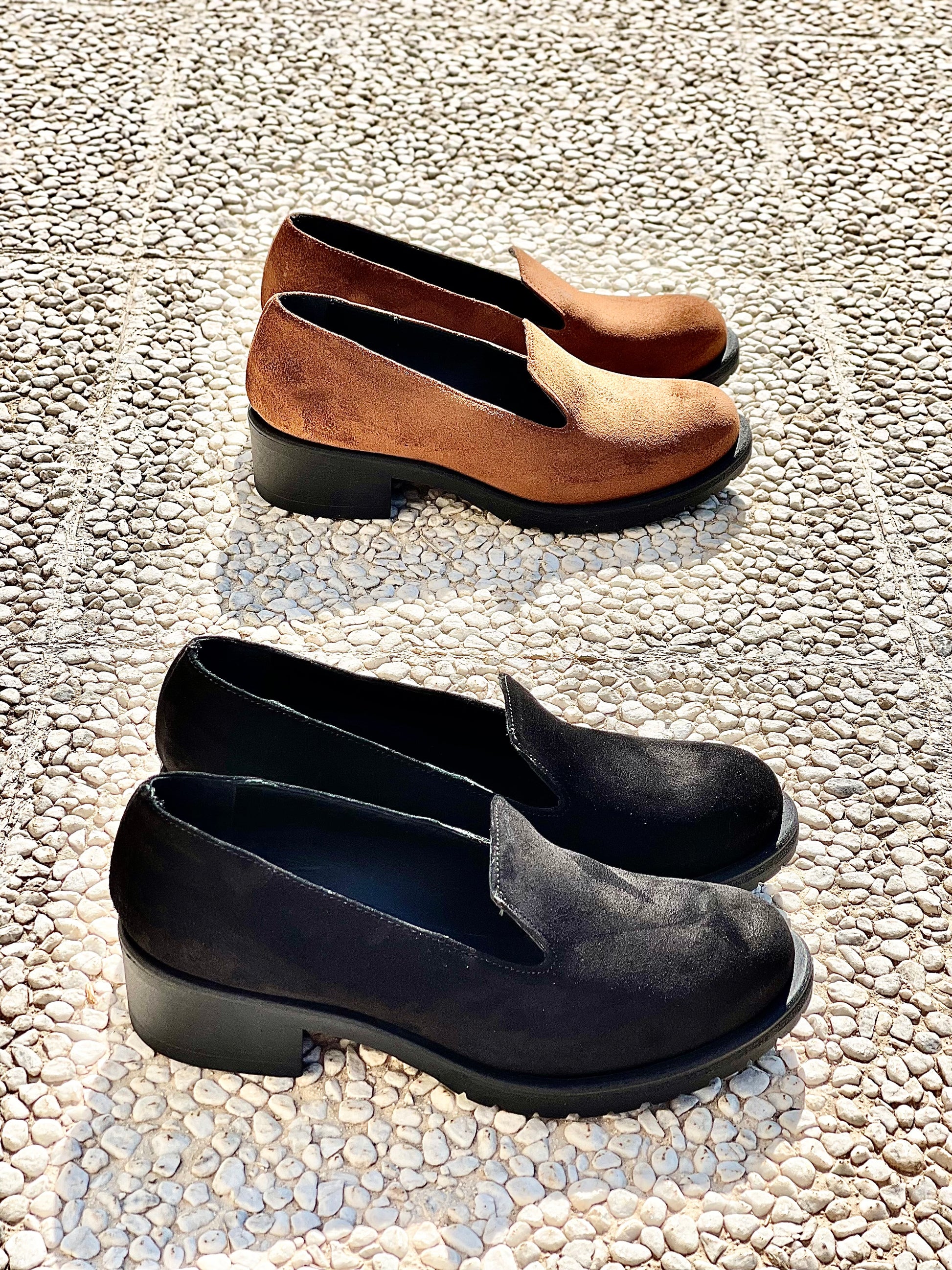 Σαγιονάρες από καμηλό δέρμα με τακούνι 3 εκατοστά.