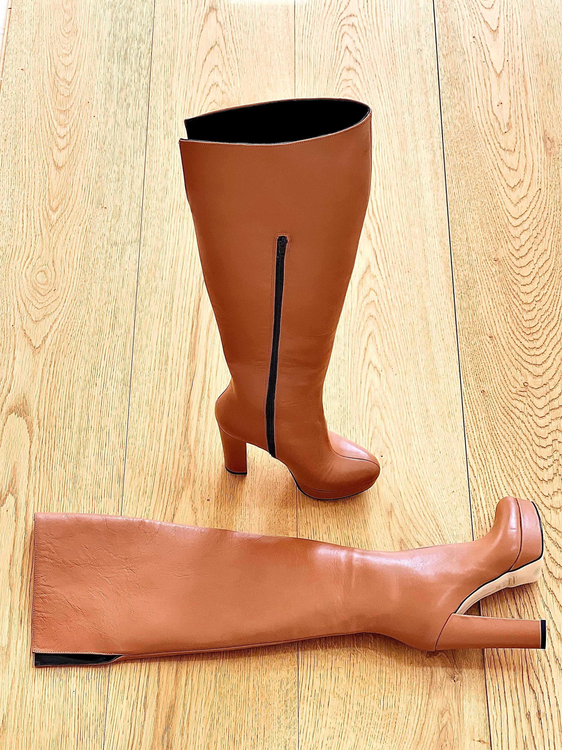Μπότες πάνω από το γόνατο με στρογγυλή μύτη, φαρδύ τακούνι και πλατφόρμα.