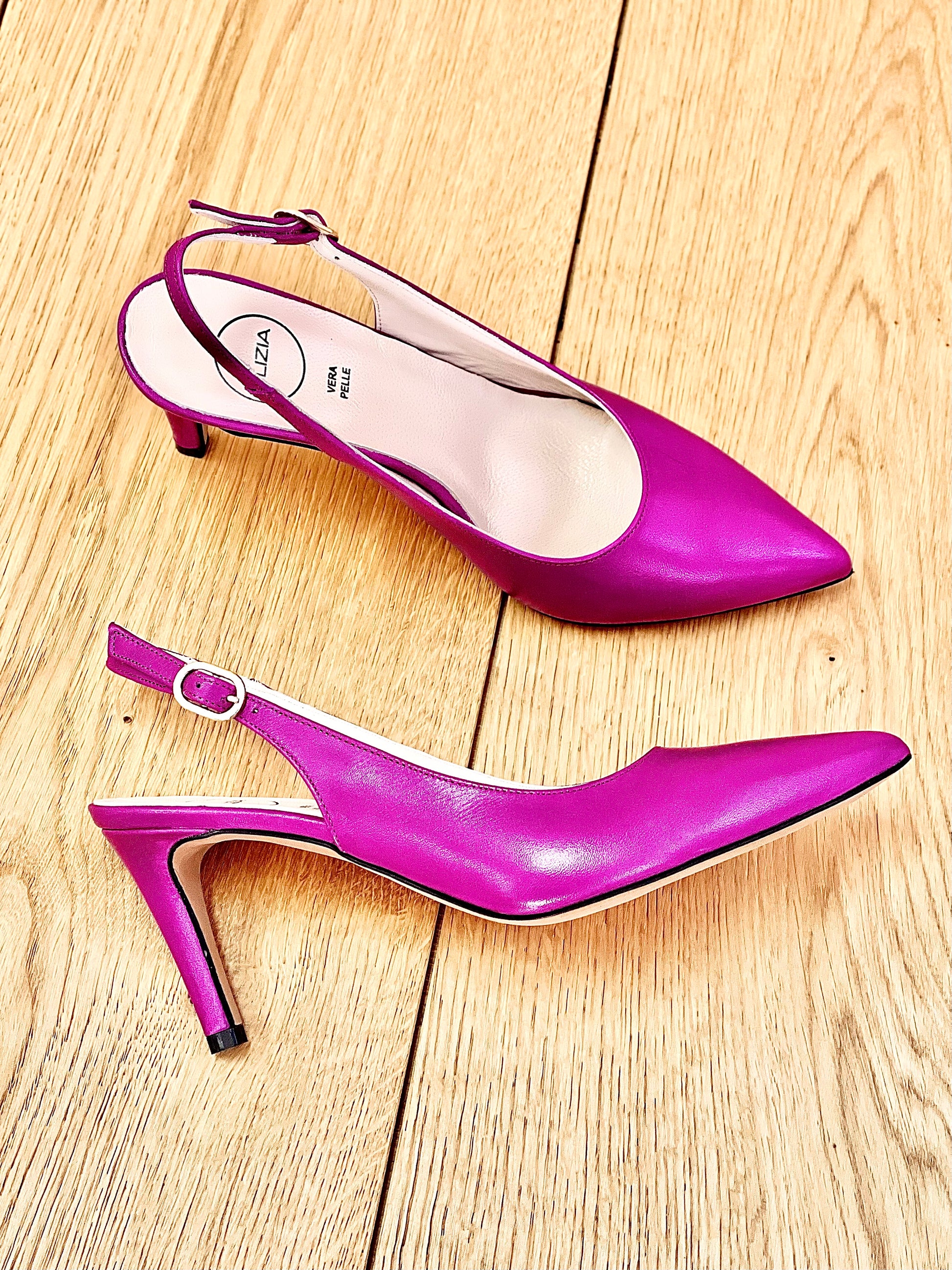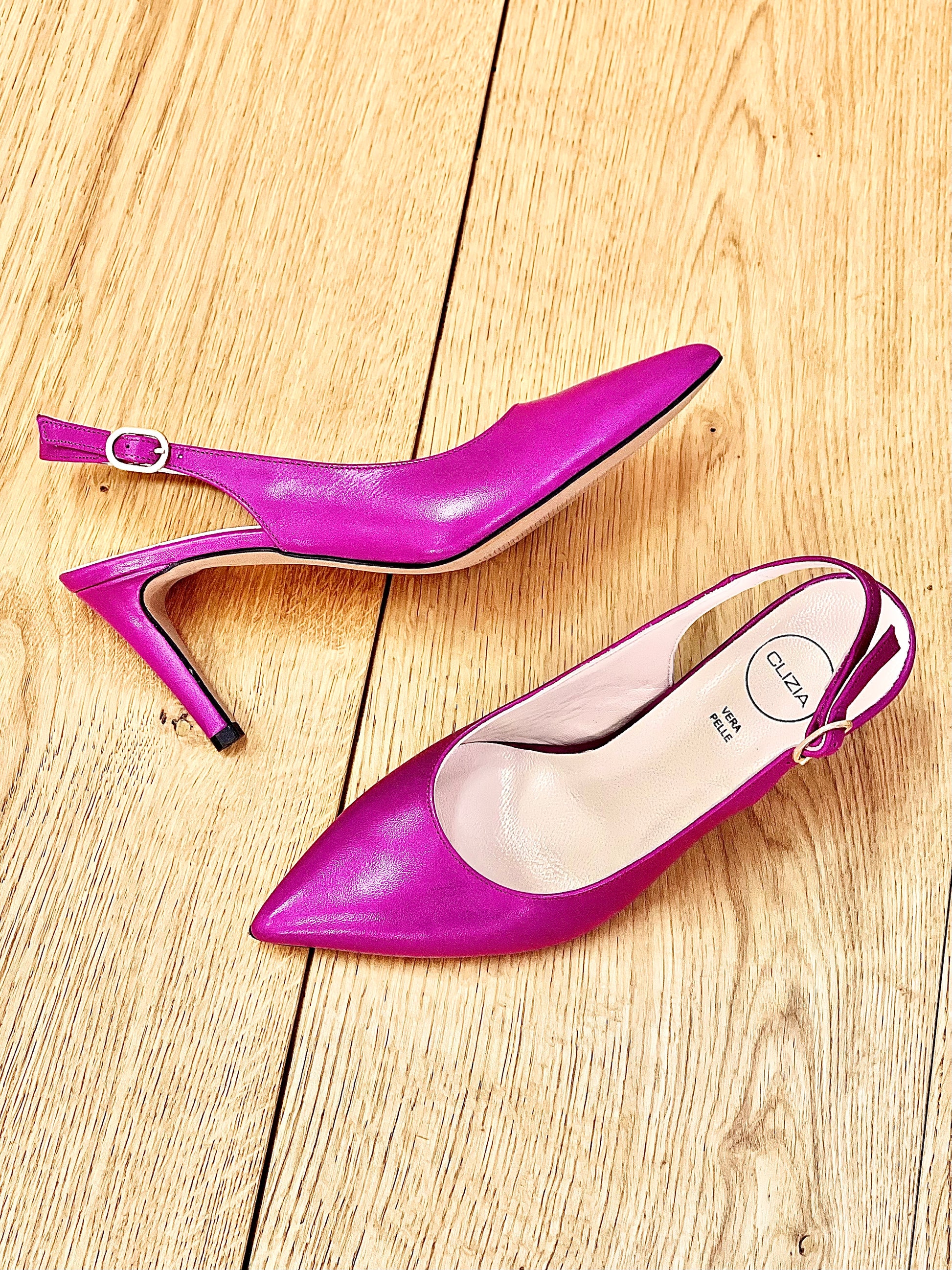 Σλιπ-απ γόβες με λεπτή μύτη από δέρμα και τακούνι 75 mm.