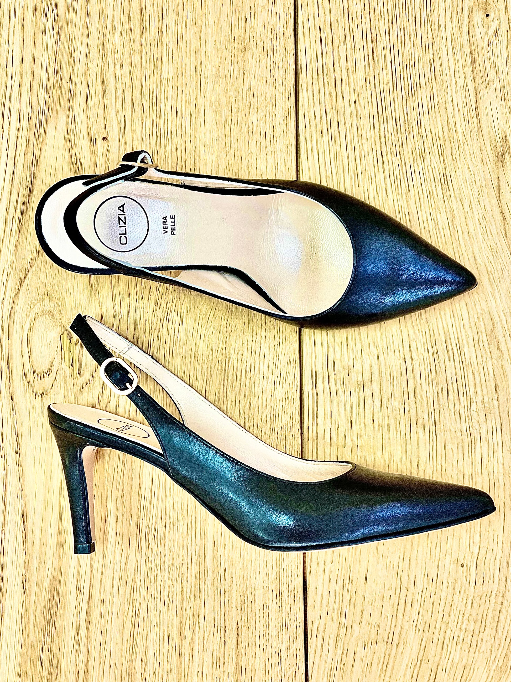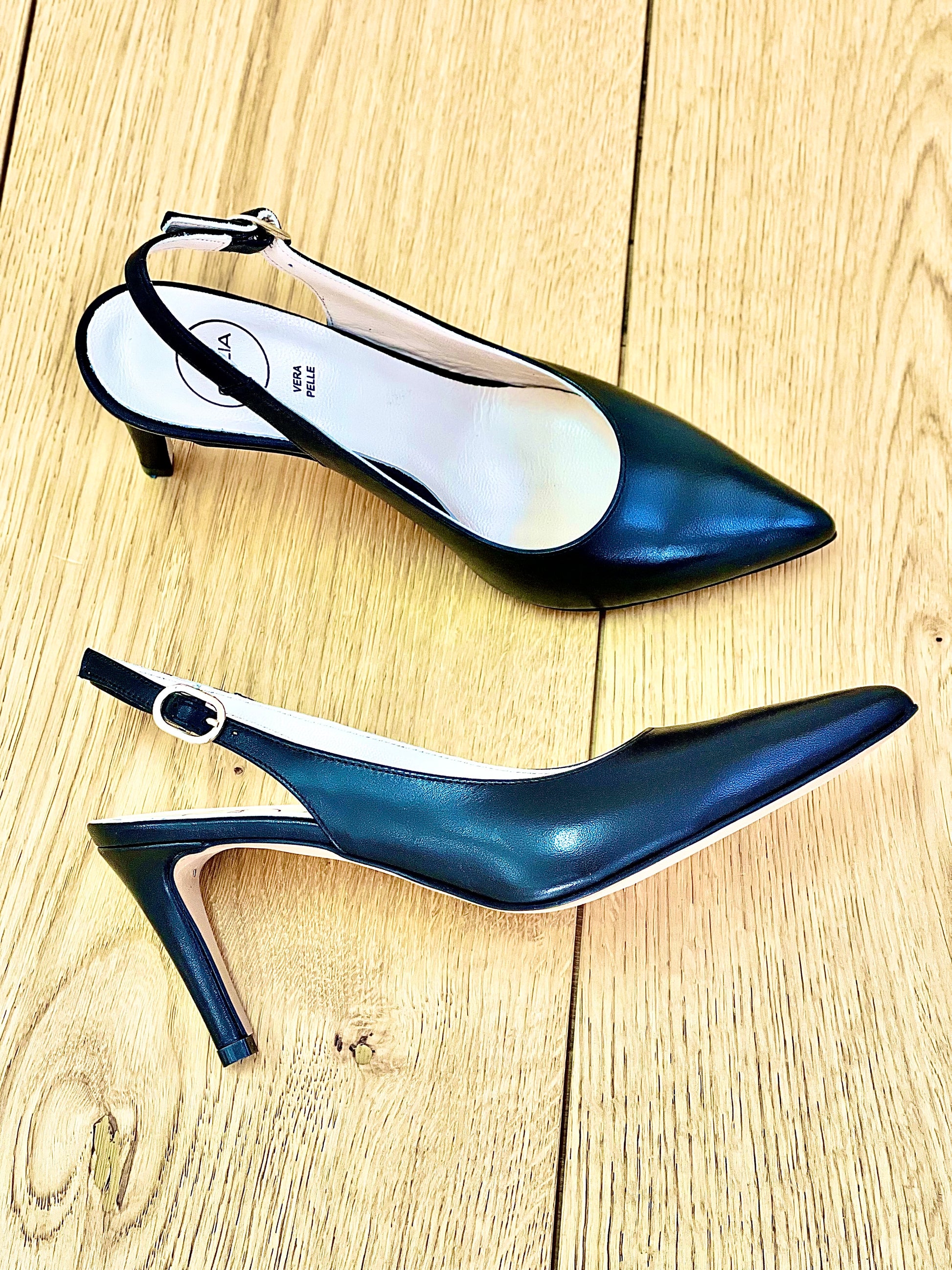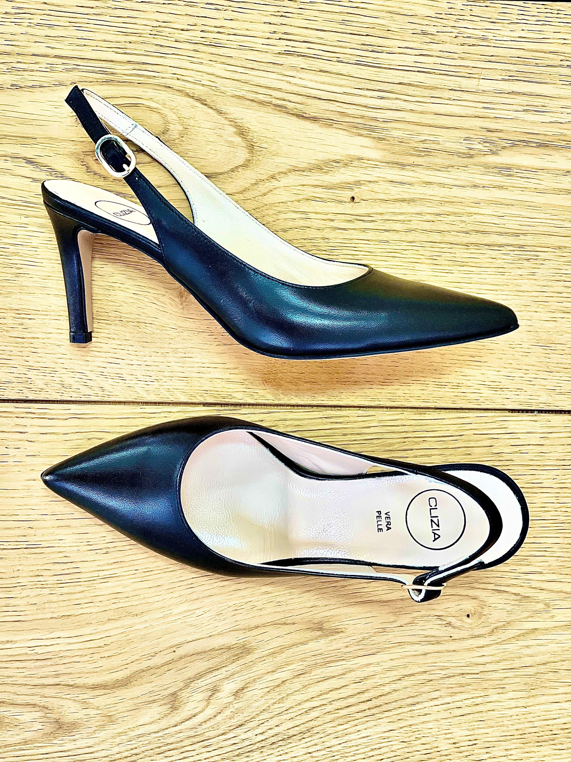 Σλιπ-απ γόβες με λεπτή μύτη από δέρμα και τακούνι 75 mm.