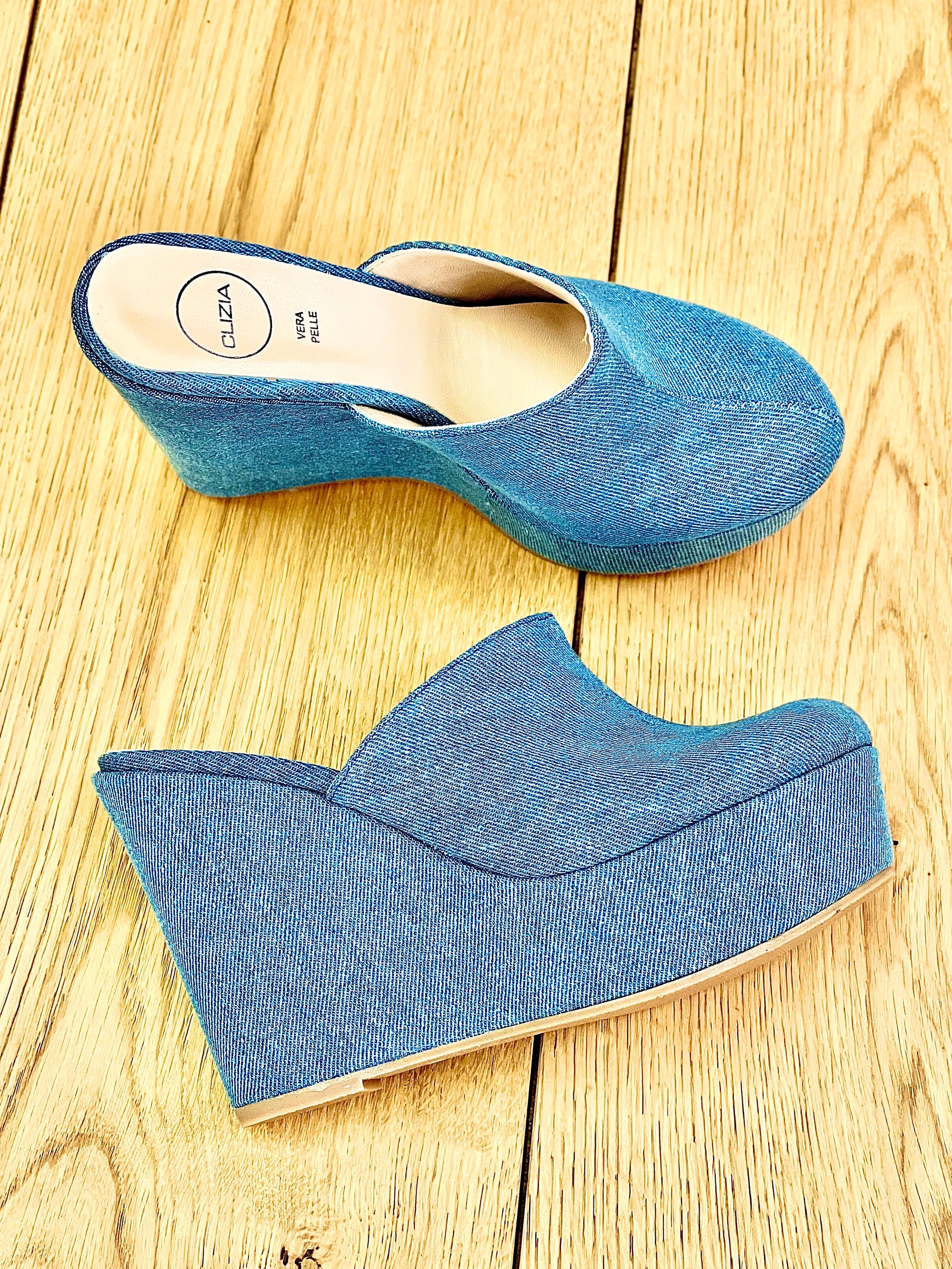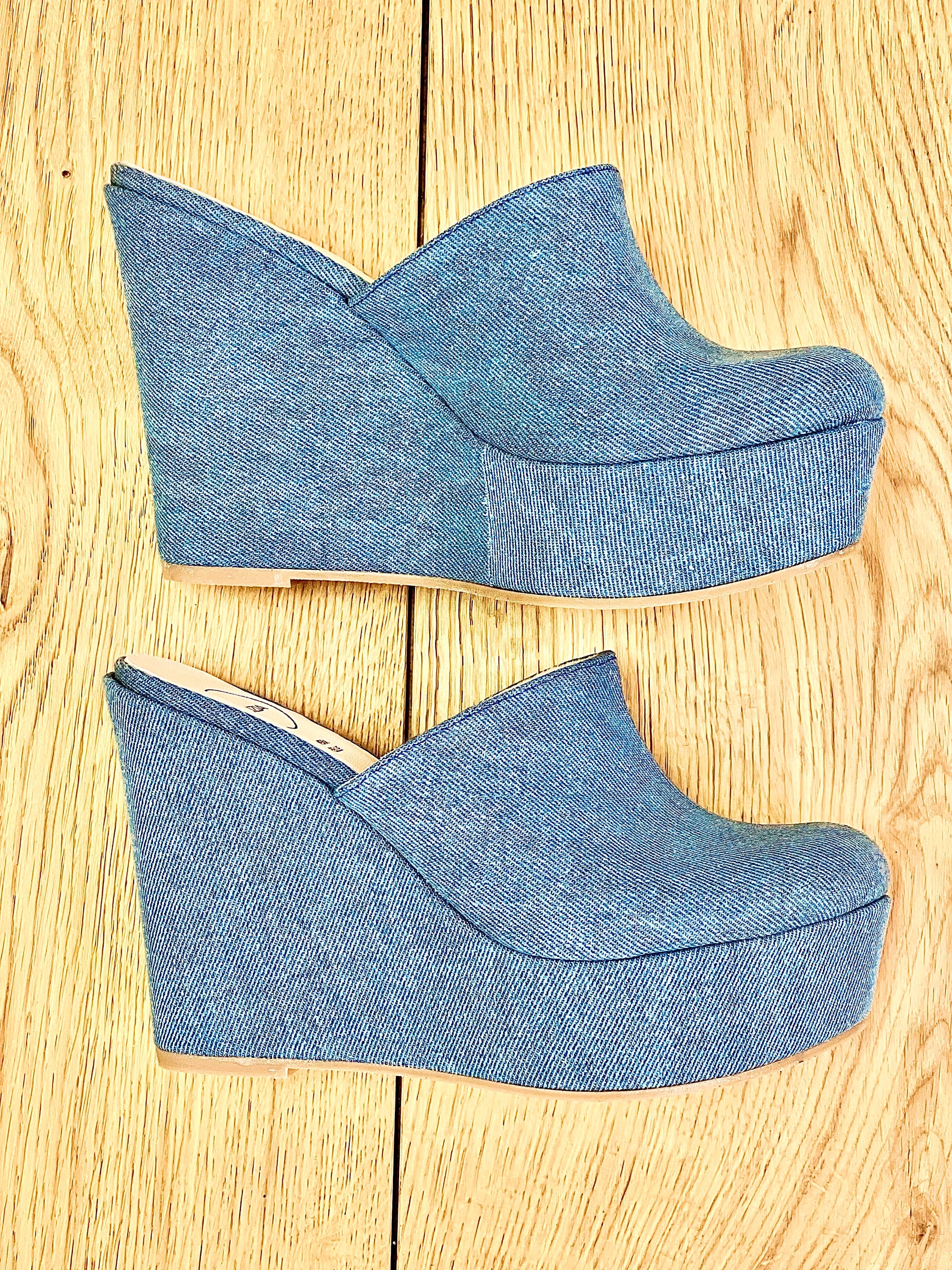 Σαμπό με στρογγυλή μύτη από τζιν με τακούνι ύψους 115 mm.