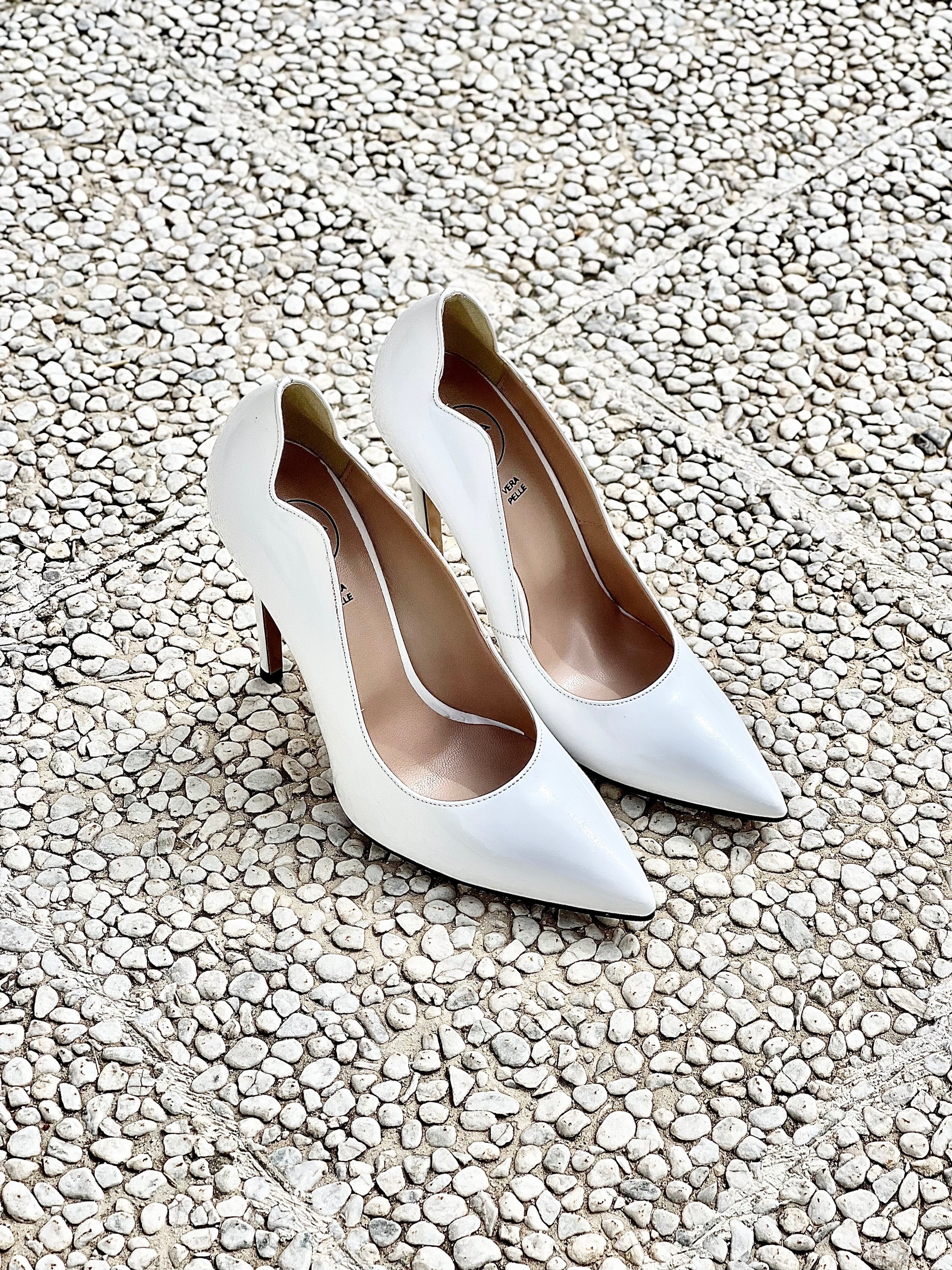 Ανοιχτά γόβα με μυτερή μύτη από βερνίκι και τακούνι-καρφίτσα.