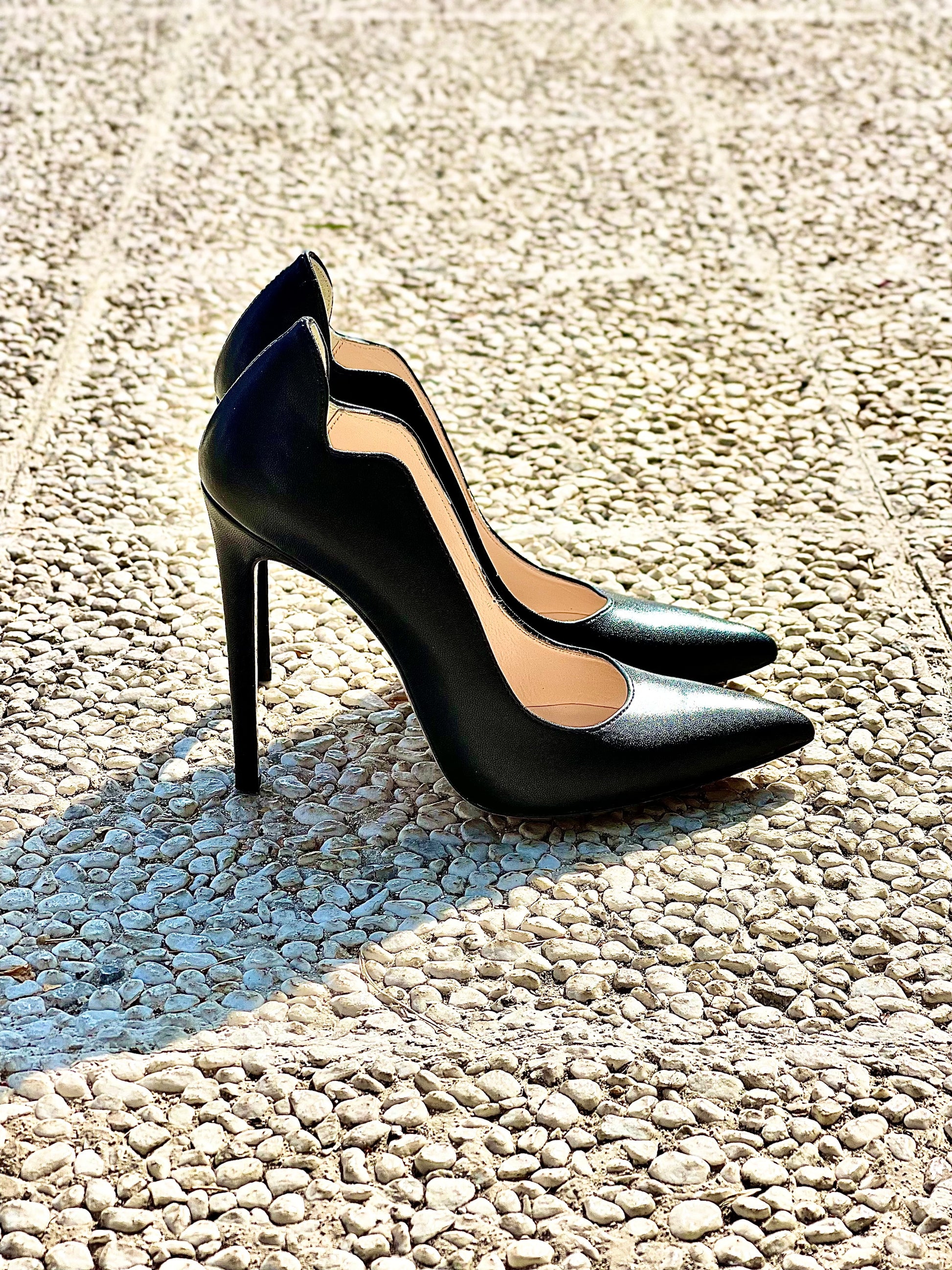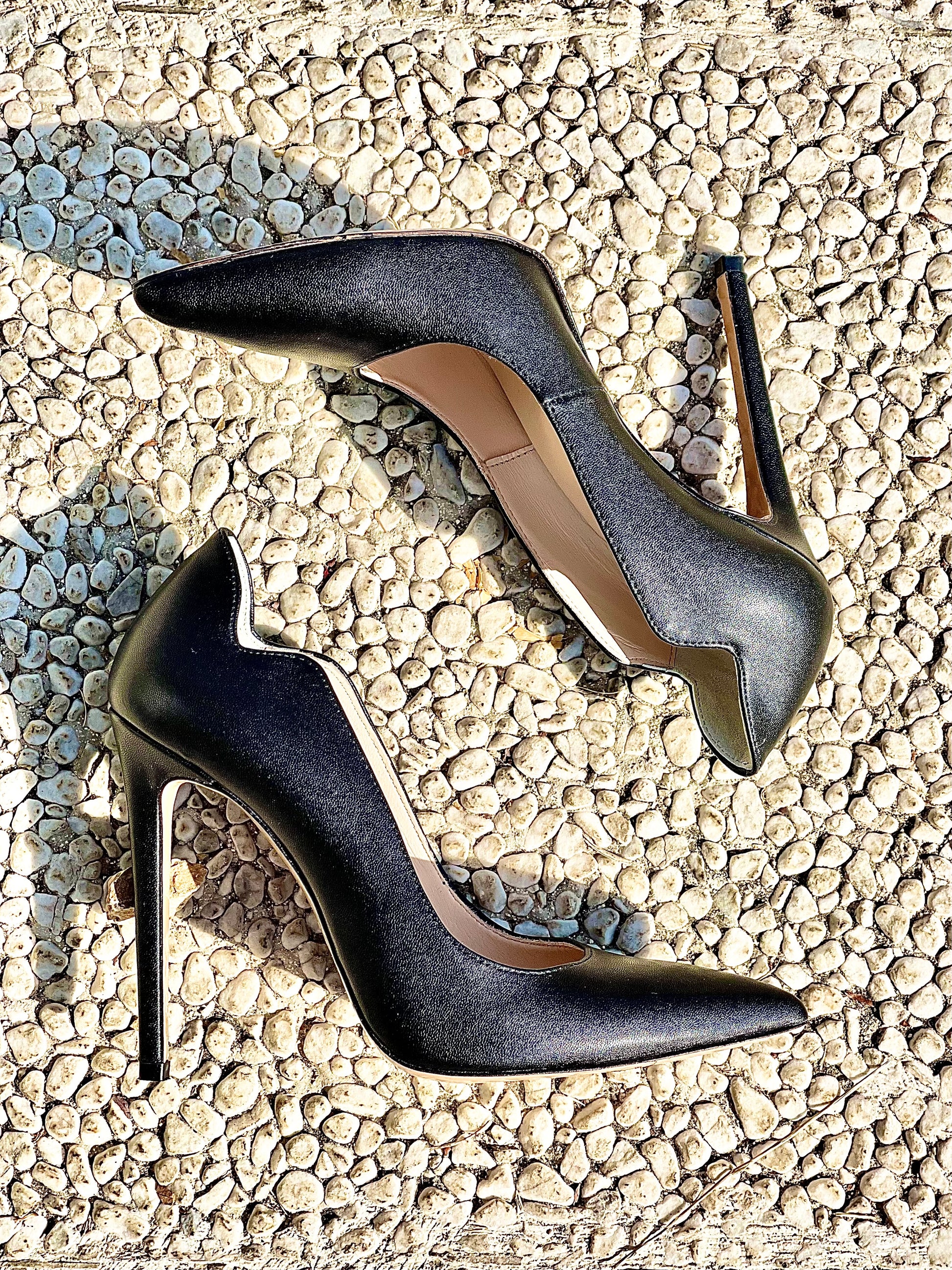 Ανοιχτά γόβα με μυτερή μύτη από δέρμα και ψηλό τακούνι.