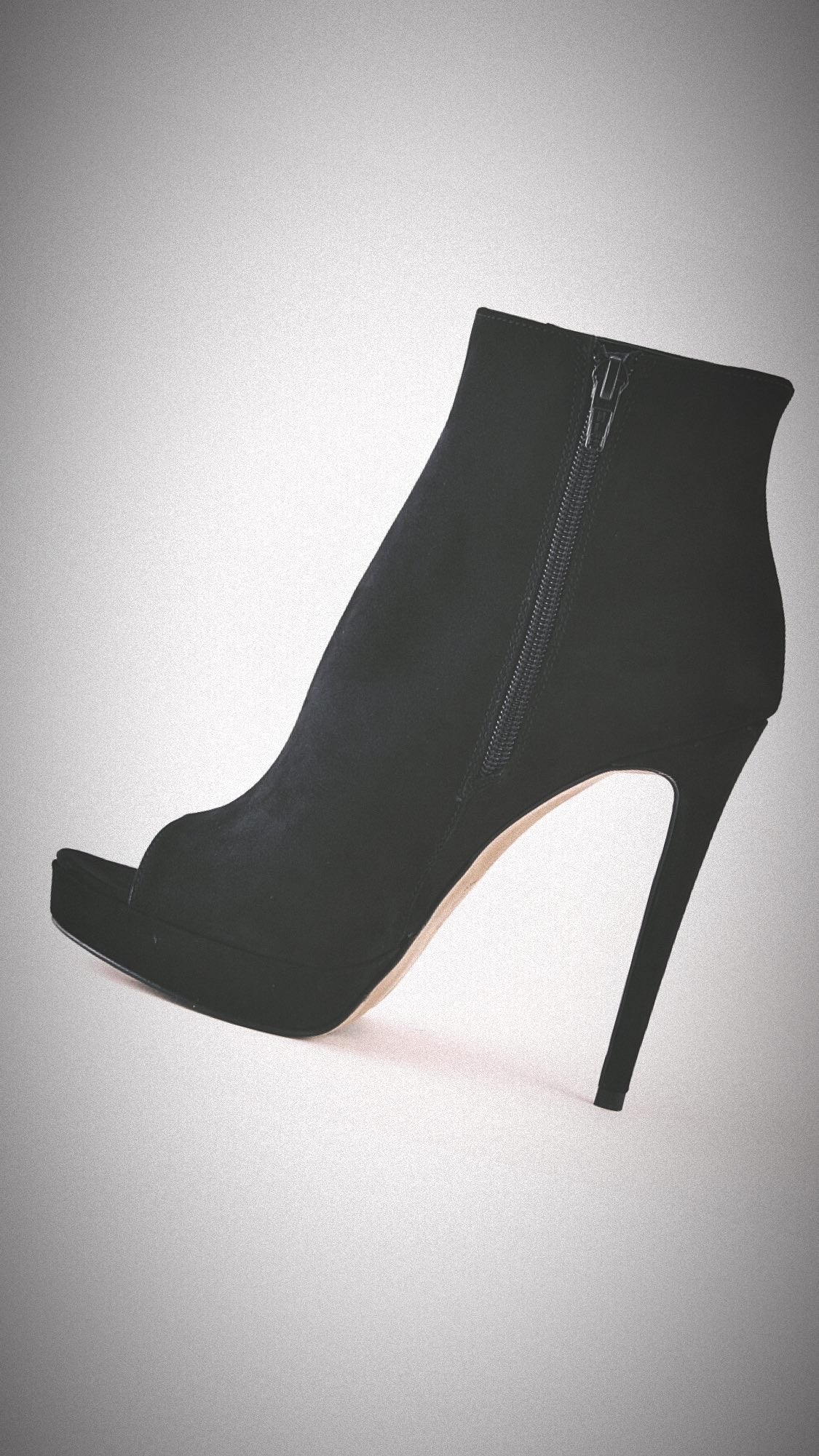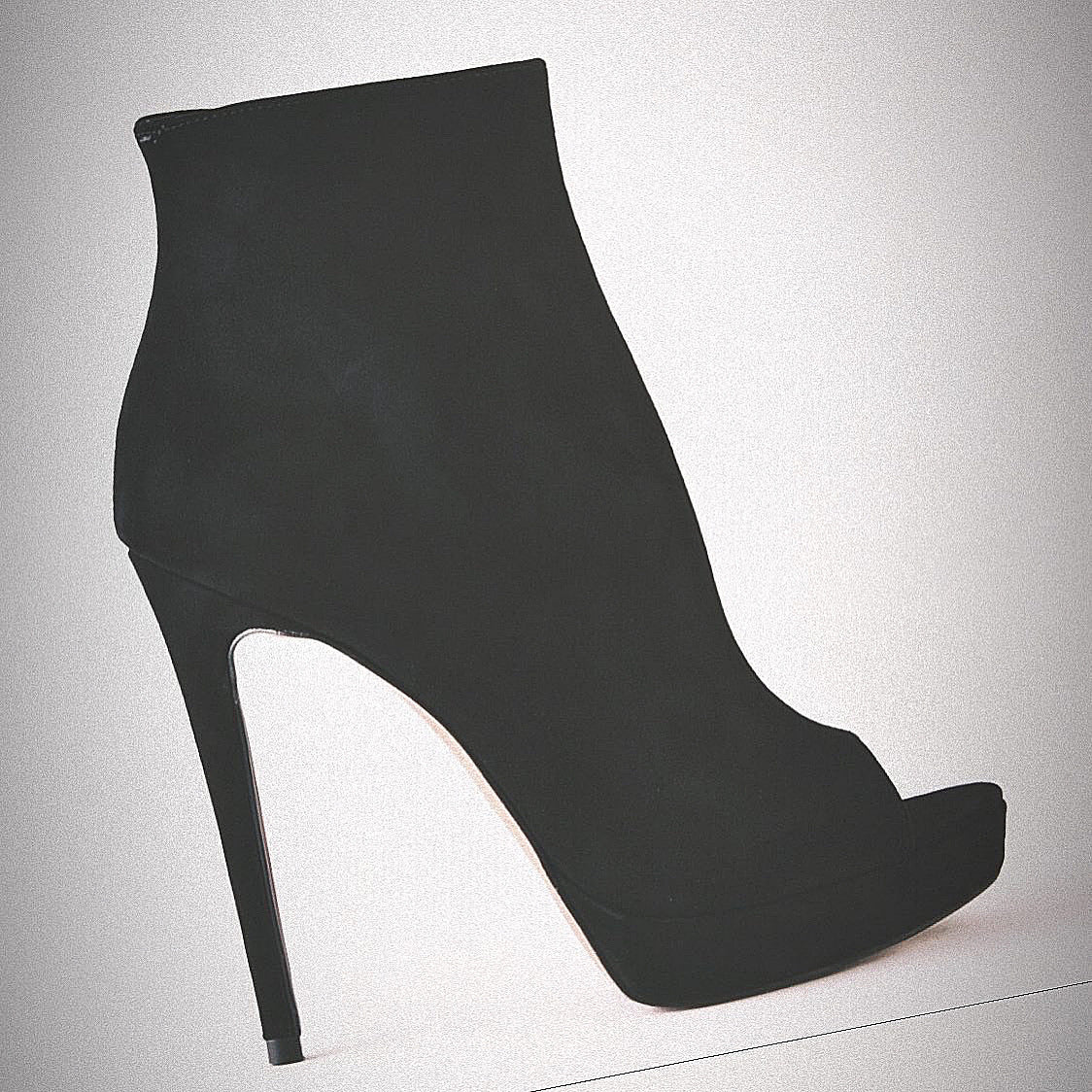 Μποτάκια με ανοιχτή μύτη από σουέτ, ψηλό τακούνι 12 cm και πλατφόρμα 2 cm.