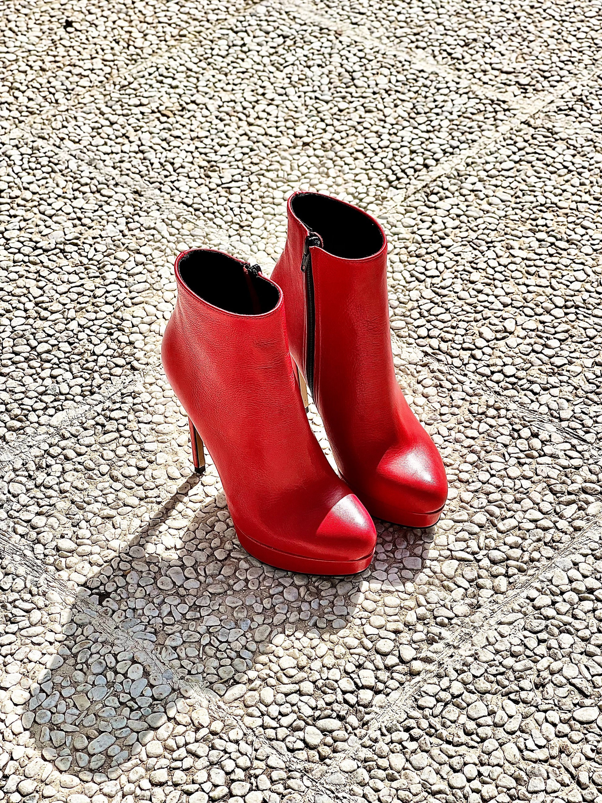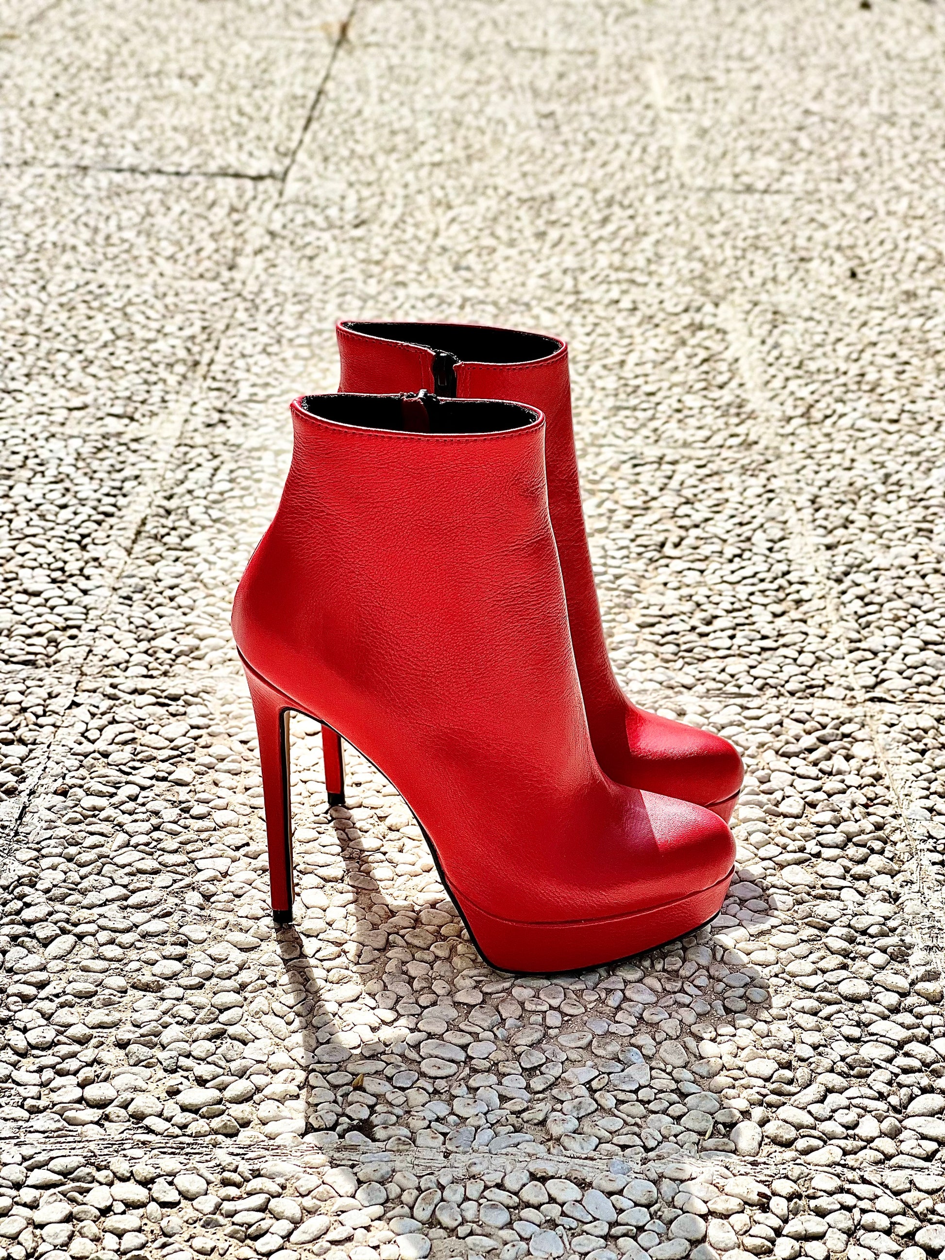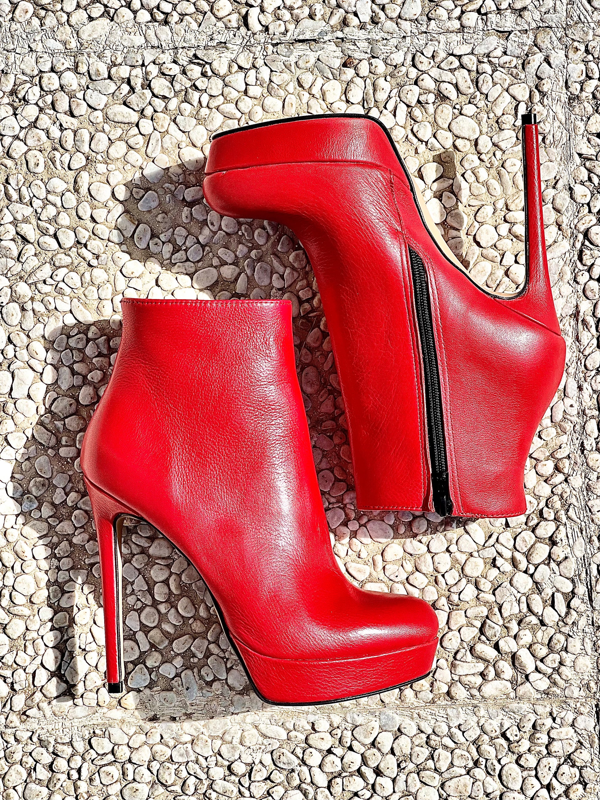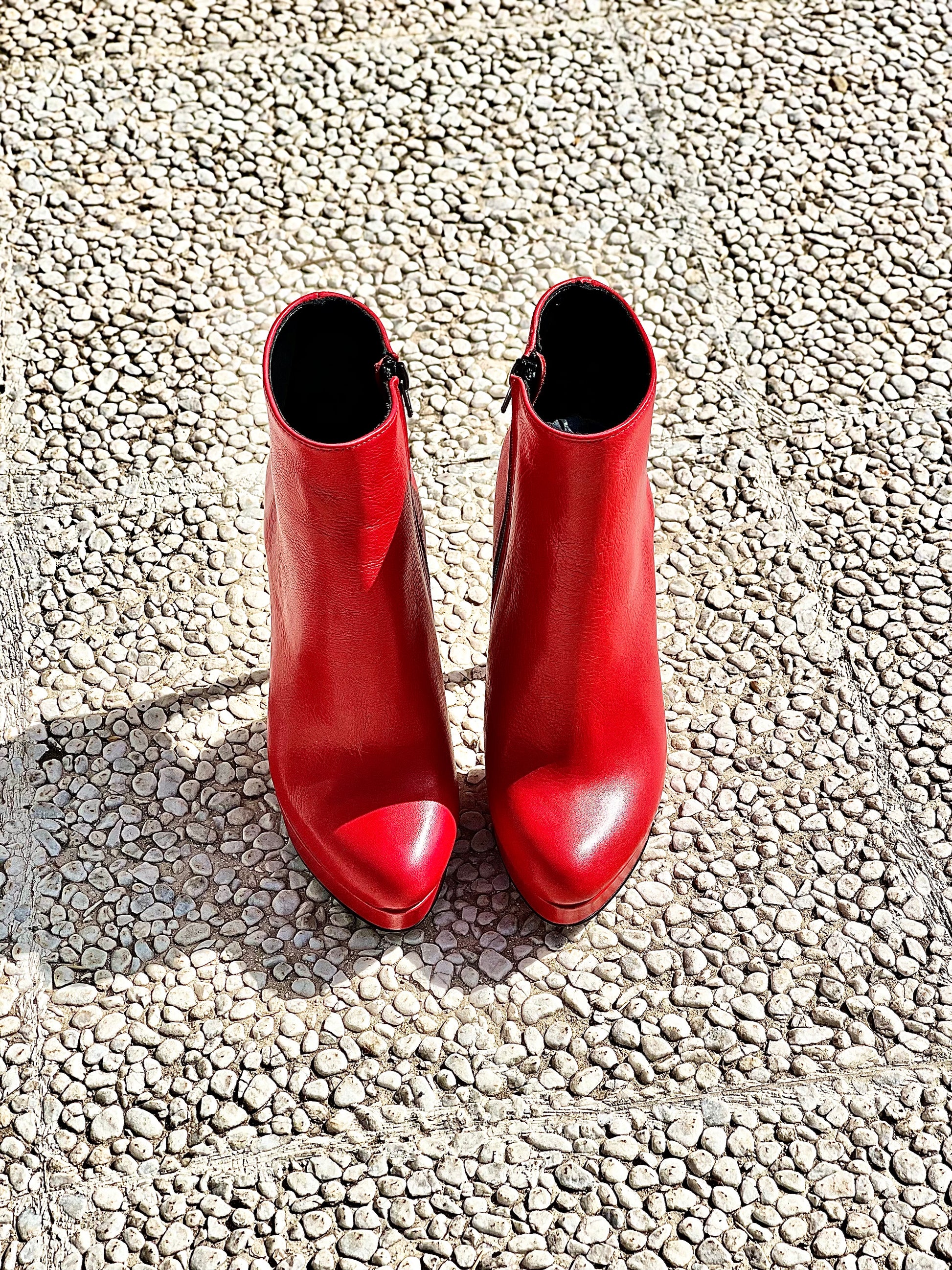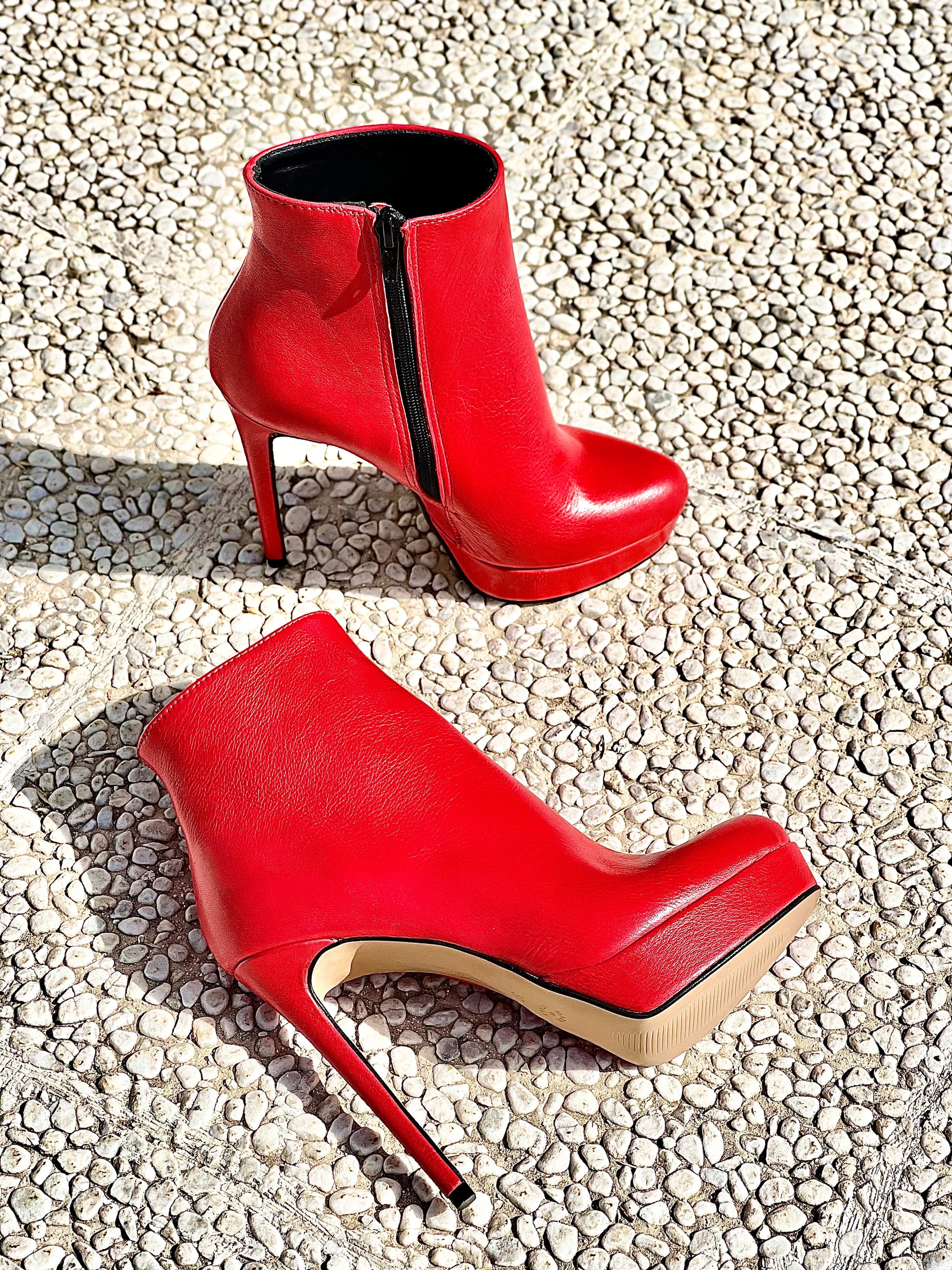 Δερμάτινο μποτάκι με τακούνι 12 εκ. και πλατφόρμα 2 εκ. με εσωτερικό φερμουάρ.