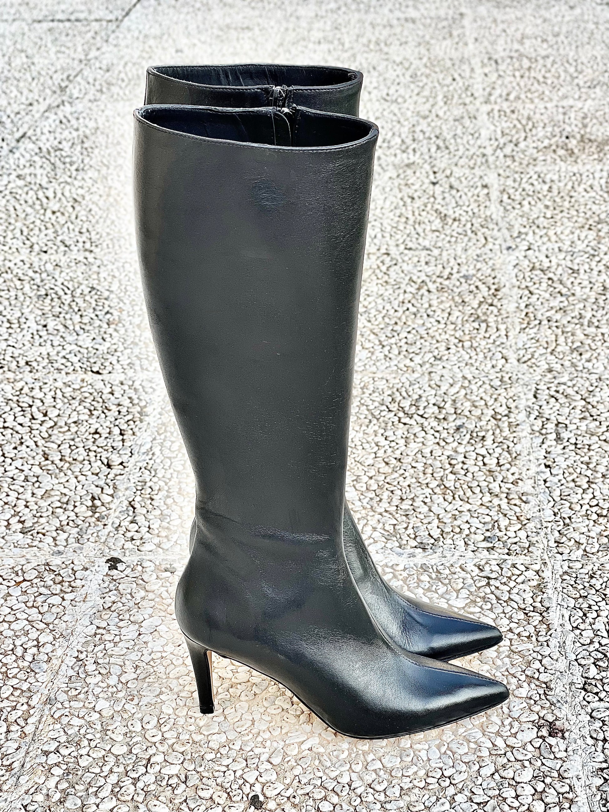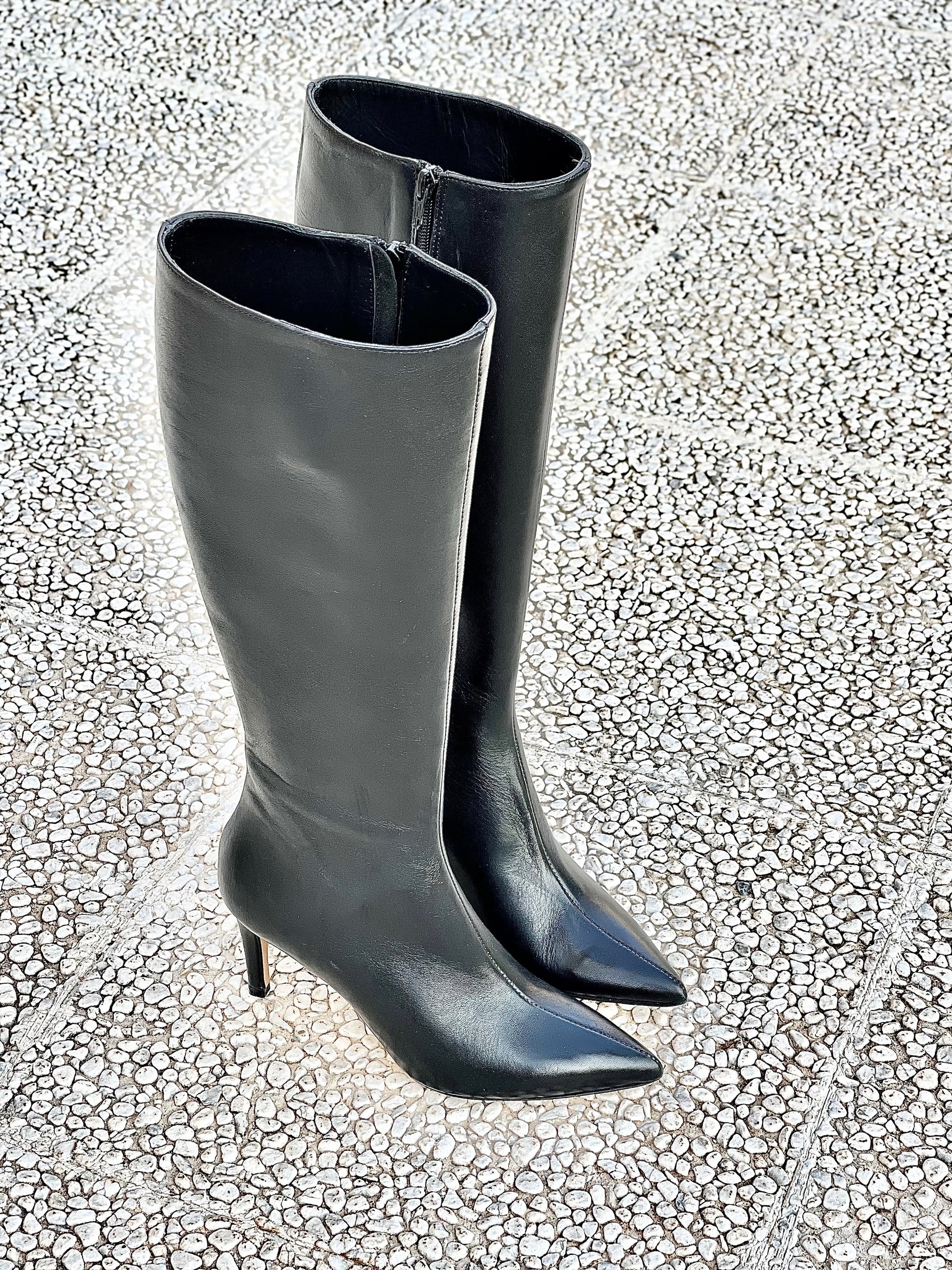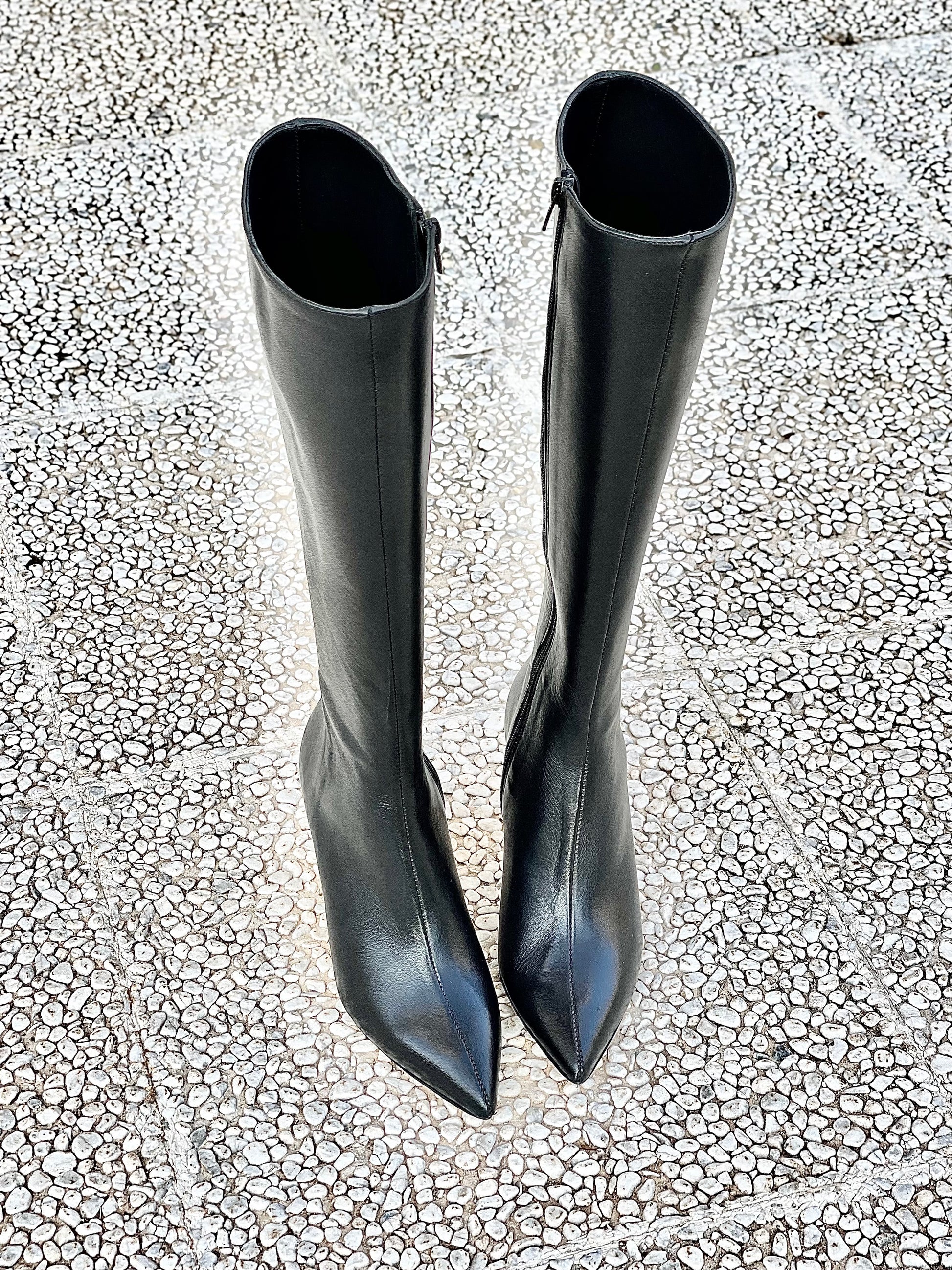 Μπότες με μυτερή μύτη από δέρμα, τακούνι 8 εκ.