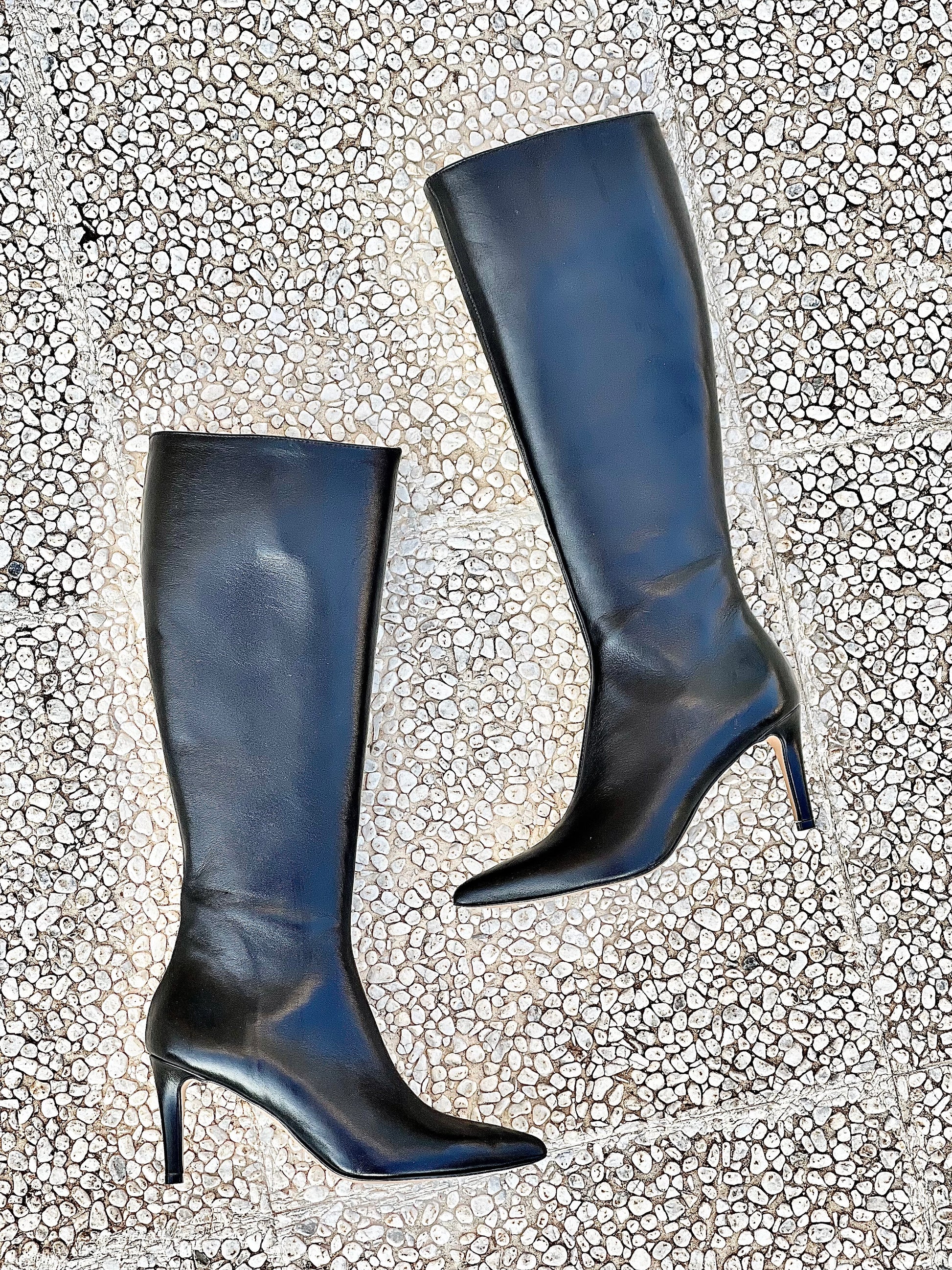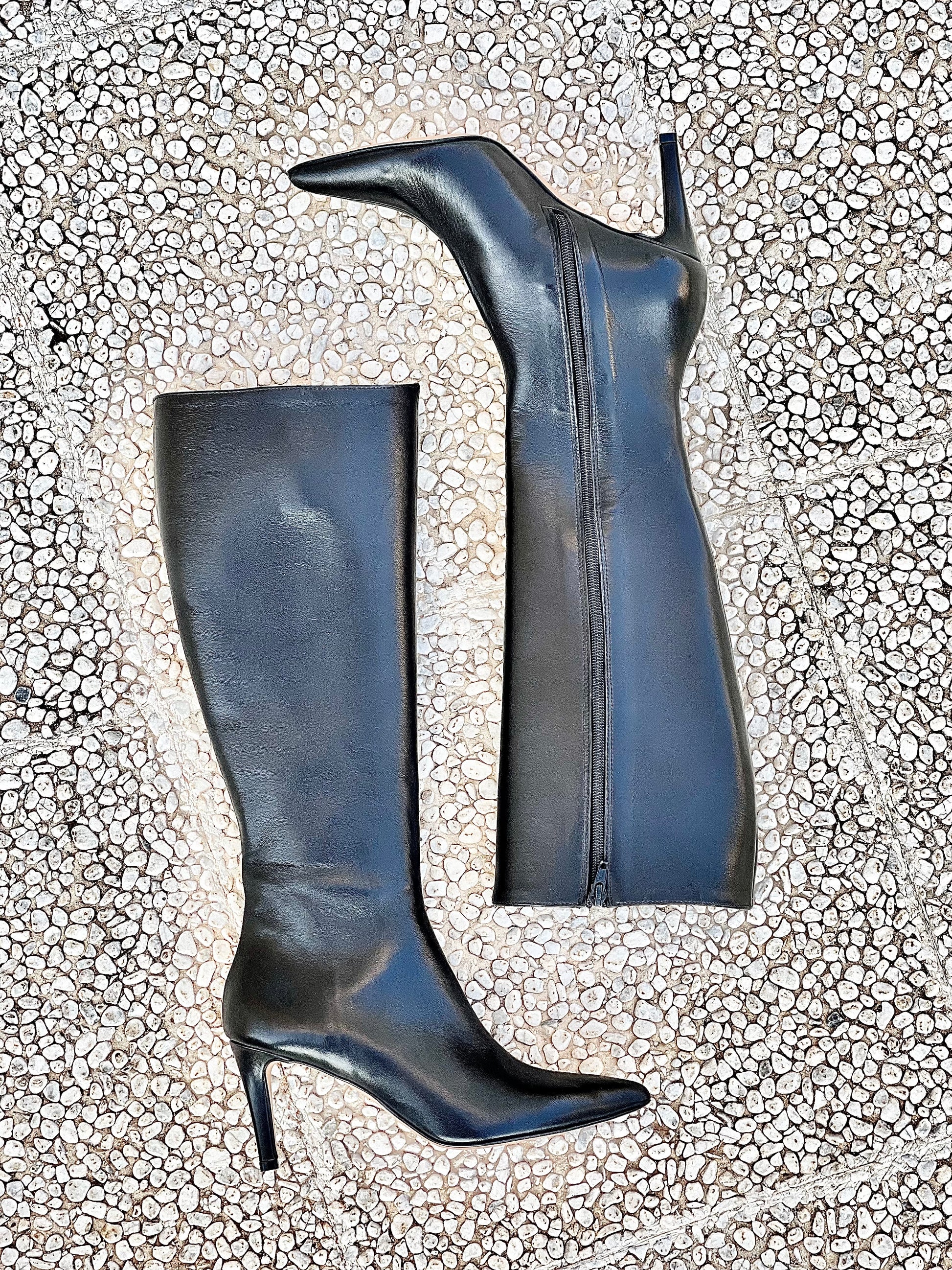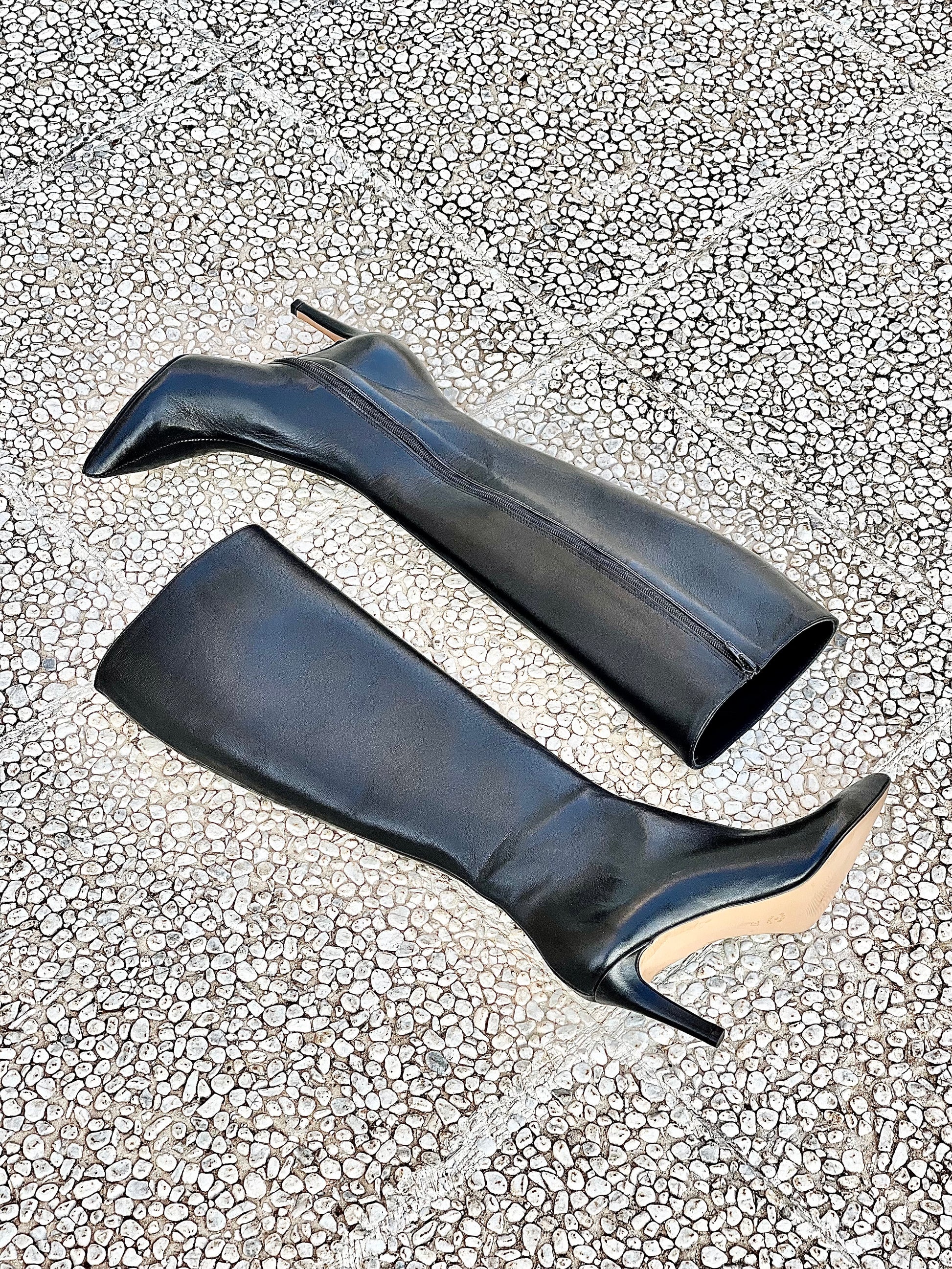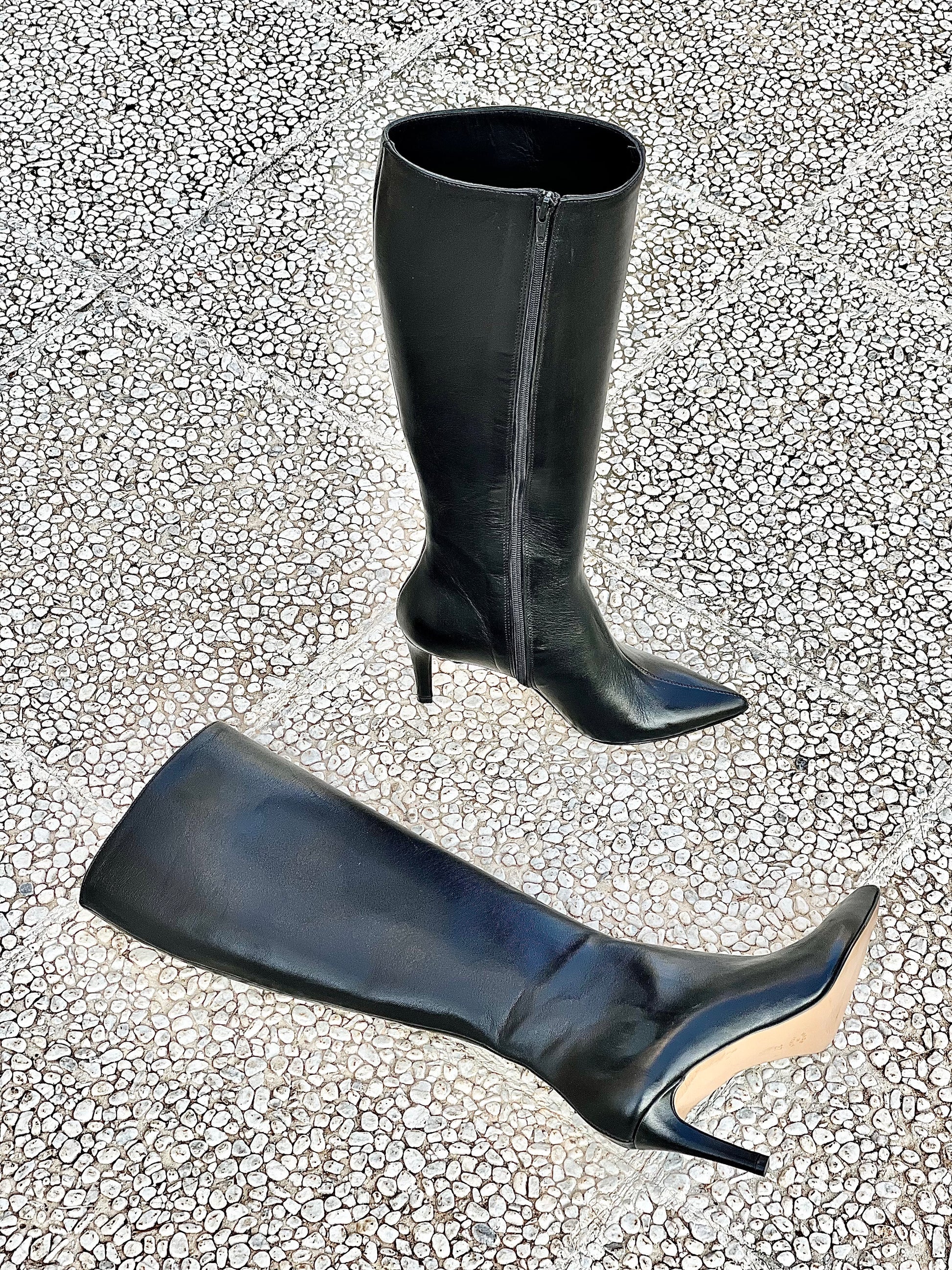 Μπότες με μυτερή μύτη από δέρμα, τακούνι 8 εκ.