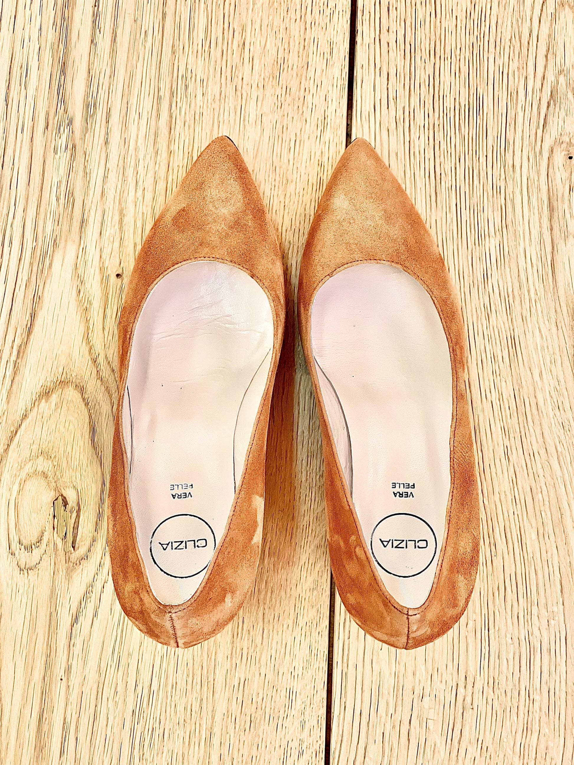 Σαγιονάρες με μυτερή μύτη από σουέτ, φαρδύ τακούνι 75 mm.
