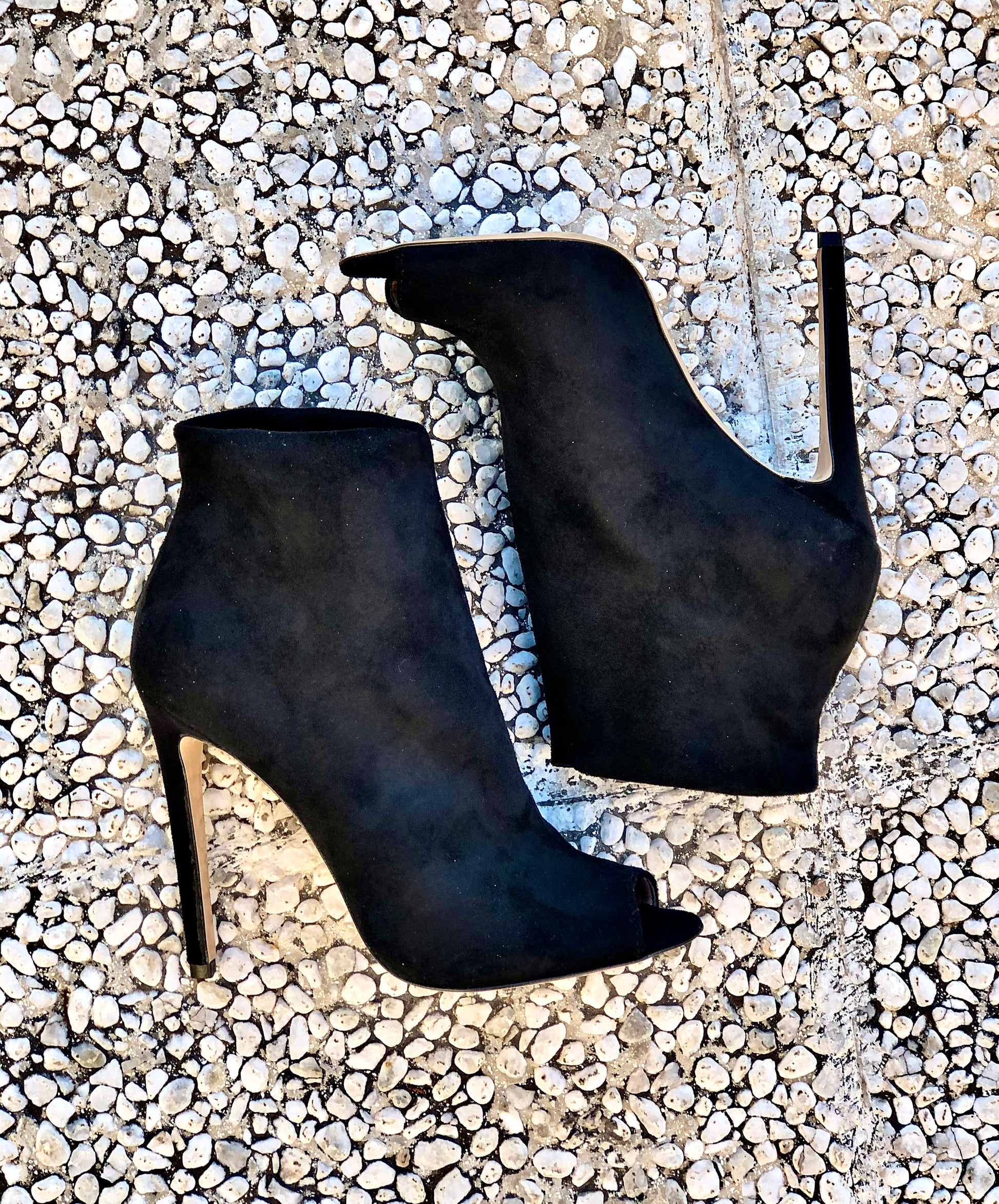 Ελαστικά μποτάκια με ανοιχτή μύτη από σουέτ, τακούνι 10 εκ.