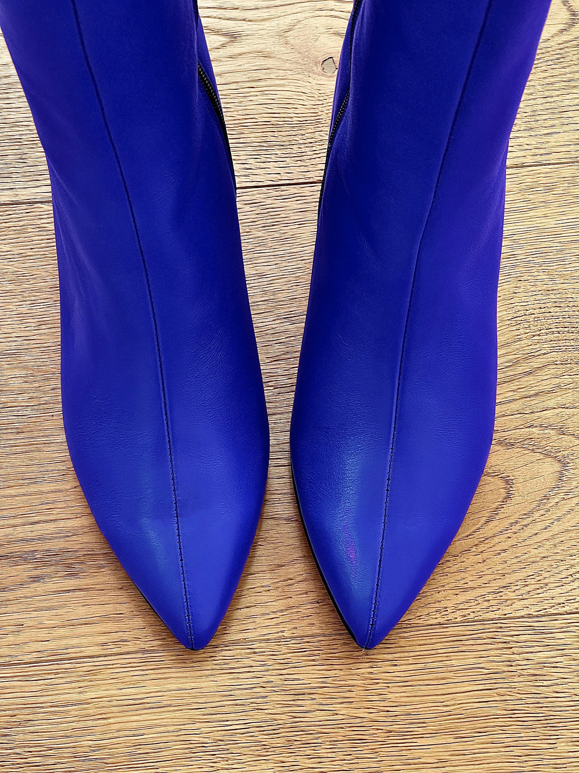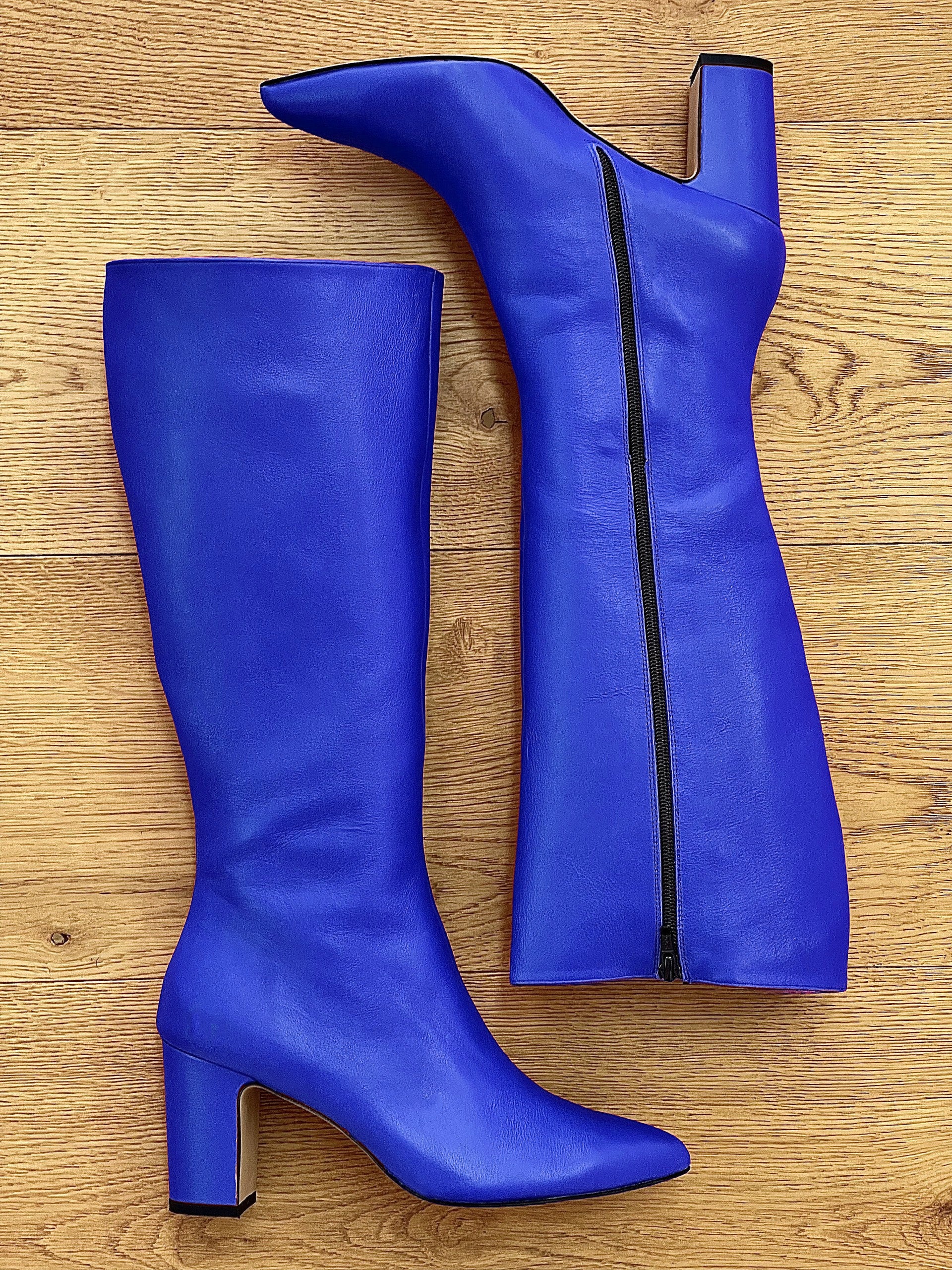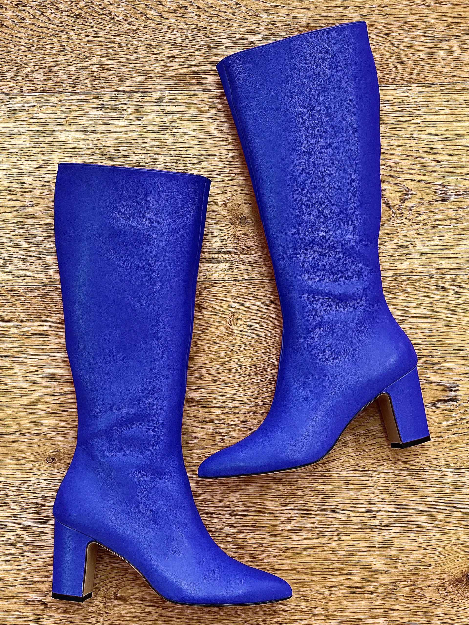 Μπότες με μυτερή μύτη από δέρμα, φαρδύ τακούνι 75 mm.