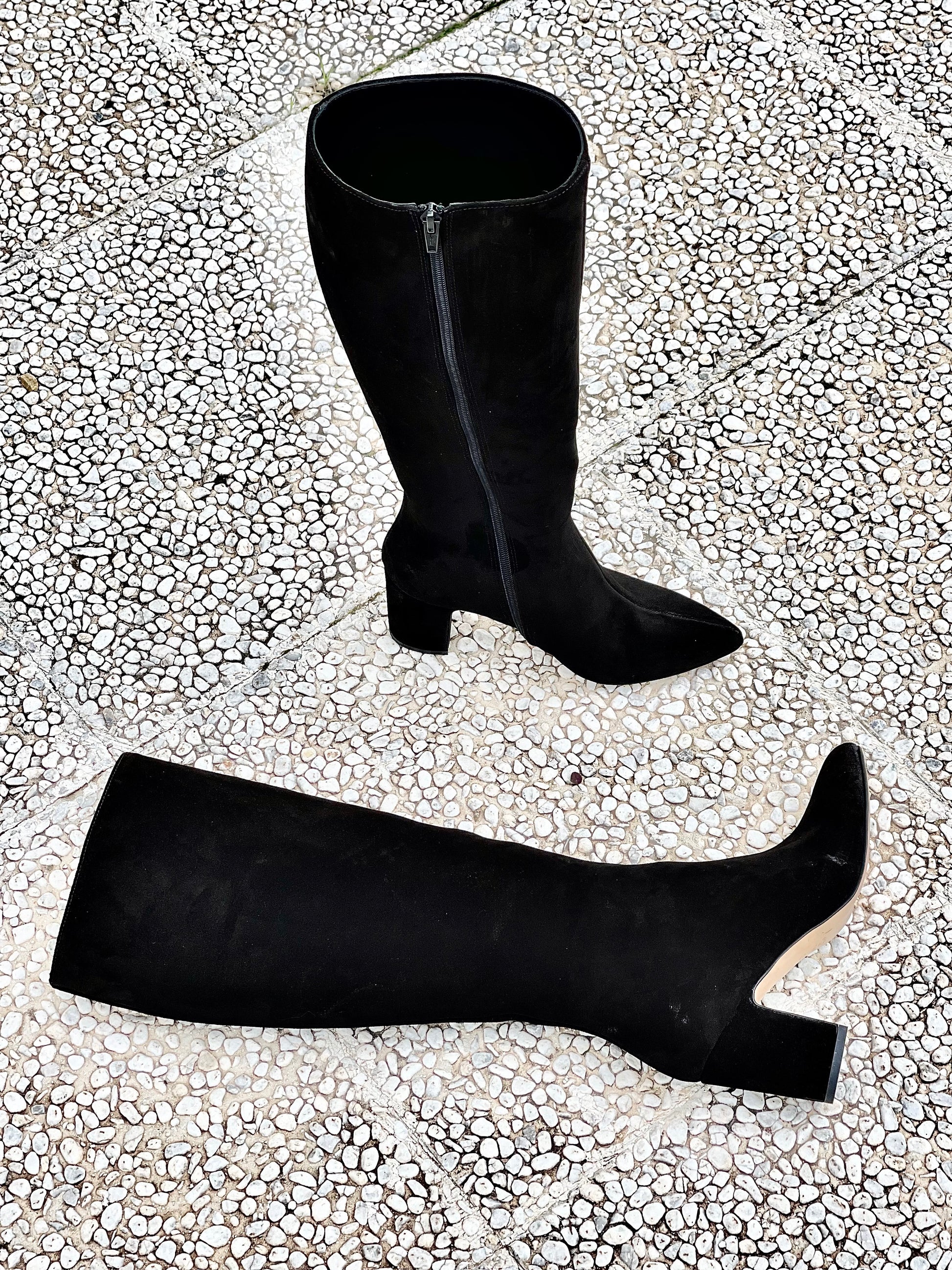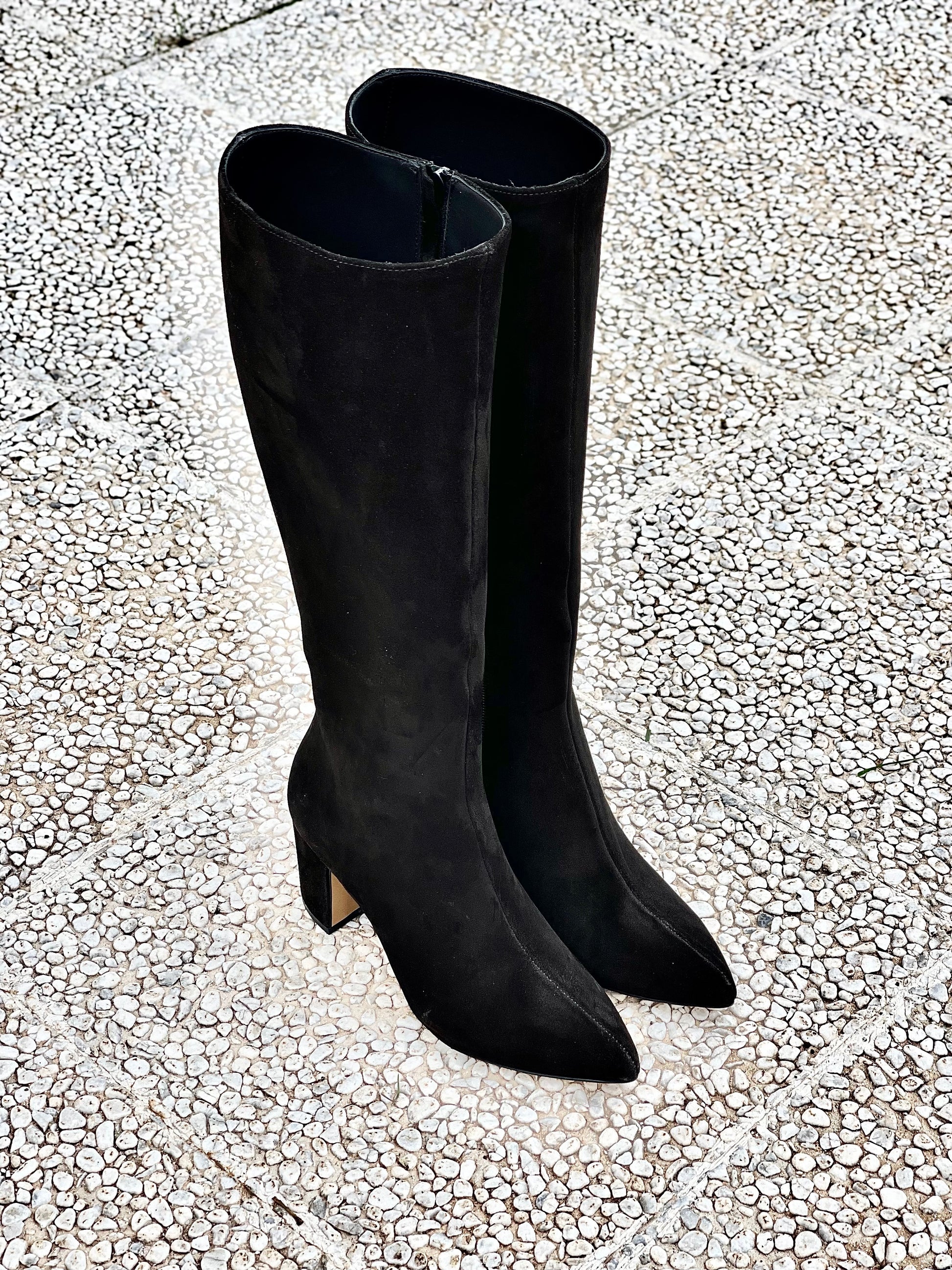 Μπότες με μυτερή μύτη από καμηλό δέρμα και φαρδύ τακούνι 75 mm.