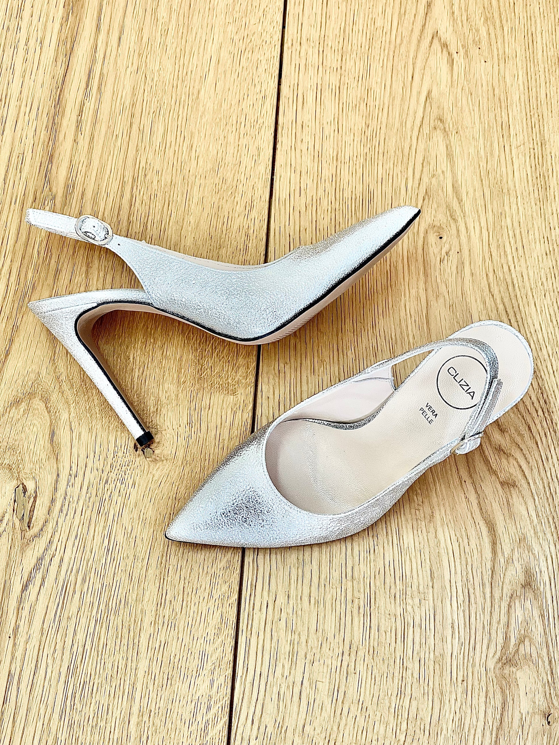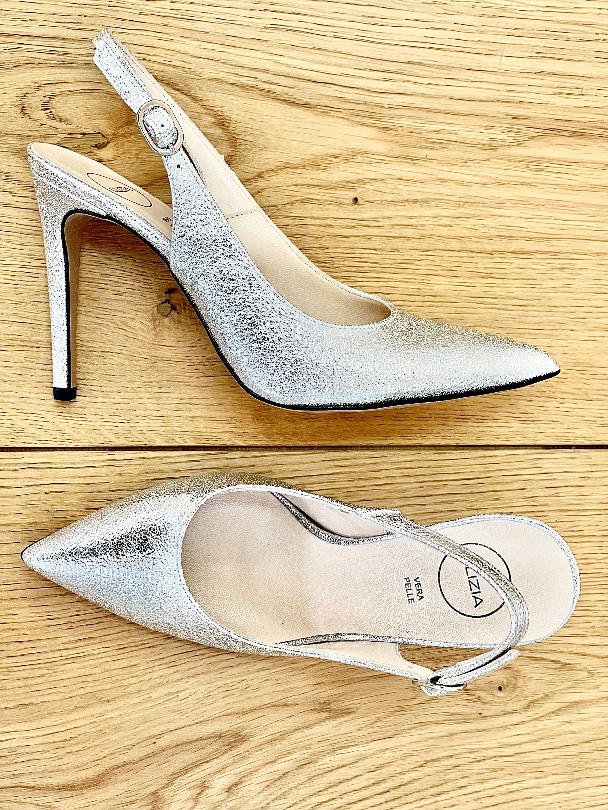 Σλιπ-ον γόβες με λεπτή μύτη από λαμινέτο και τακούνι-βελόνα.
