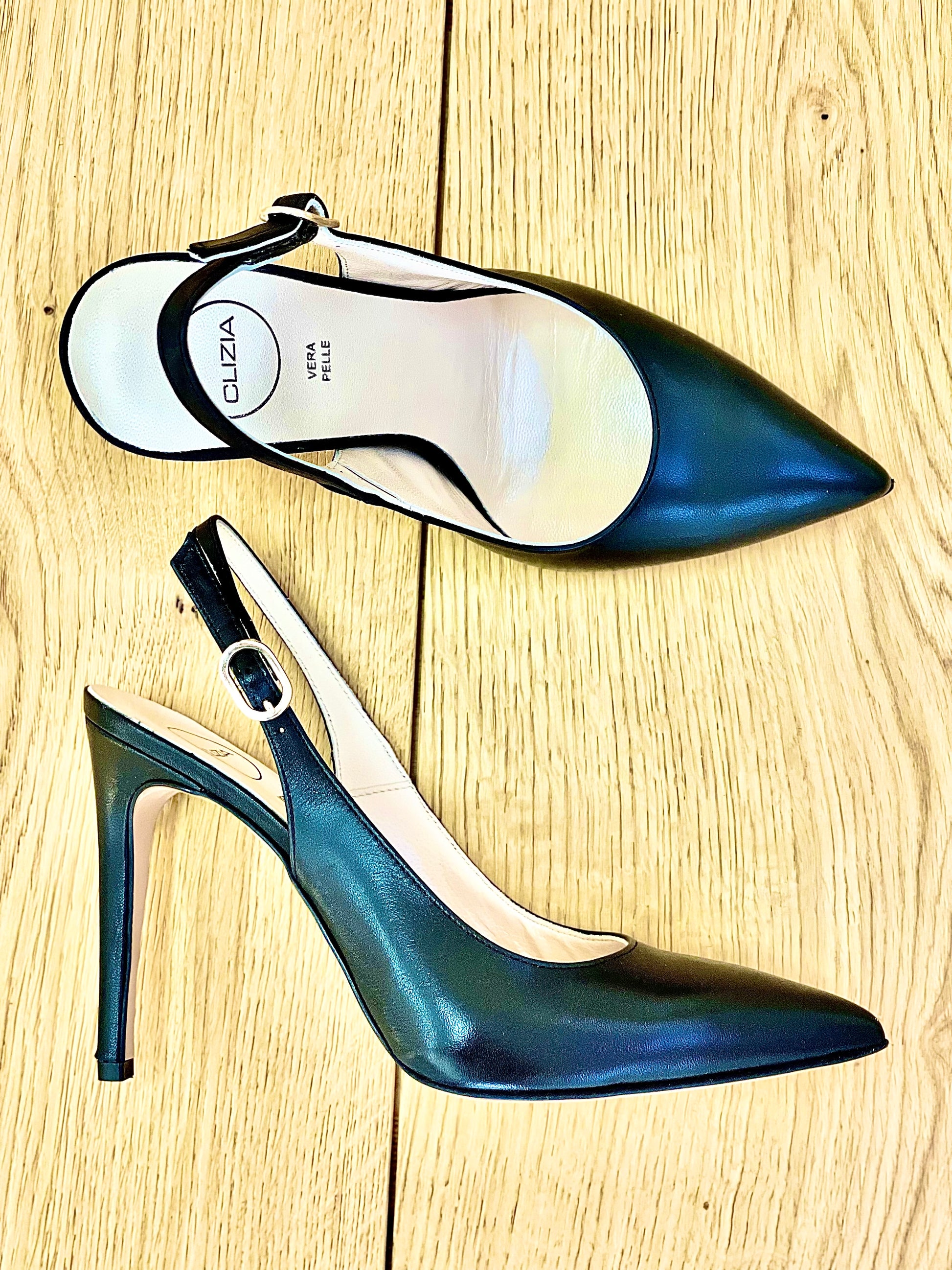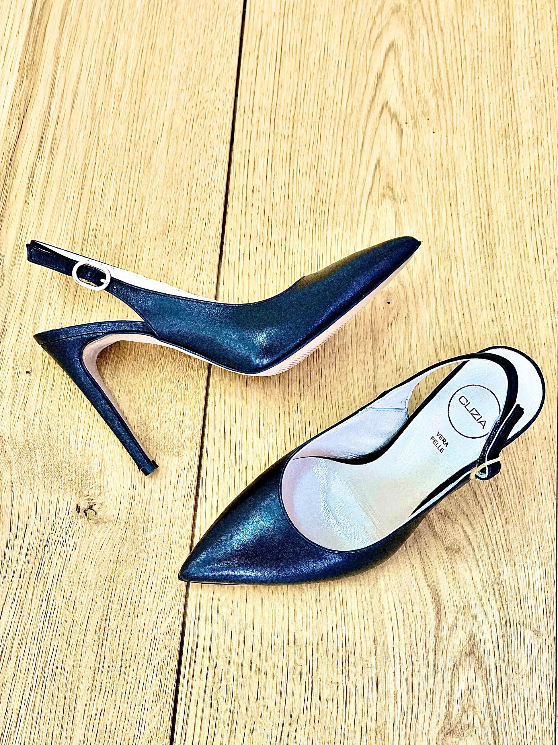 Σλιπ-ον γόβες με λεπτή μύτη από δέρμα και τακούνι-βελόνα.