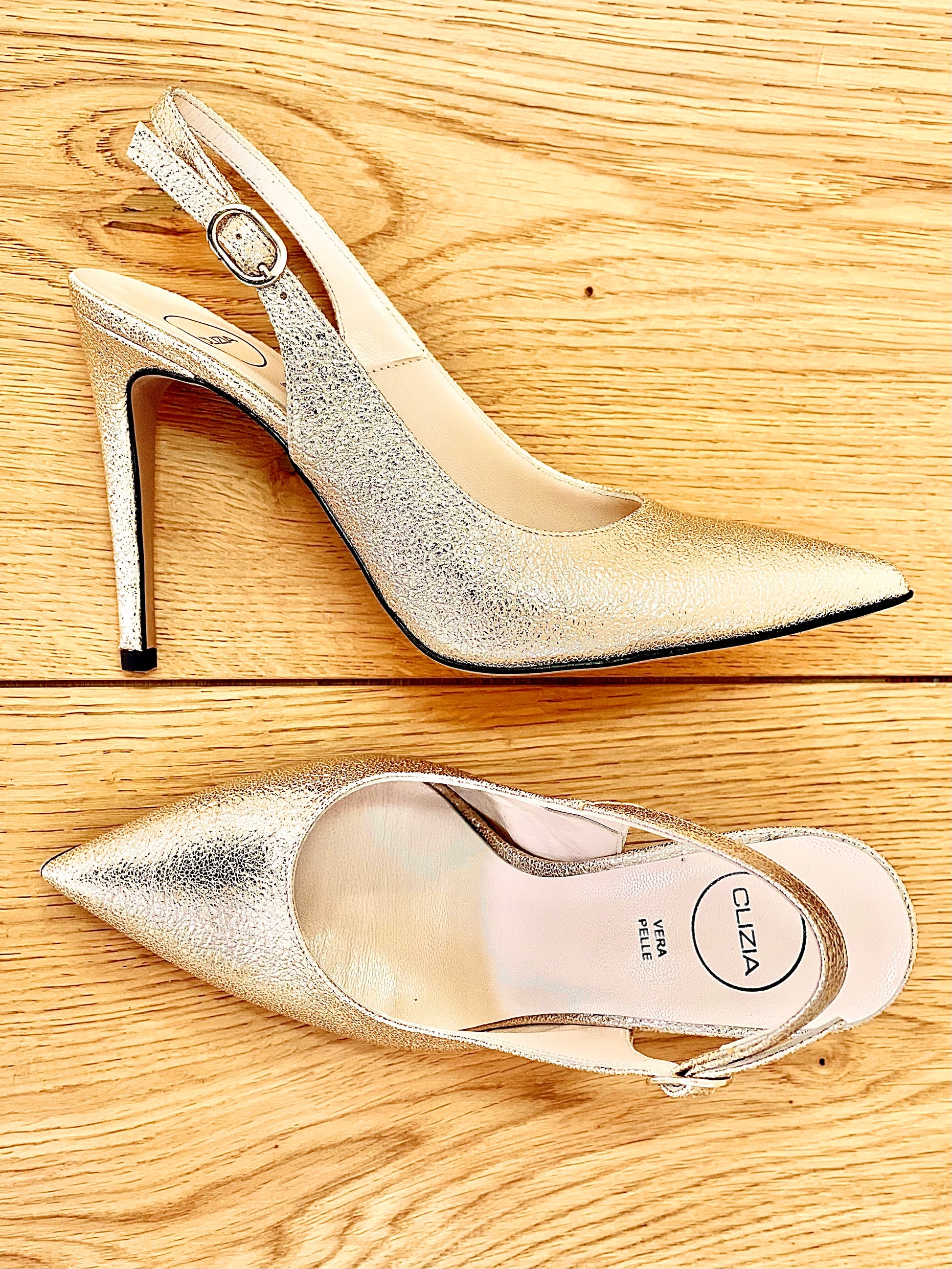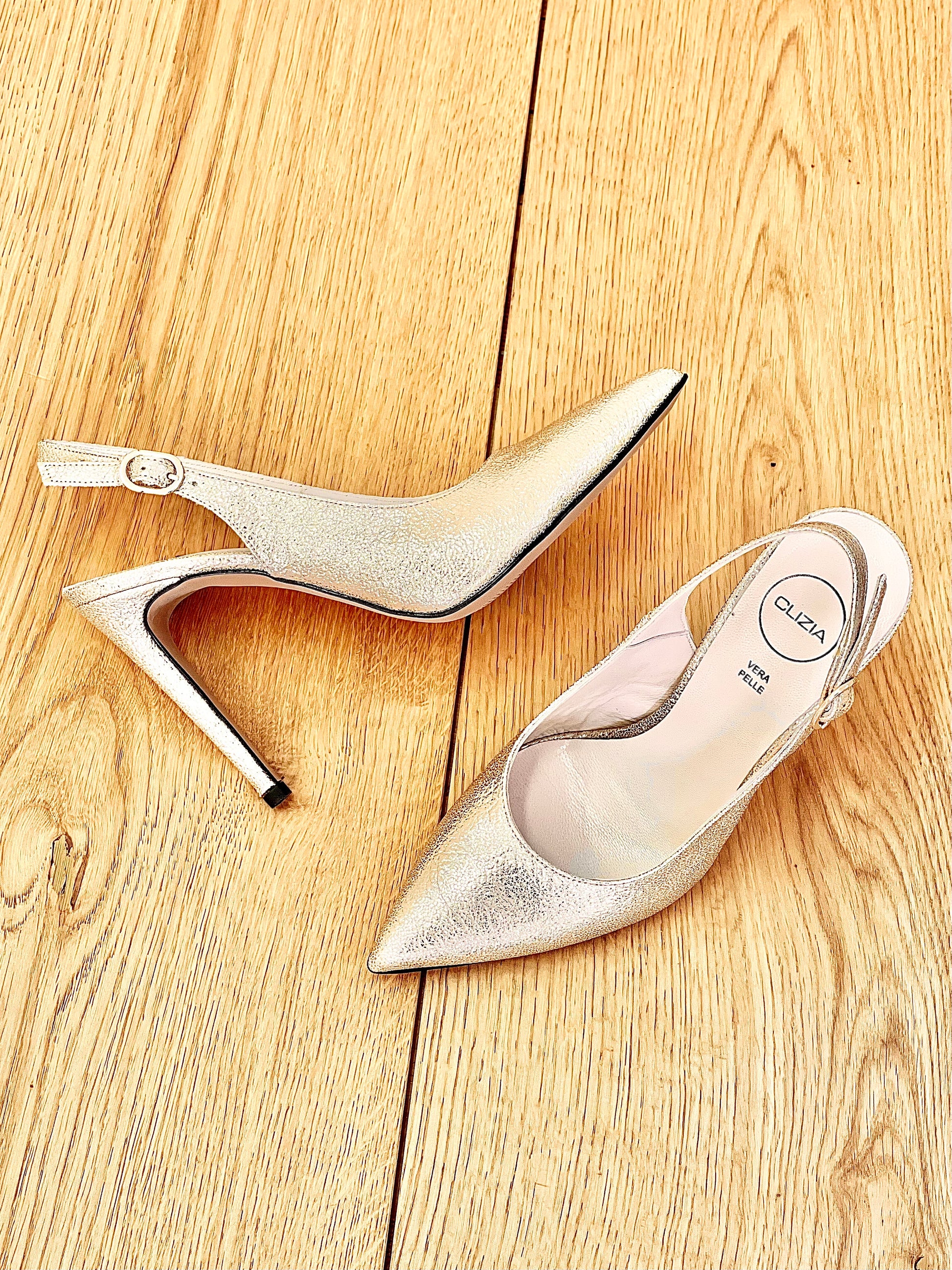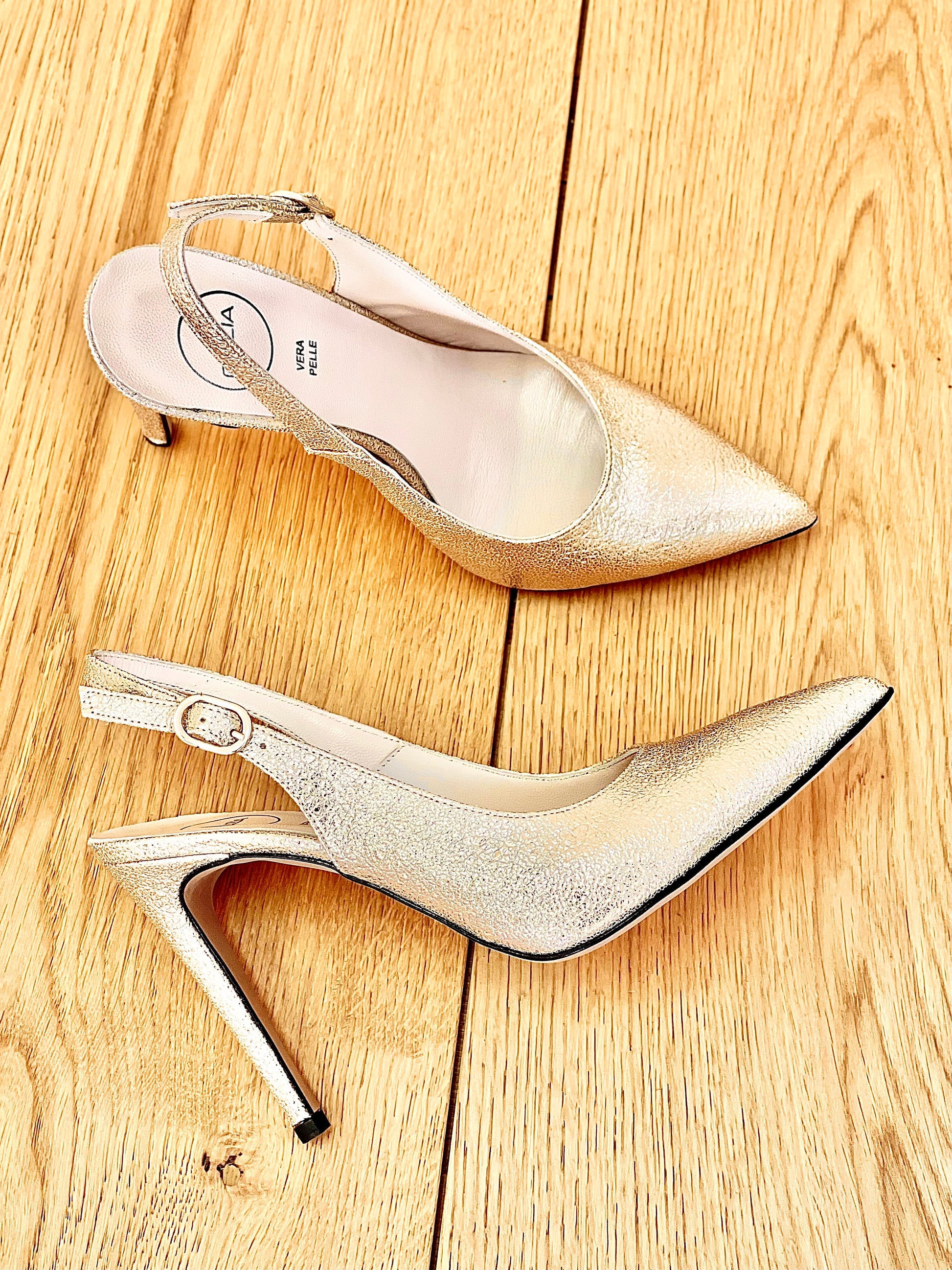 Σλιπ-ον γόβες με λεπτή μύτη από λαμινέτο και τακούνι-βελόνα.