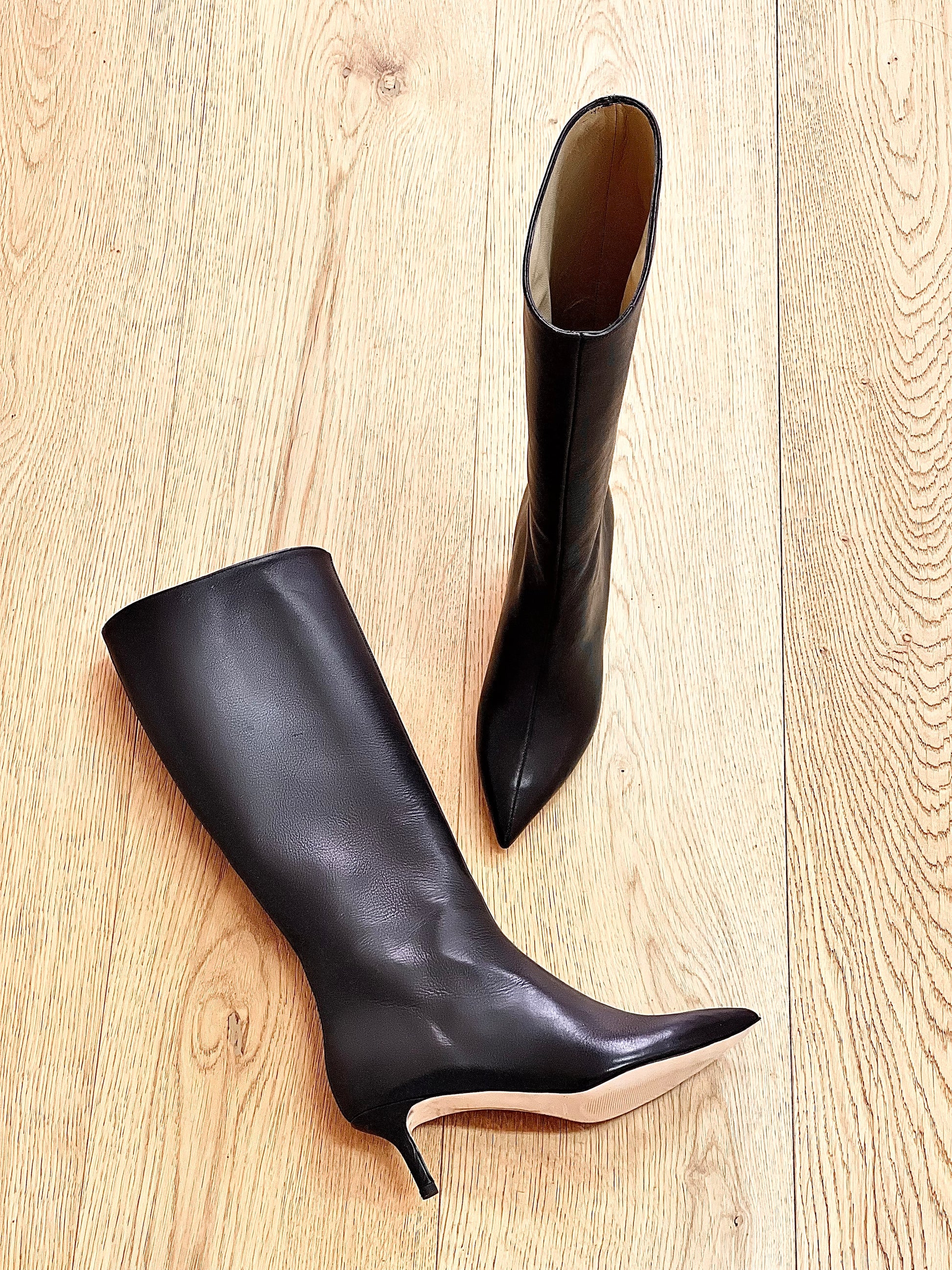 Σωληνωτά δερμάτινα μποτάκια με λεπτό τακούνι.