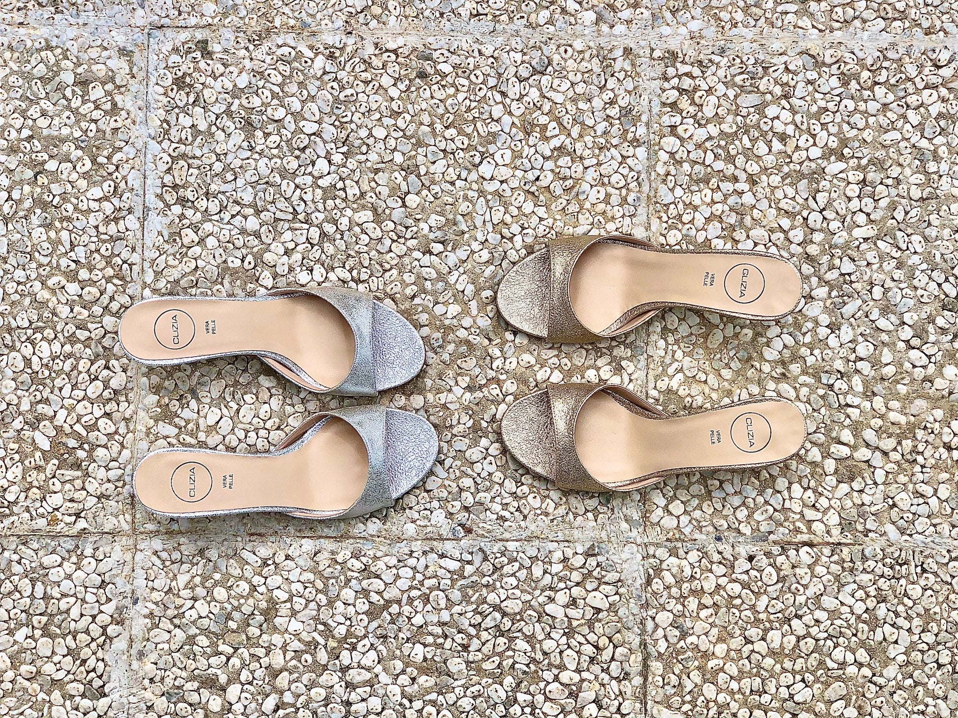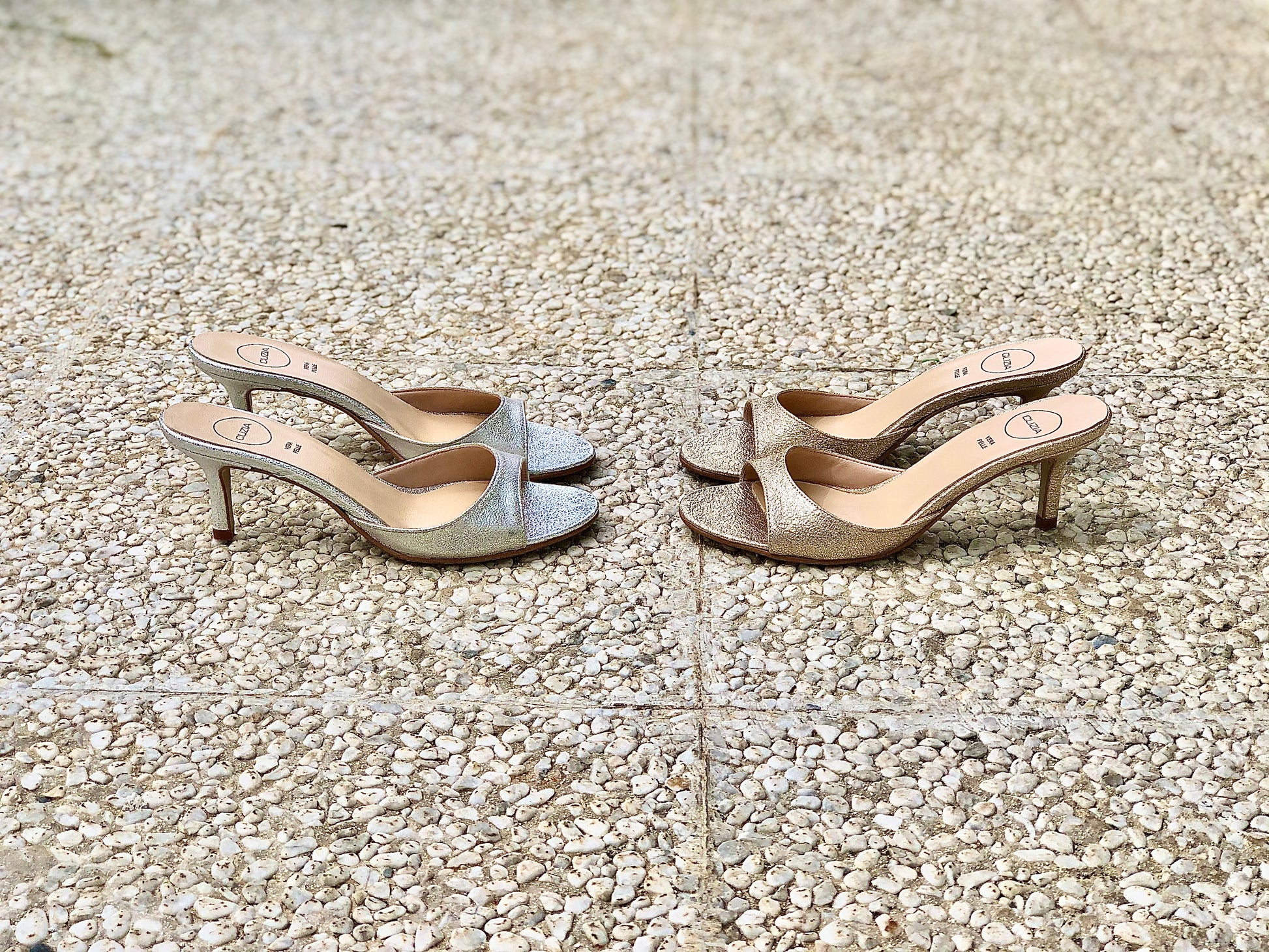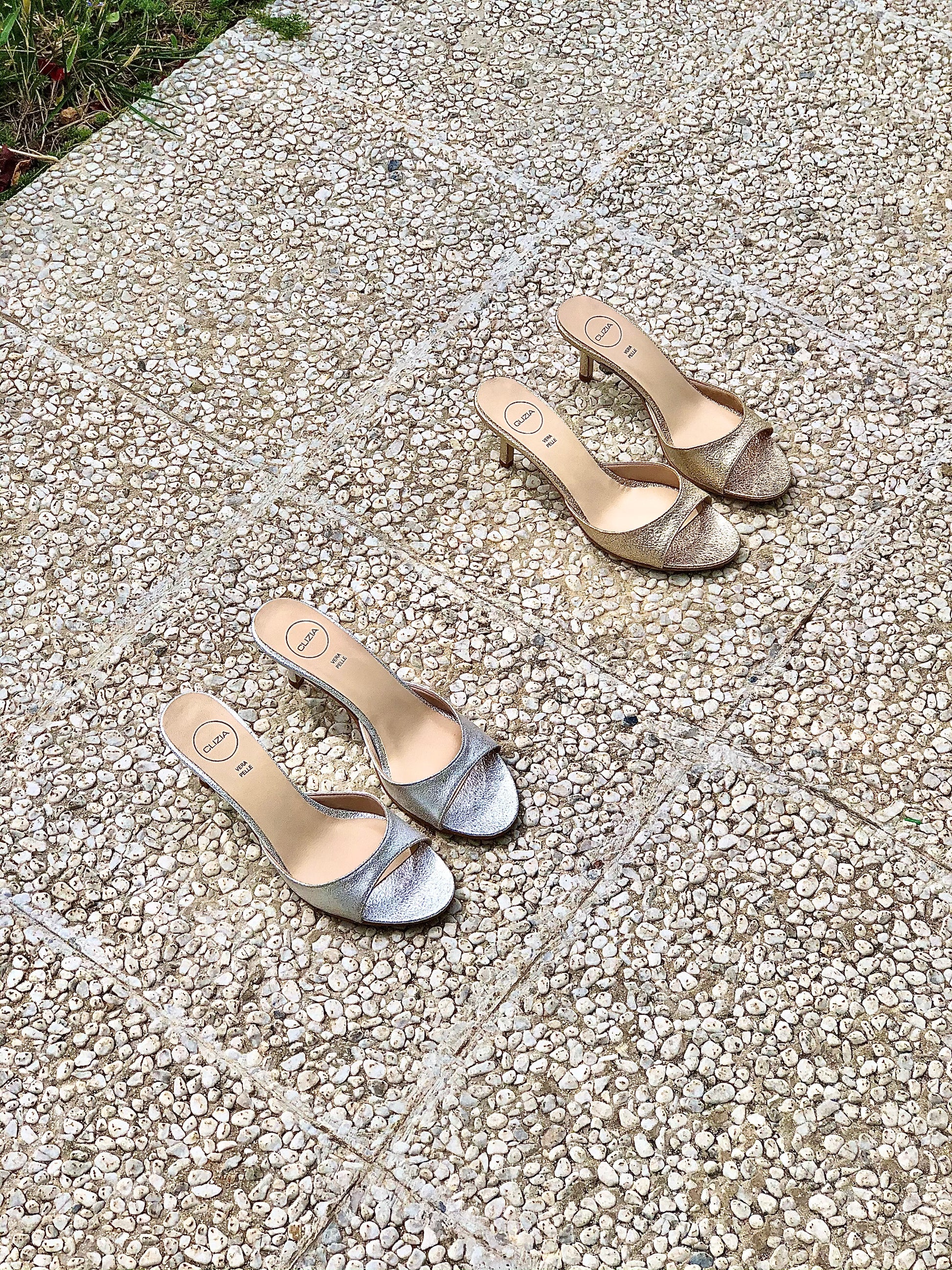 Χαμηλά σανδάλια μούλες με λαμινέ τακούνι 6 εκατοστά.