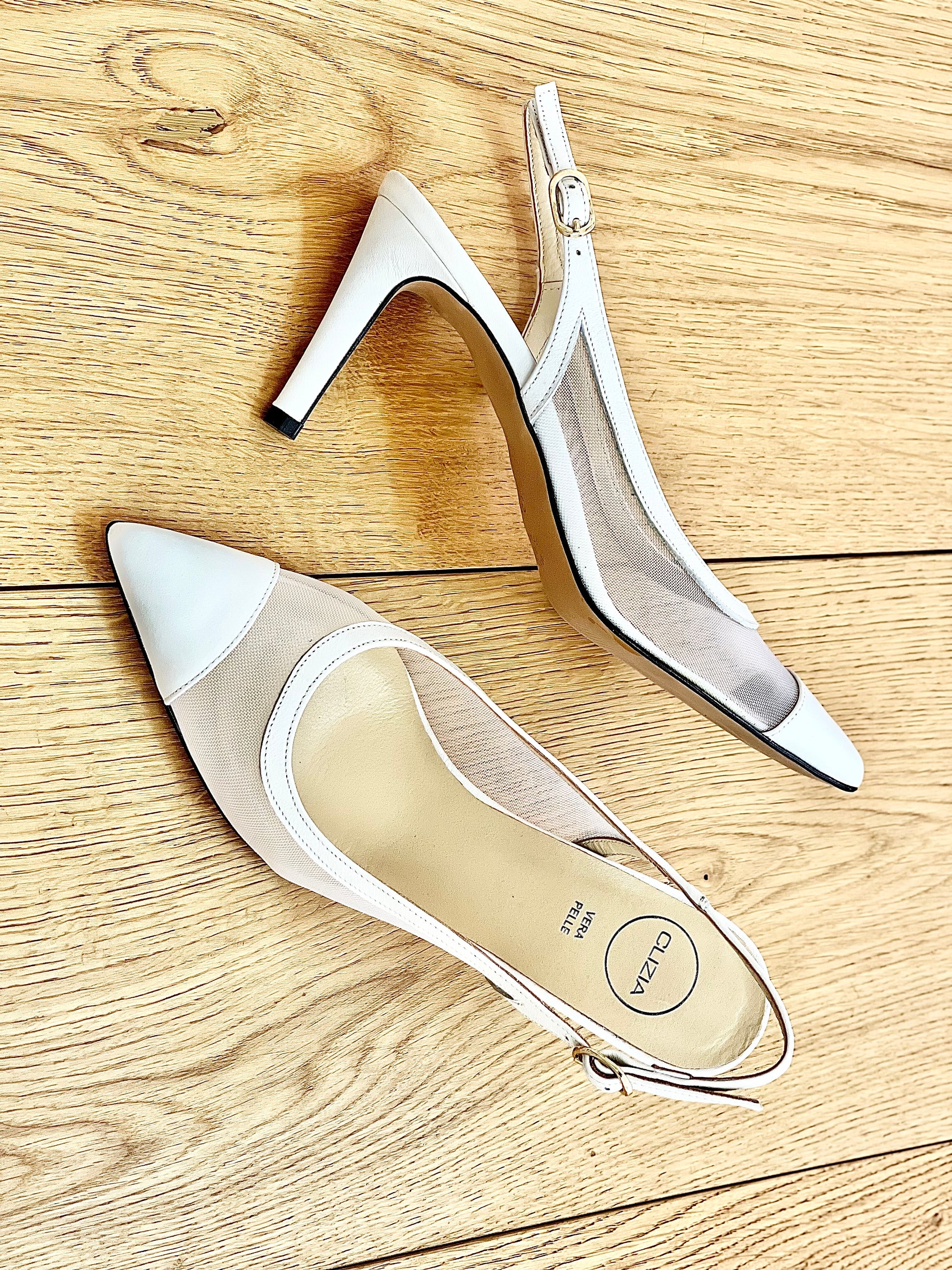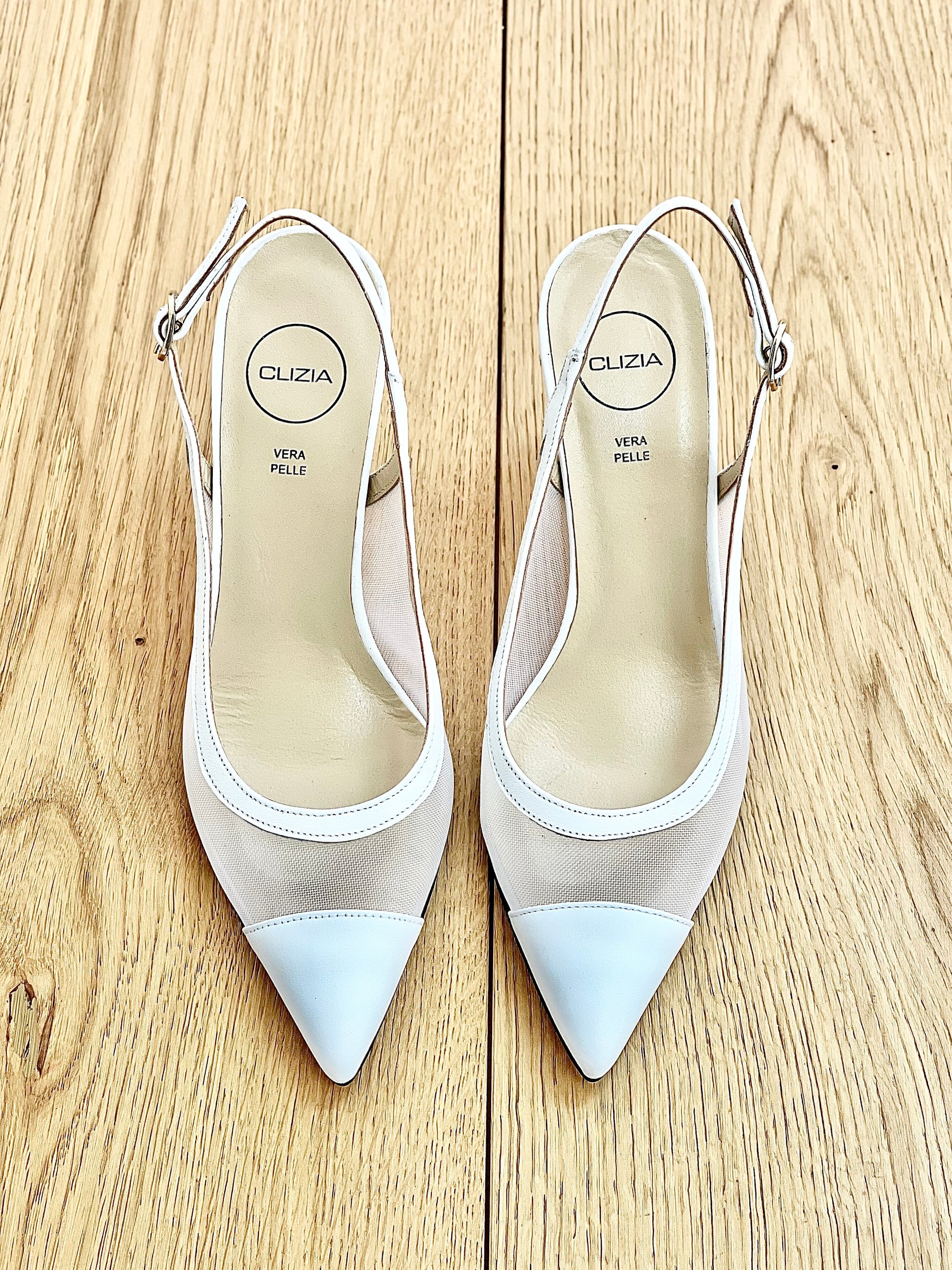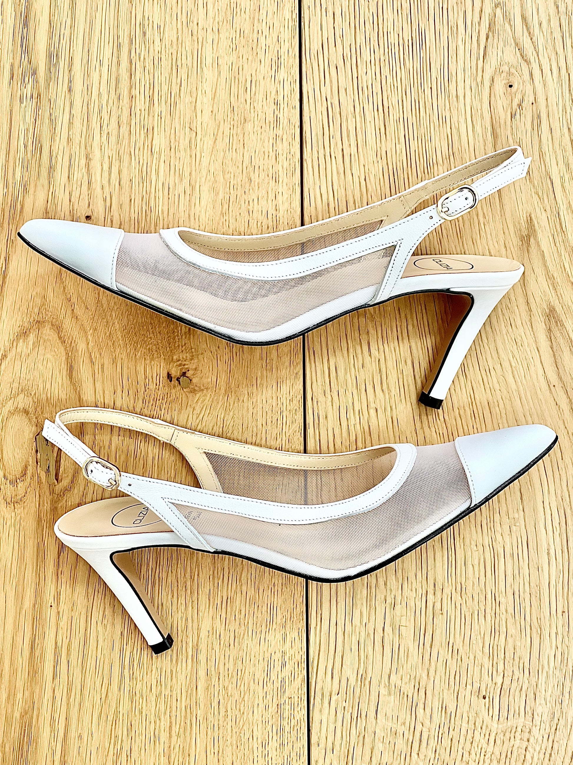 Δεκατέλ με πλέγμα και δερμάτινη μύτη, τακούνι 7 εκ.