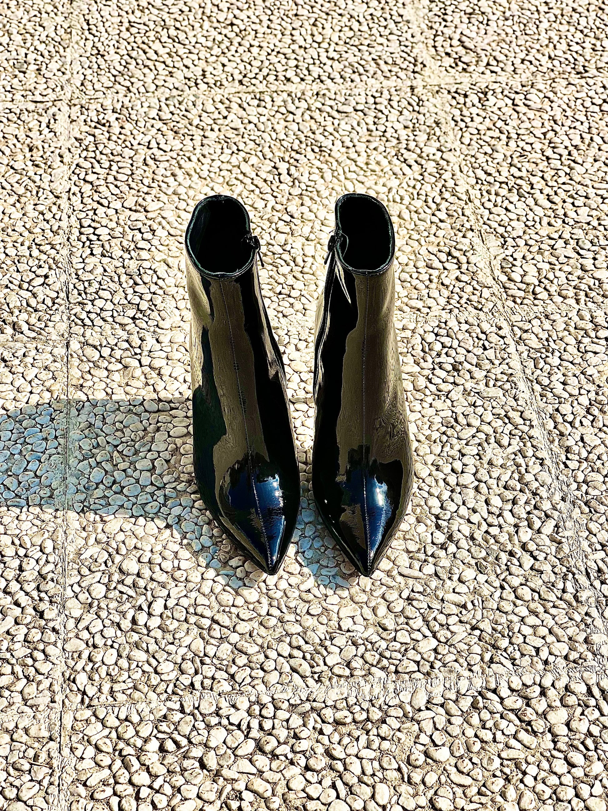 Μποτάκια με μυτερή μύτη από βερνίκι με ψηλό τακούνι.