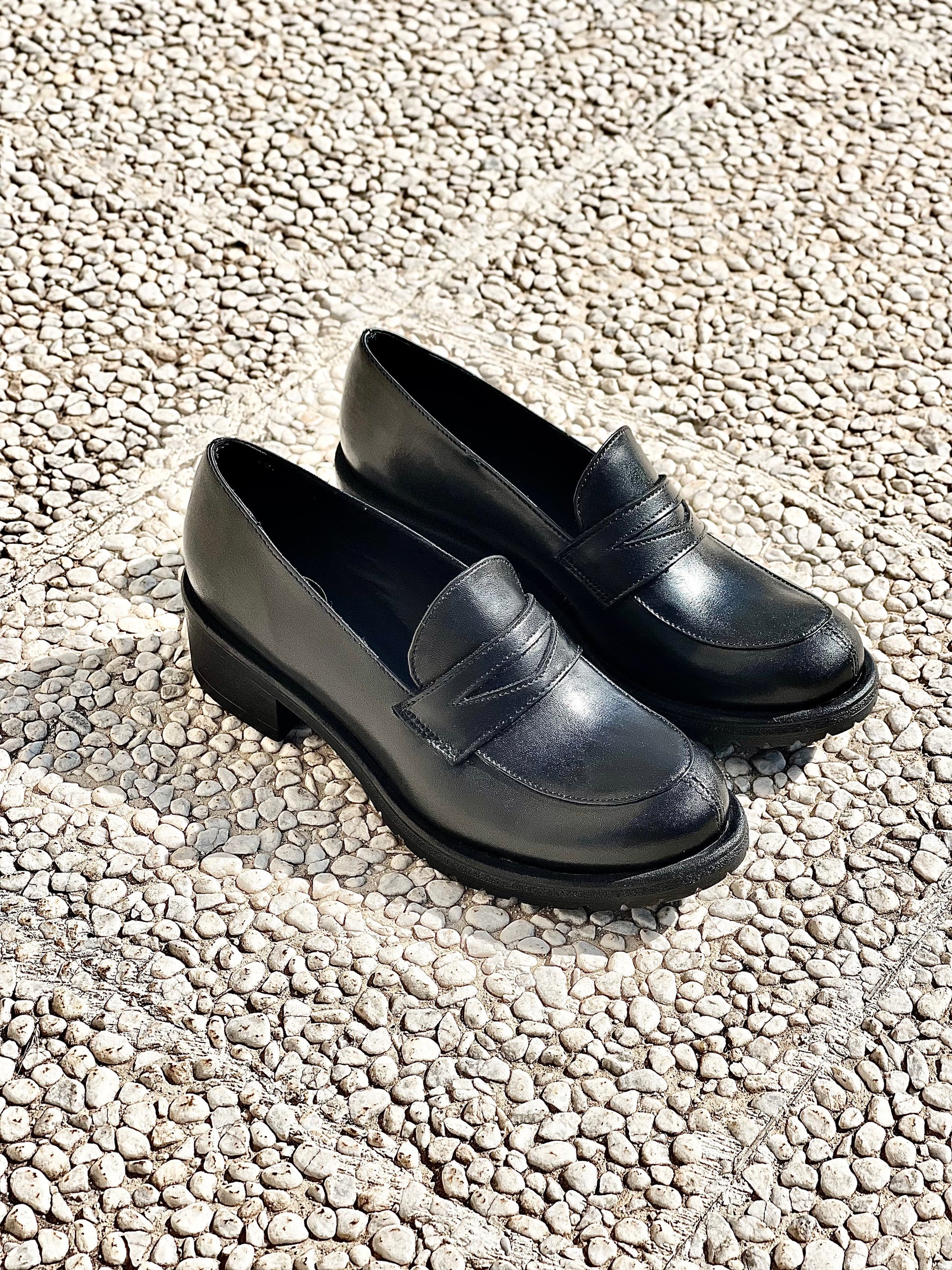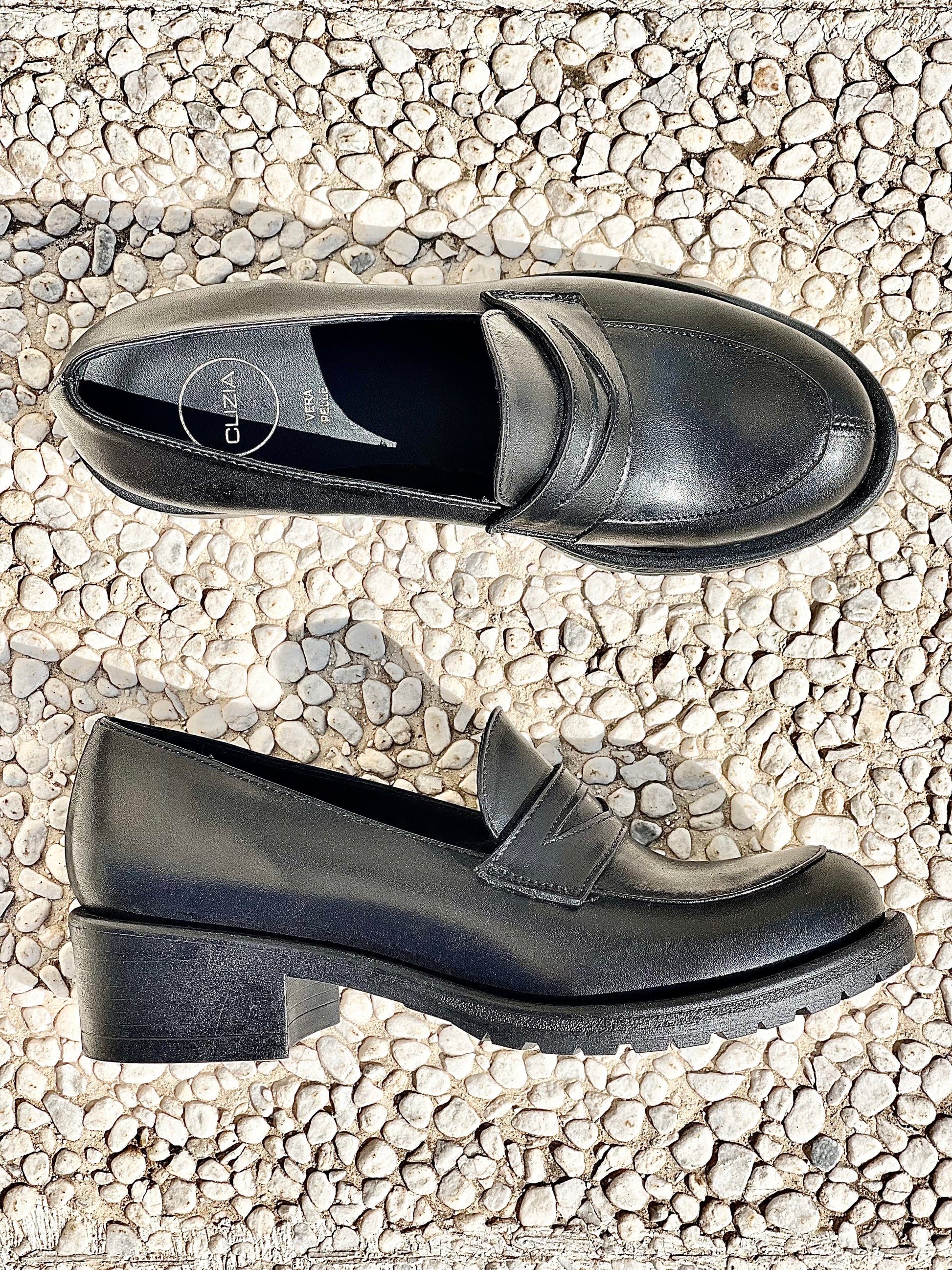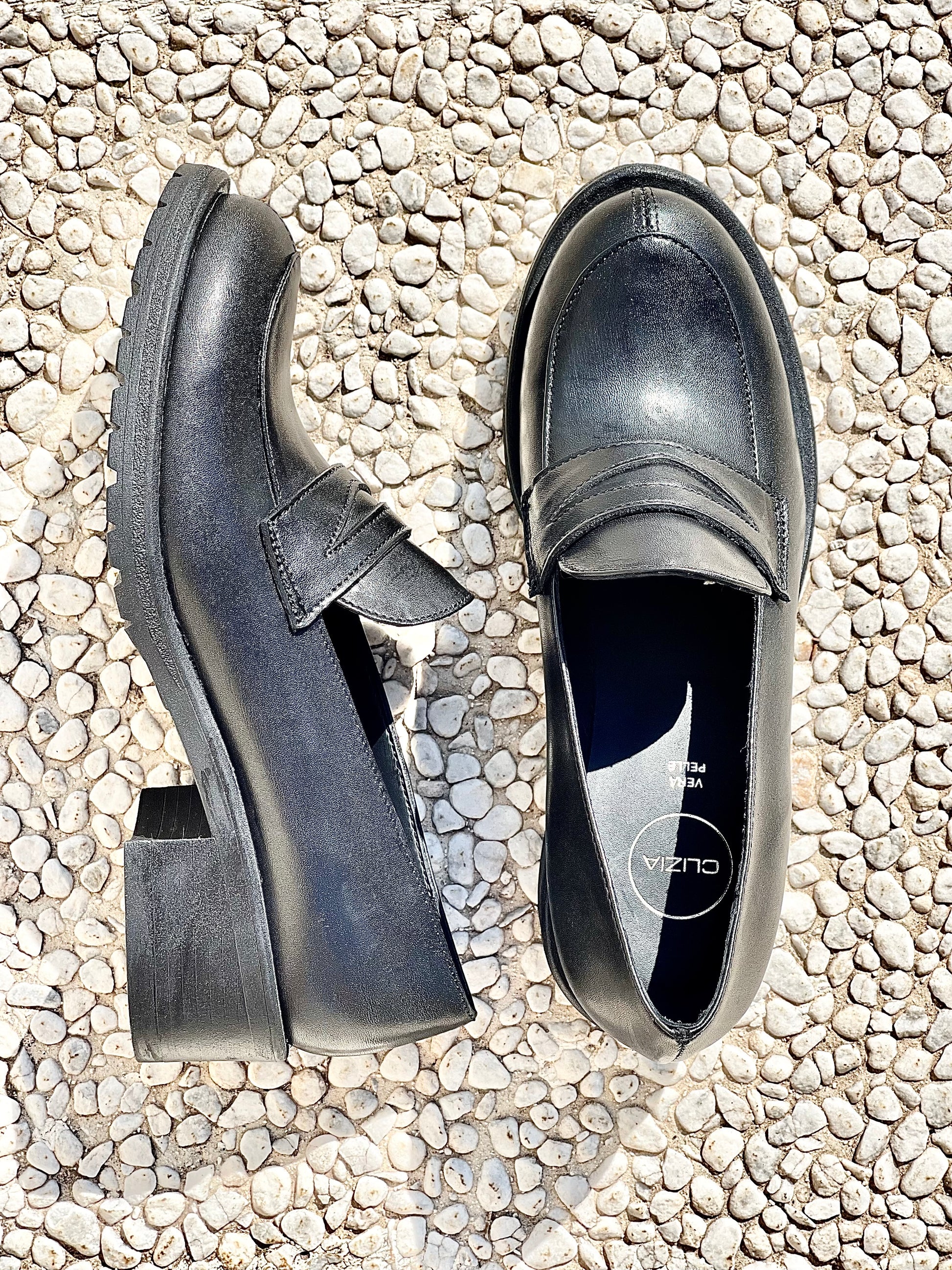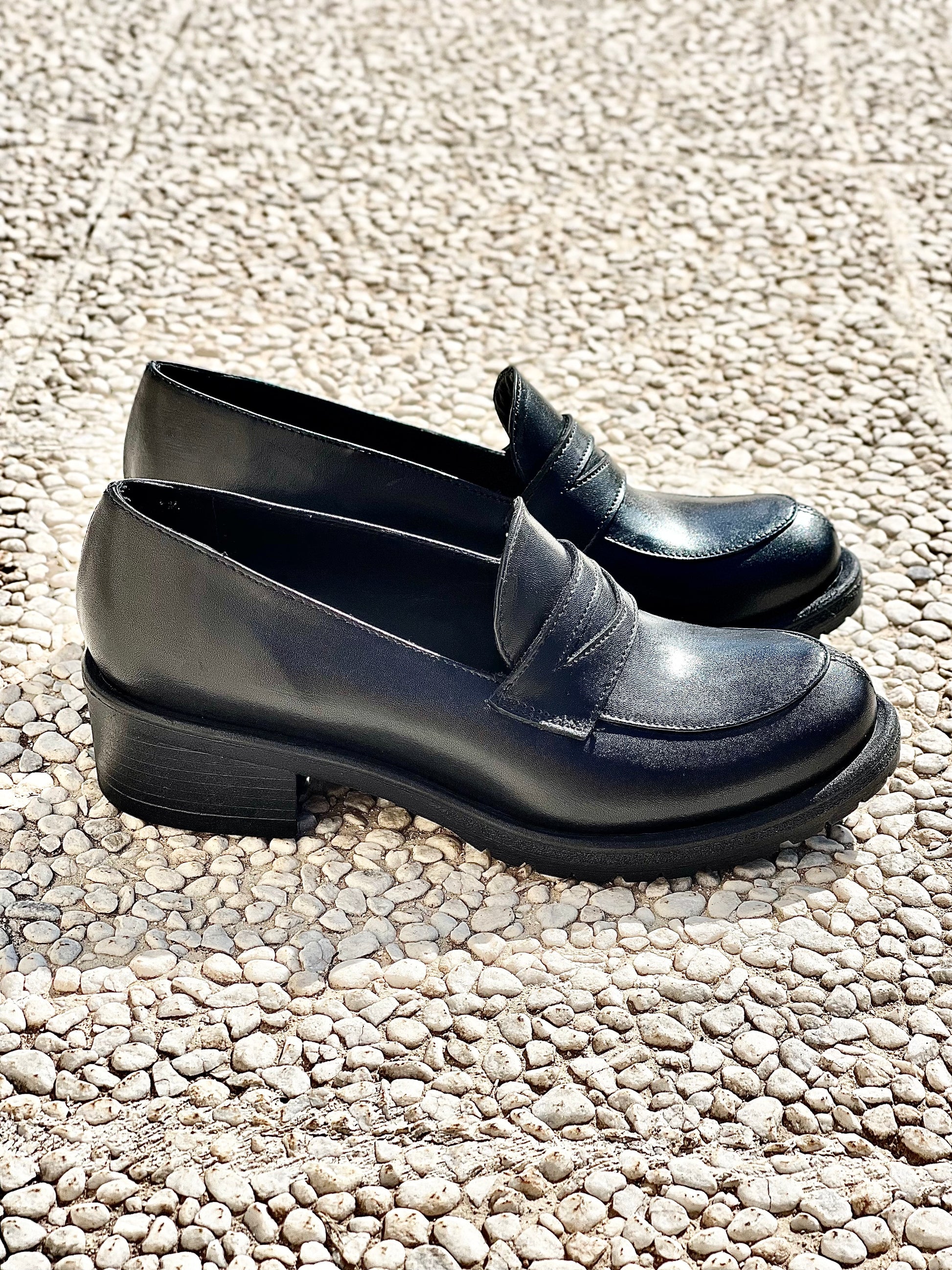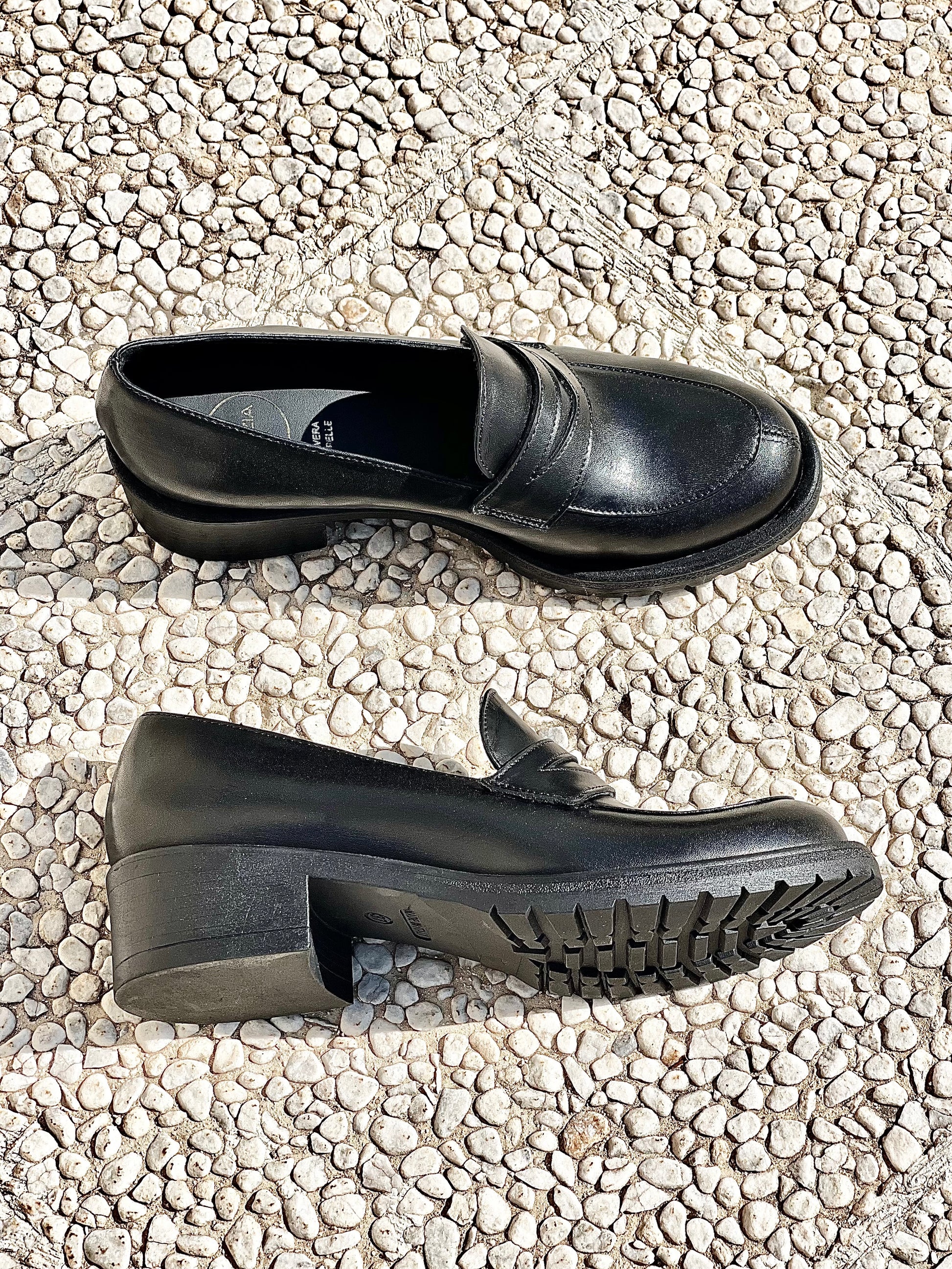 Δερμάτινα μοκασίνια με τακούνι 3 εκατοστά.